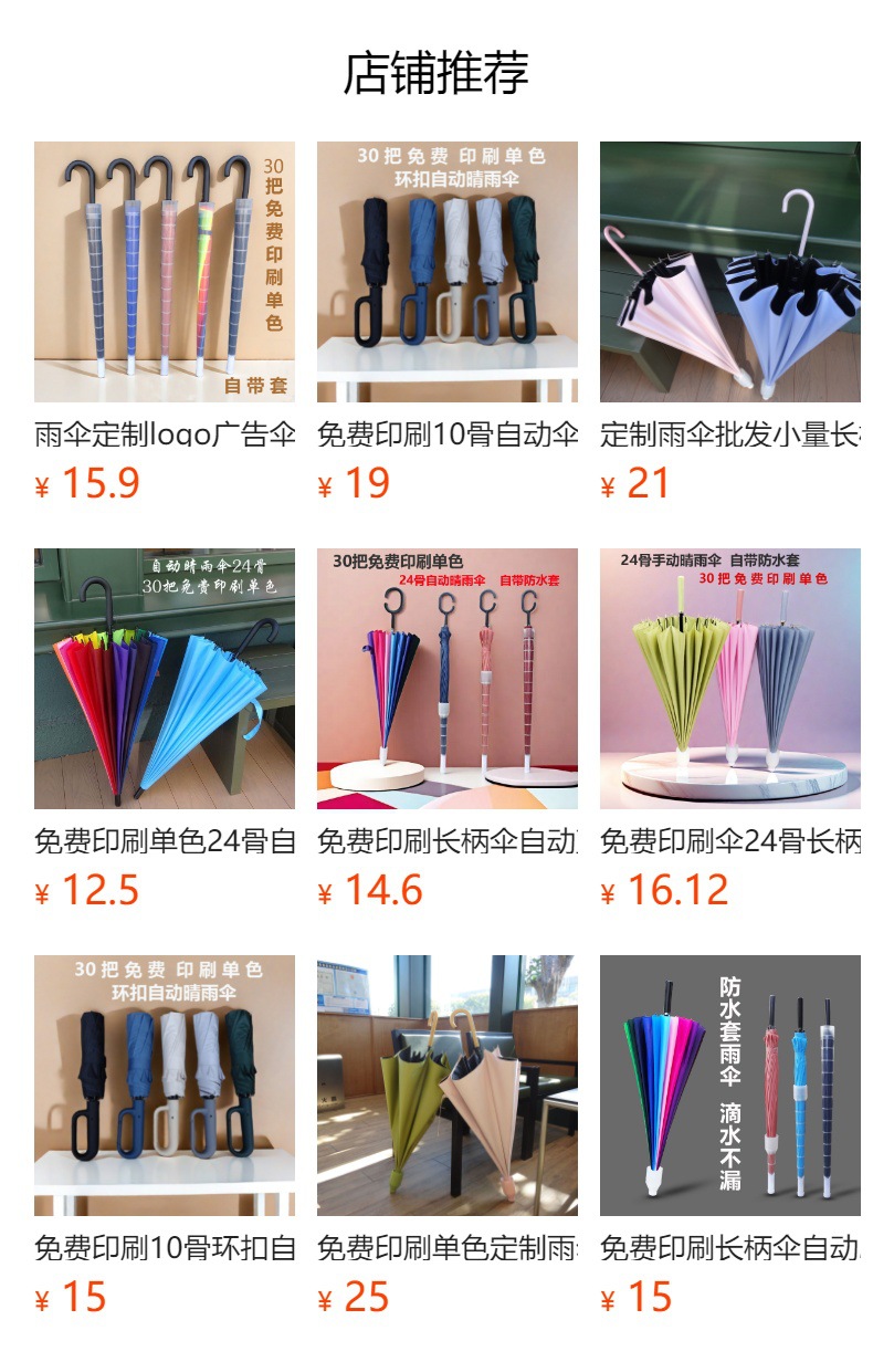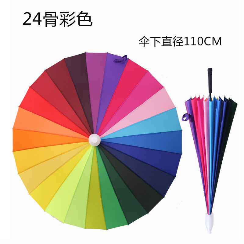 우산 맞춤 제작 광고 우산 도매 소량 긴 손잡이 우산 자동 24본 무지개 대형 2인용 방수 커버 포함 직선형스토어 가기