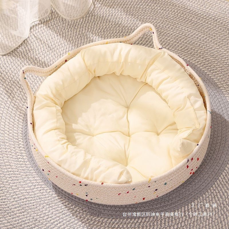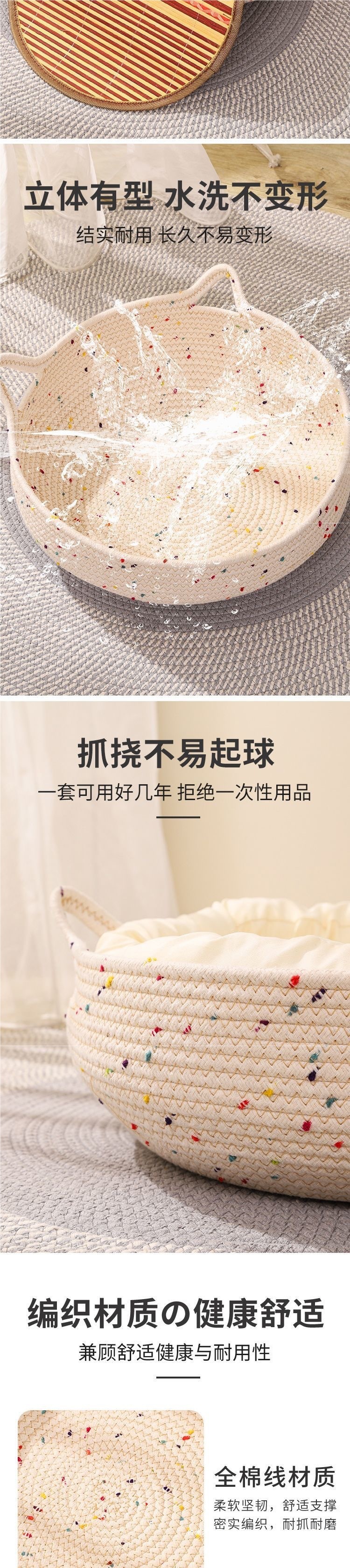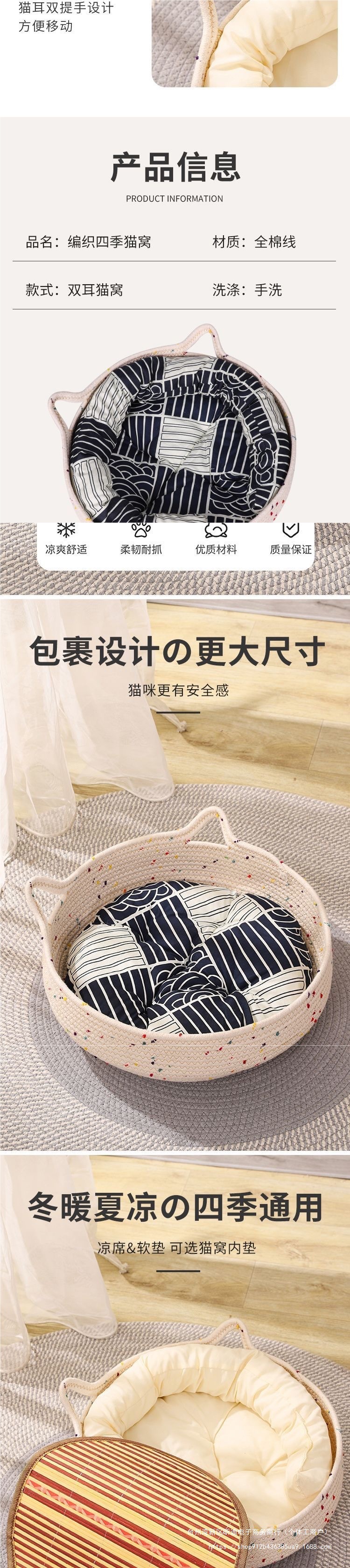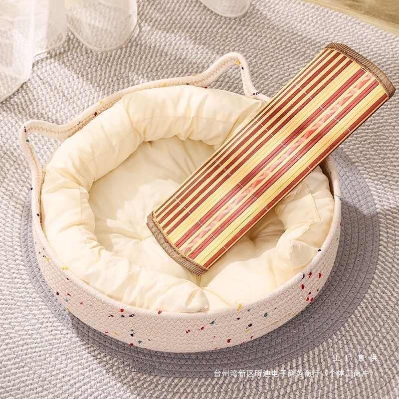 국경을 넘는 고양이 둥지, 여름 시원한 둥지, 등나무 고양이 스크래치 보드, 사계절 스크래치 방지 매트, 밀폐형, 탈부착 및 세탁 가능한 짠 고양이 둥지 및 개집