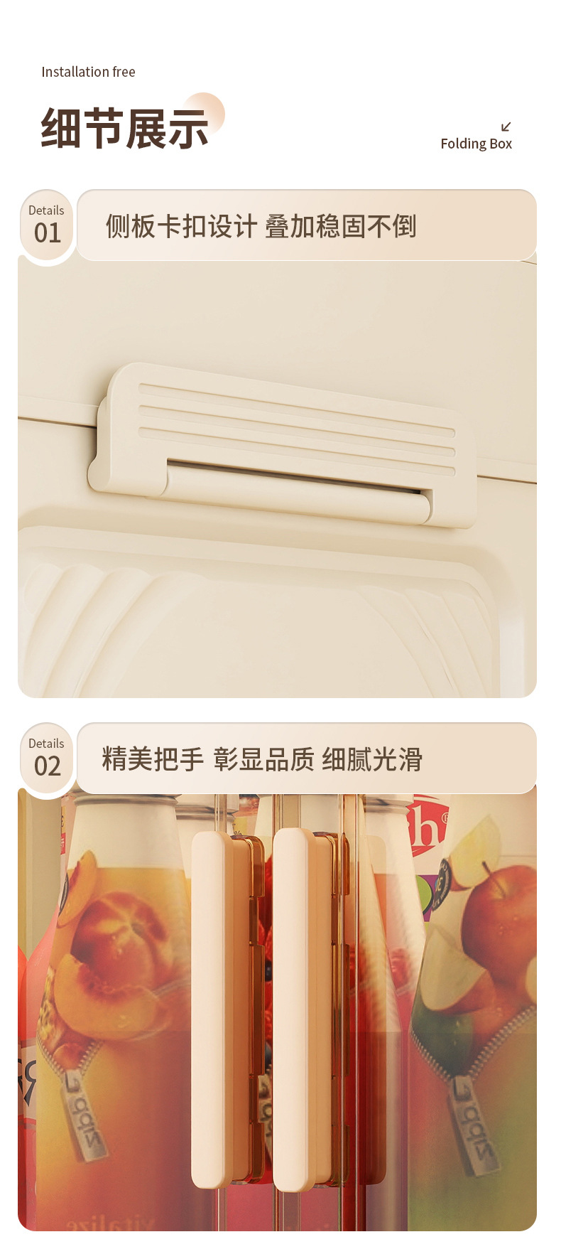 • 80cm 접이식 수납장 투명 흰색