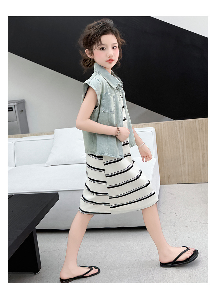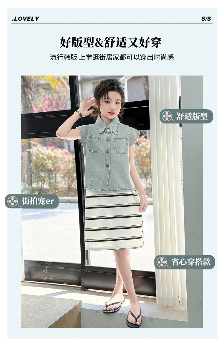 어린이 의류 여름 새 소녀 데님 민소매 조끼 2025 어린이 레저 서양식 어린이 조끼 도매스토어 가기