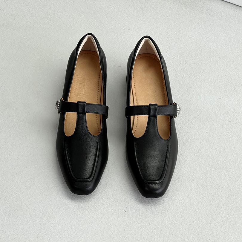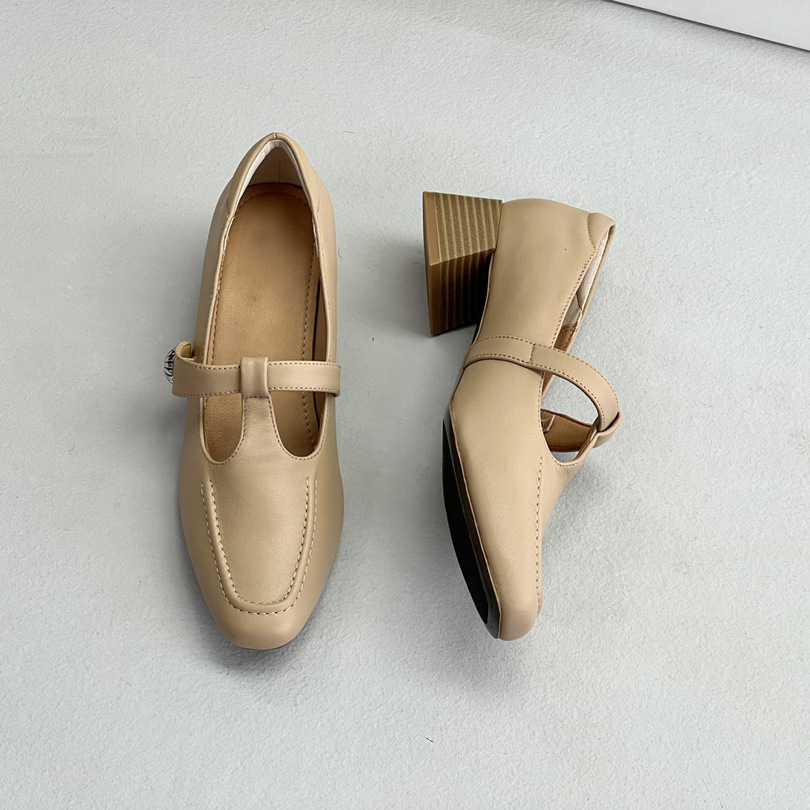 미니멀 스타일의 T 스트랩 슈즈, 광저우산 고급 다용도 메리제인 슈즈, 편안한 두꺼운 굽의 천연가죽 패션슈즈, 고급스토어 가기