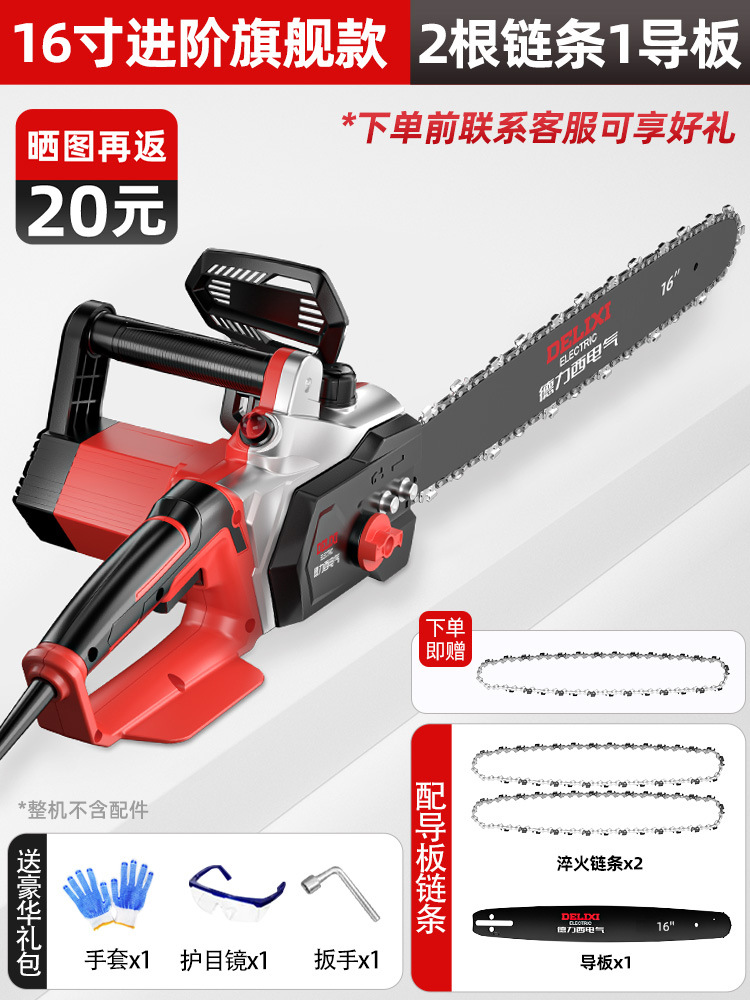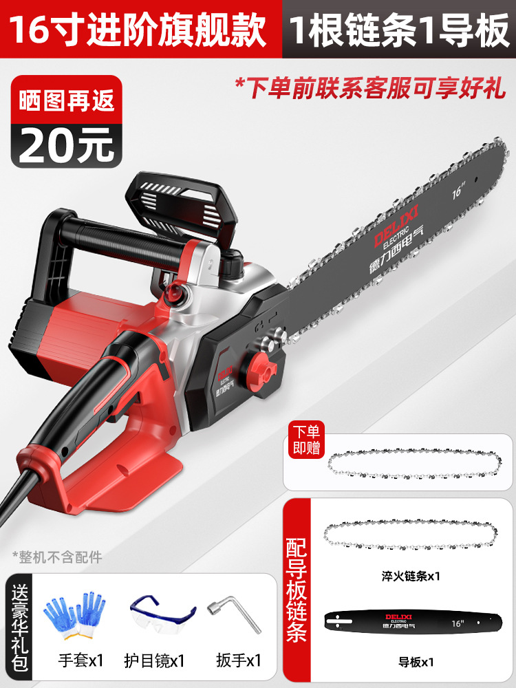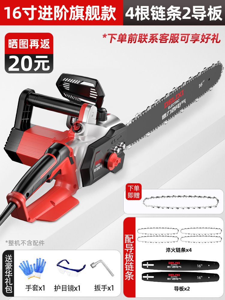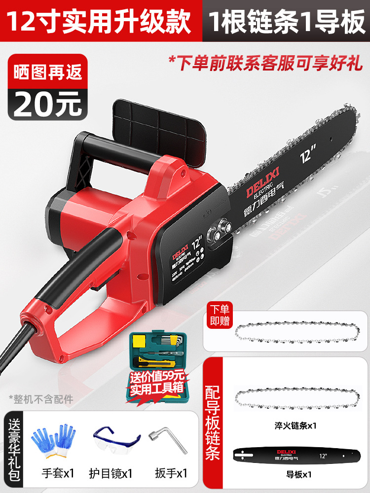 Delixi 전기 전기 톱 소형 가정용 휴대용 벌목 톱 220V 플러그인 전기 체인 톱 목공 톱 8극스토어 가기