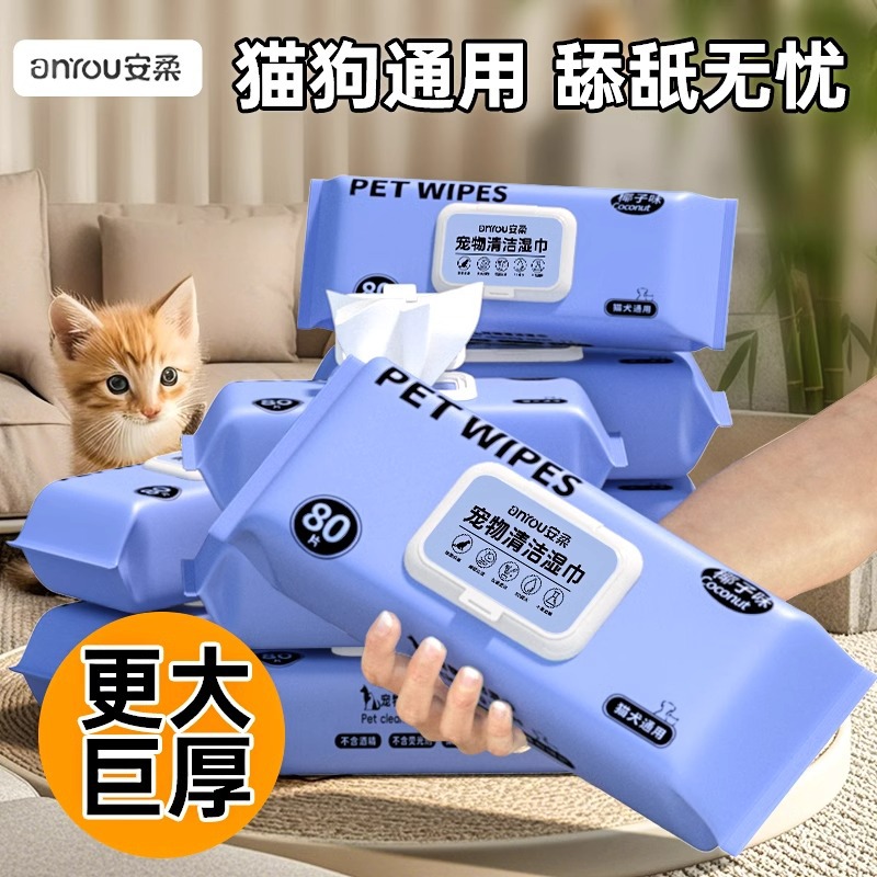 자이언트 펫 물티슈 고양이와 강아지 전용 물티슈 무세척 발 닦기 눈물자국 청소용품 물티슈