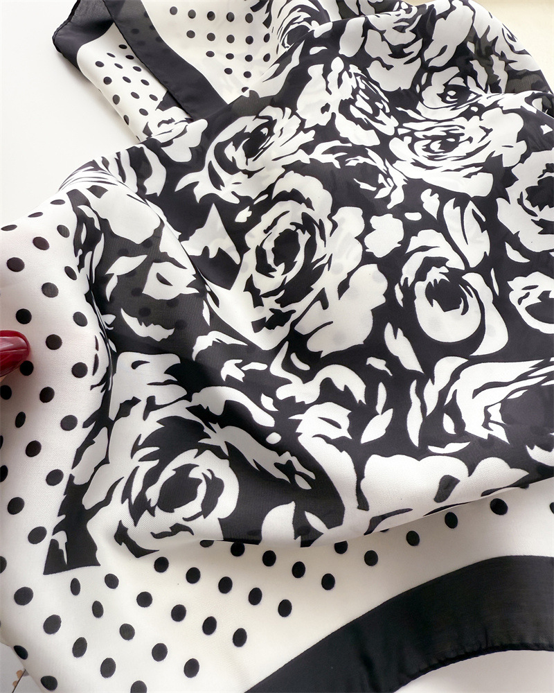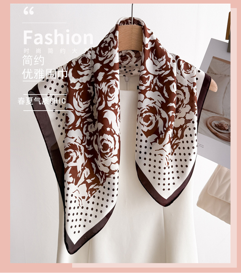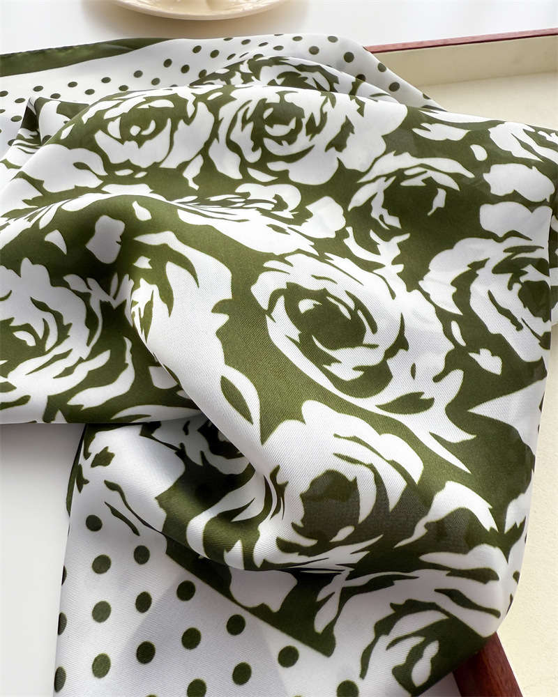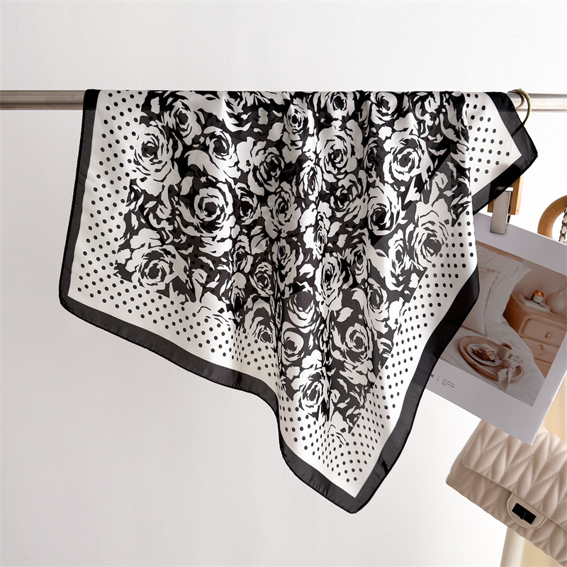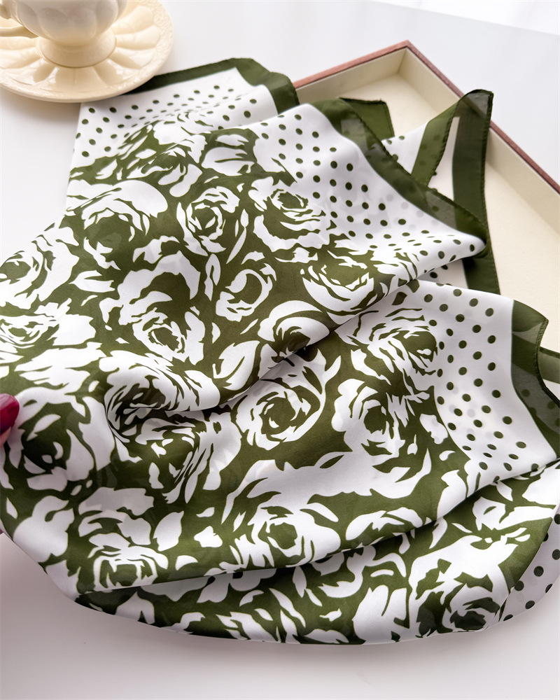 도트 로즈 인쇄 실크 스카프 스퀘어 스카프 고급 감각 목도리 전문 올 매치 넥 작은 스퀘어 스카프 여성용 스카프
