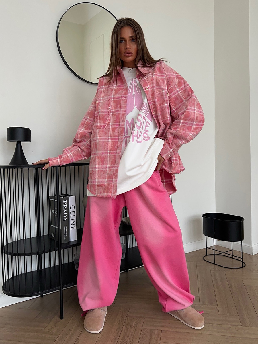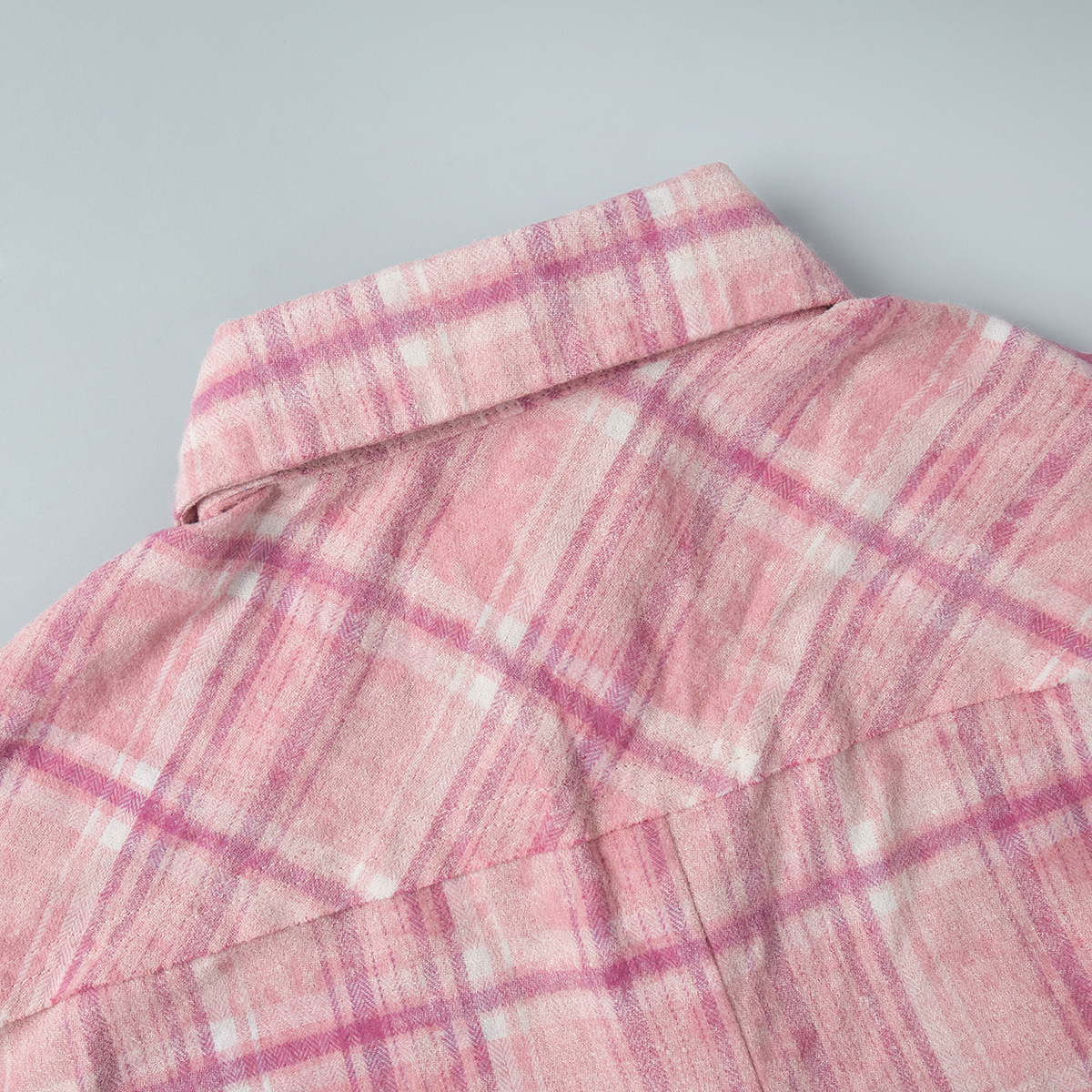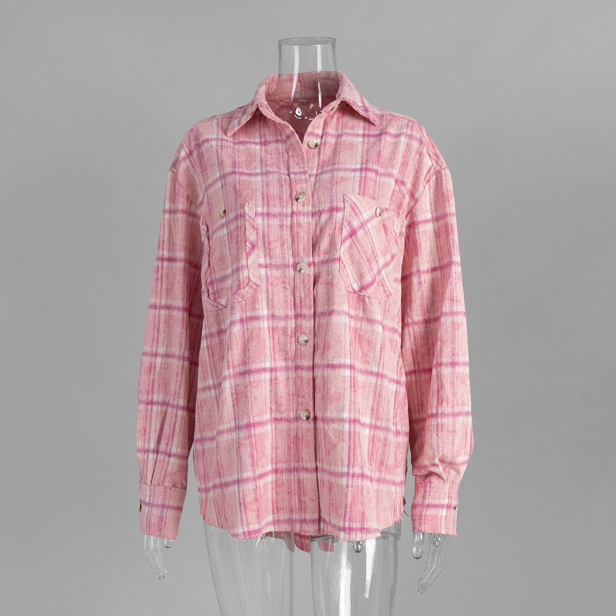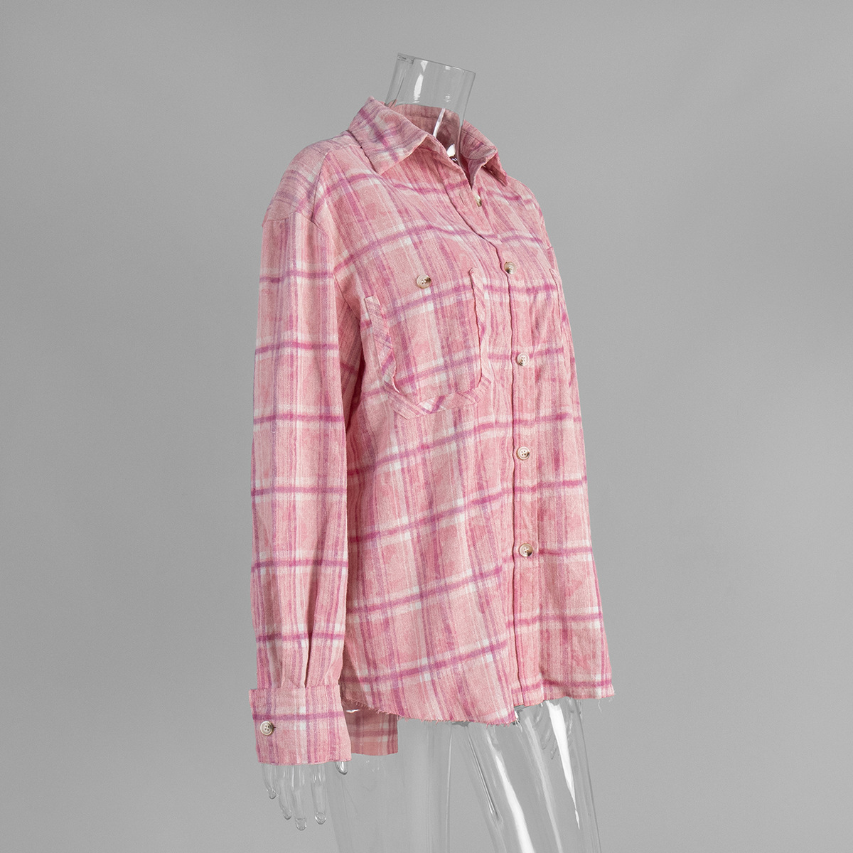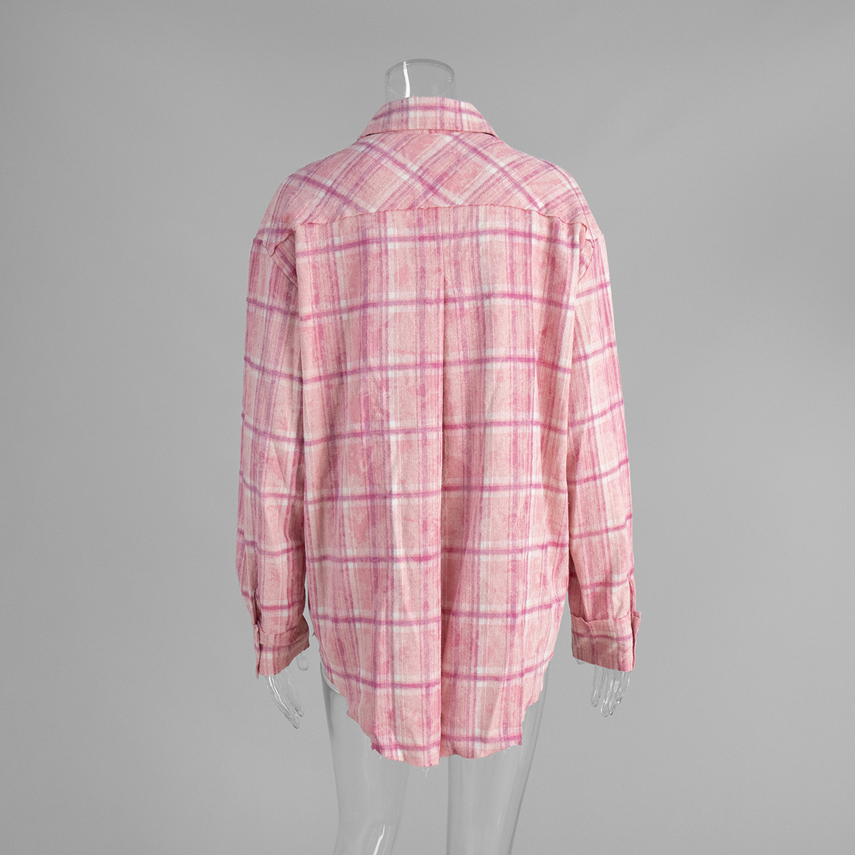 국경을 넘는 격자 무늬 셔츠 유럽과 미국 2025 년 봄과 여름 새로운 레트로 트렌디 한 느슨한 셔츠 재킷 핑크 격자 무늬 셔츠