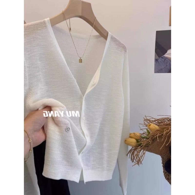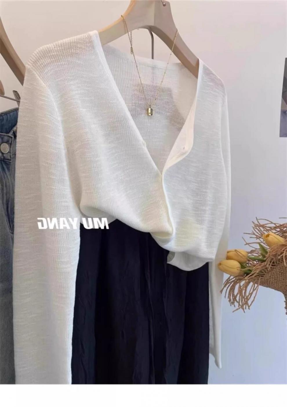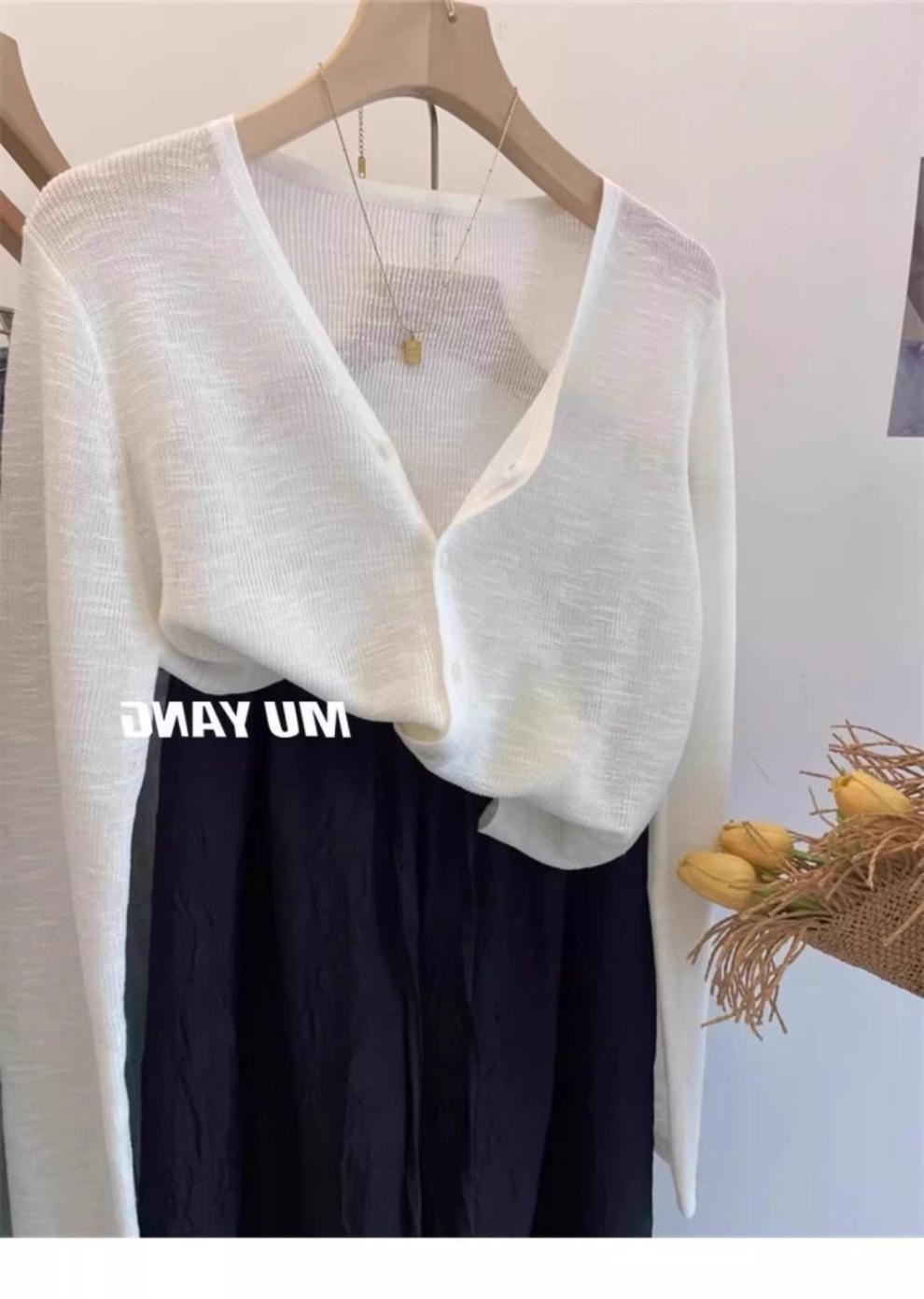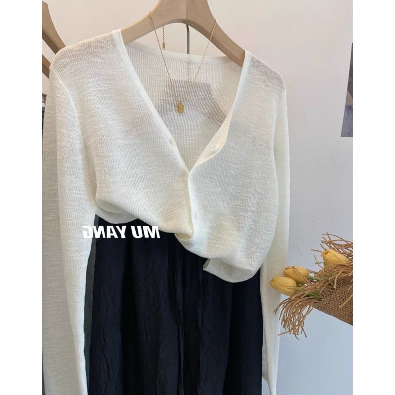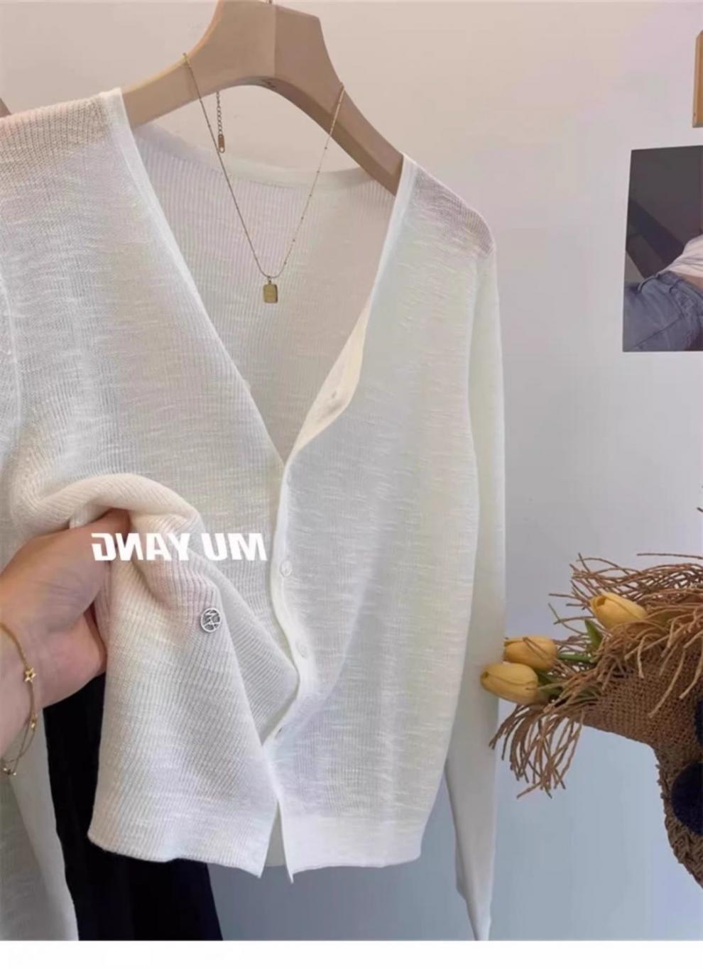 화이트 아이스 실크 자외선 차단 카디건 얇은 니트 재킷 여성 숄 여름 스커트 서스펜더 블라우스 탑스토어 가기