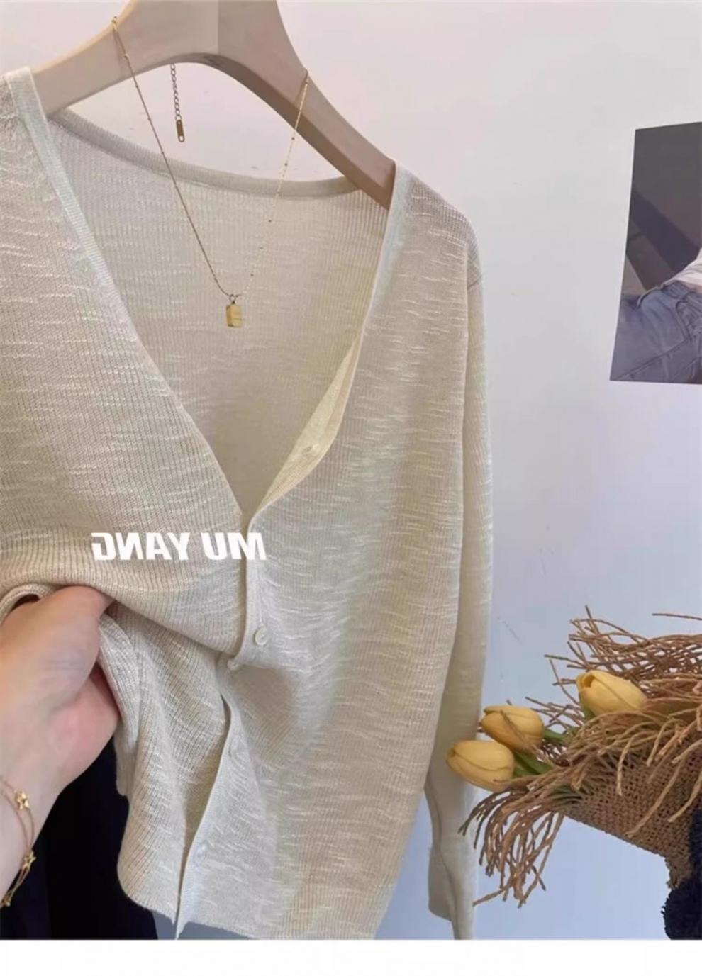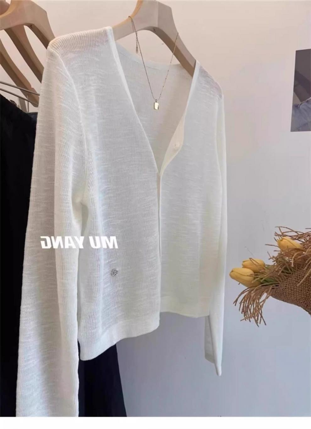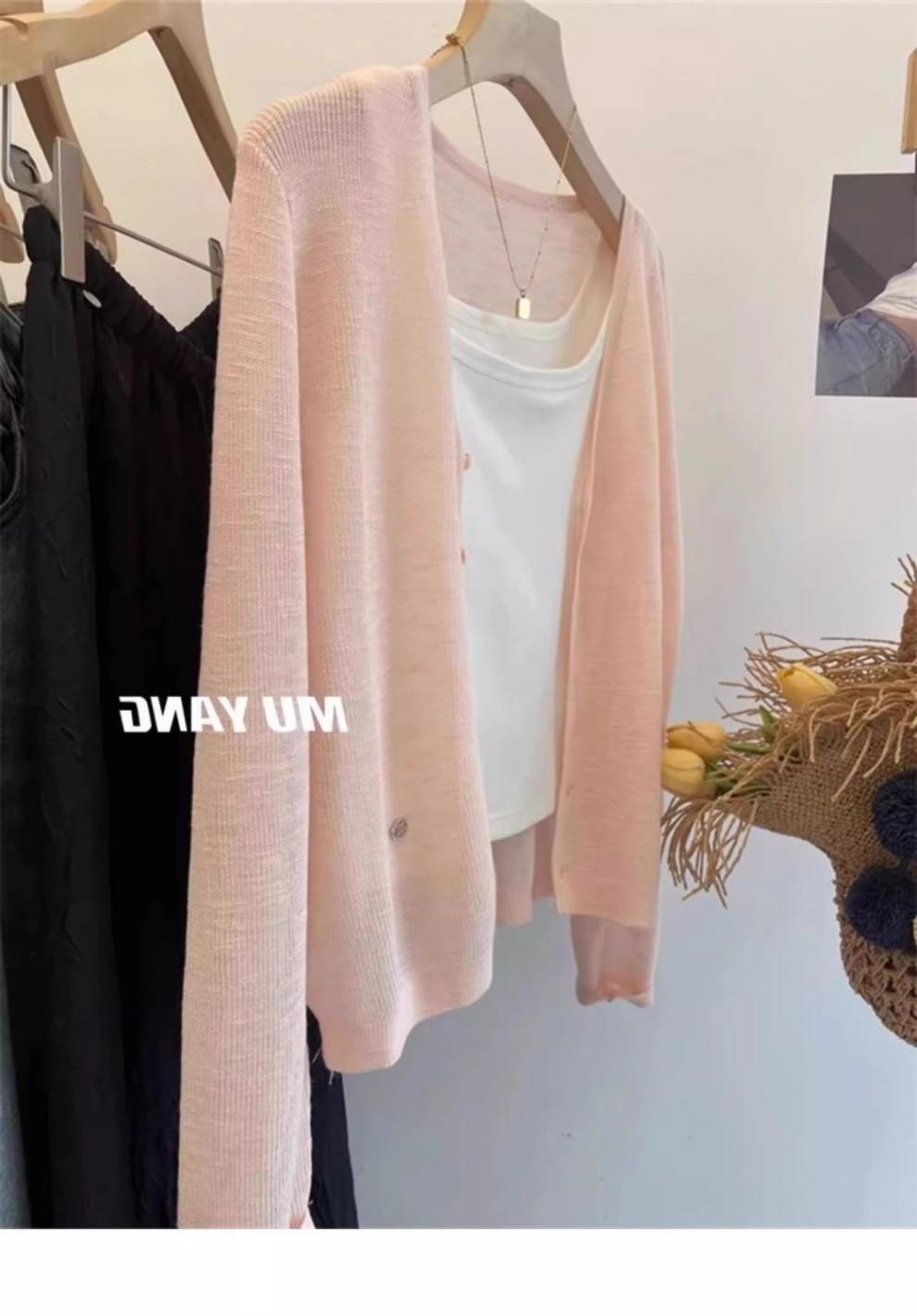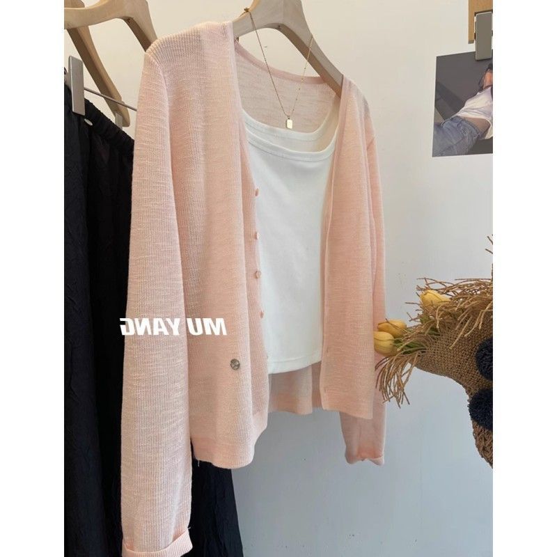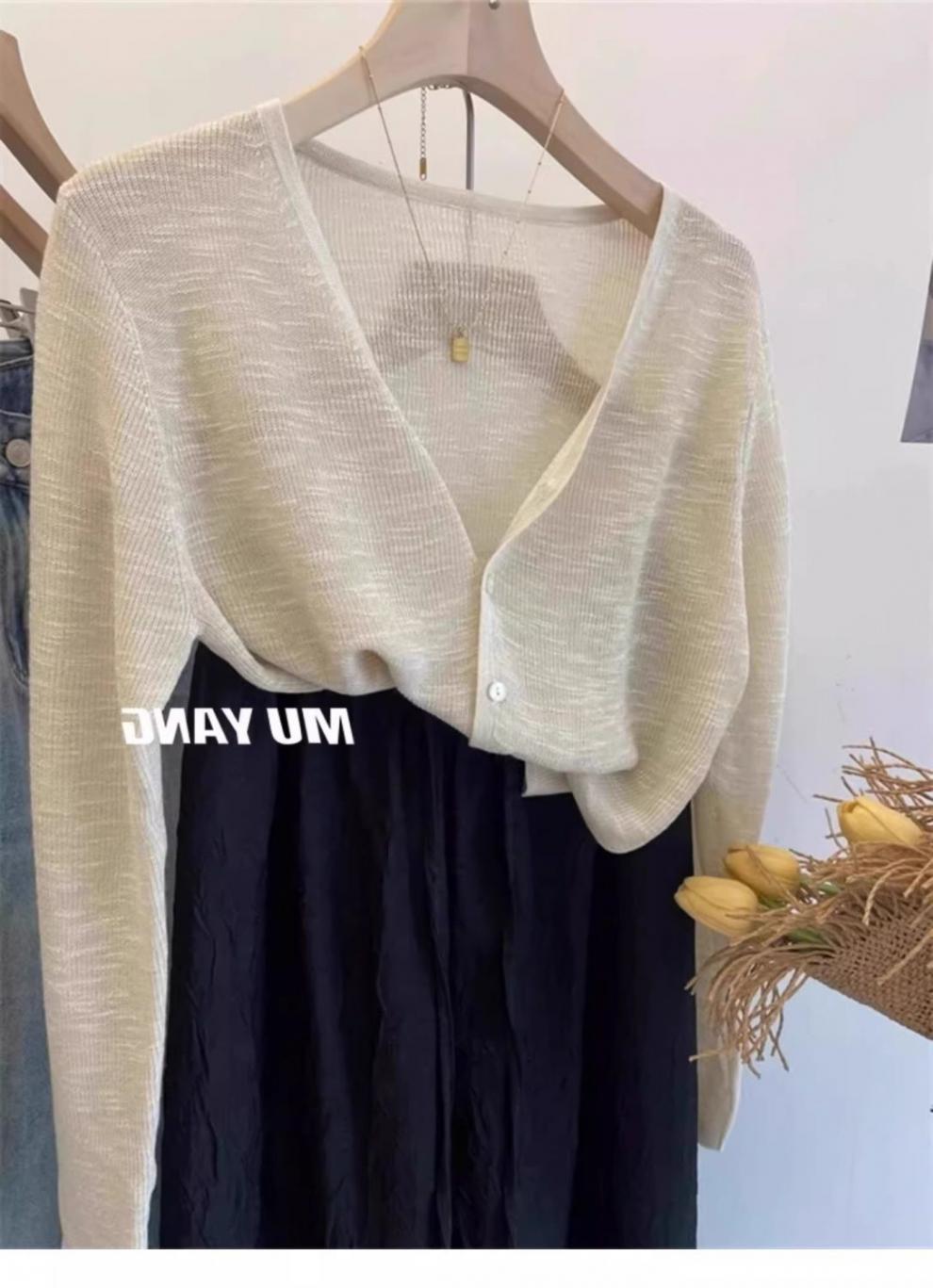 화이트 아이스 실크 자외선 차단 카디건 얇은 니트 재킷 여성 숄 여름 스커트 서스펜더 블라우스 탑스토어 가기