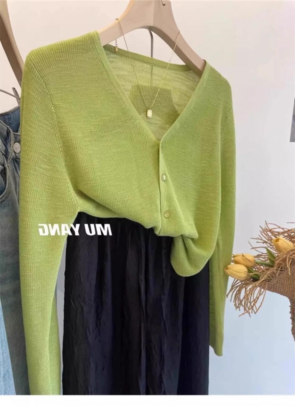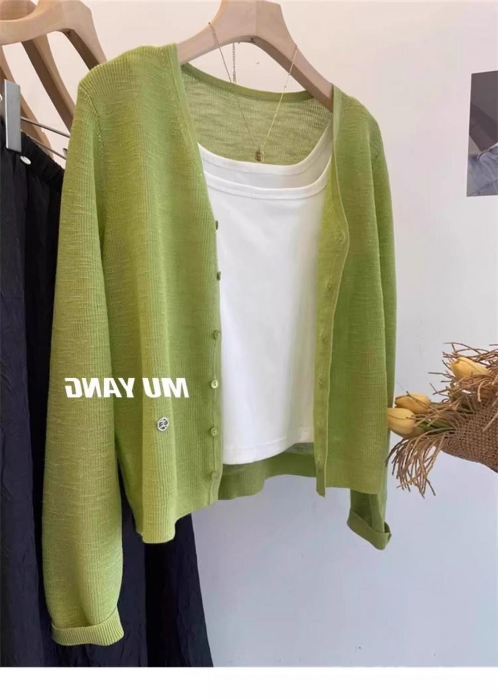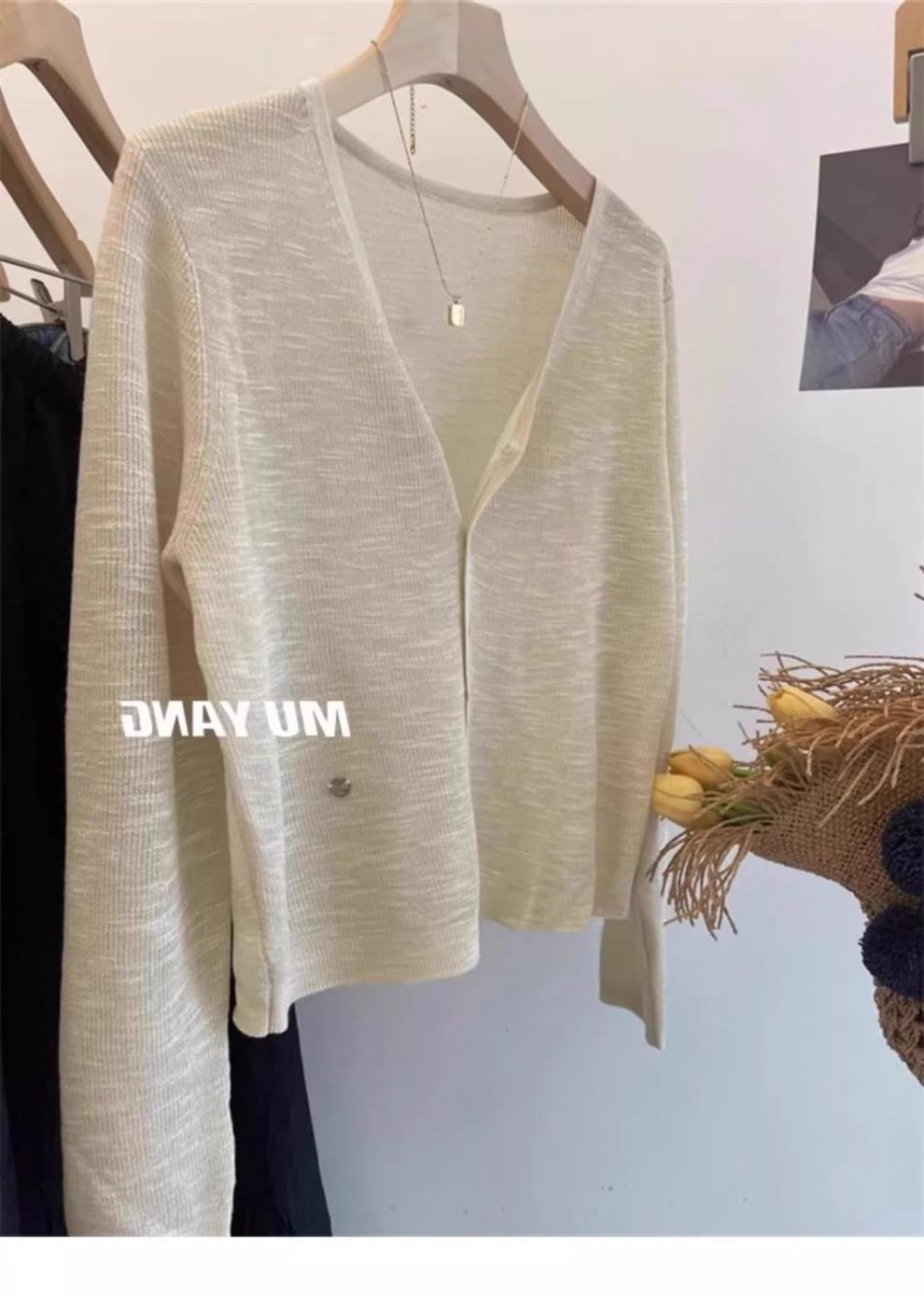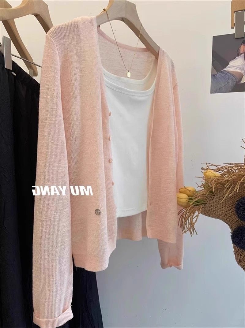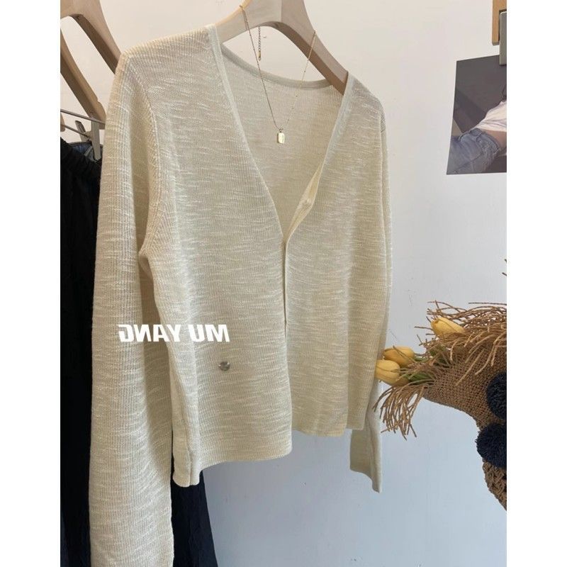 화이트 아이스 실크 자외선 차단 카디건 얇은 니트 재킷 여성 숄 여름 스커트 서스펜더 블라우스 탑스토어 가기