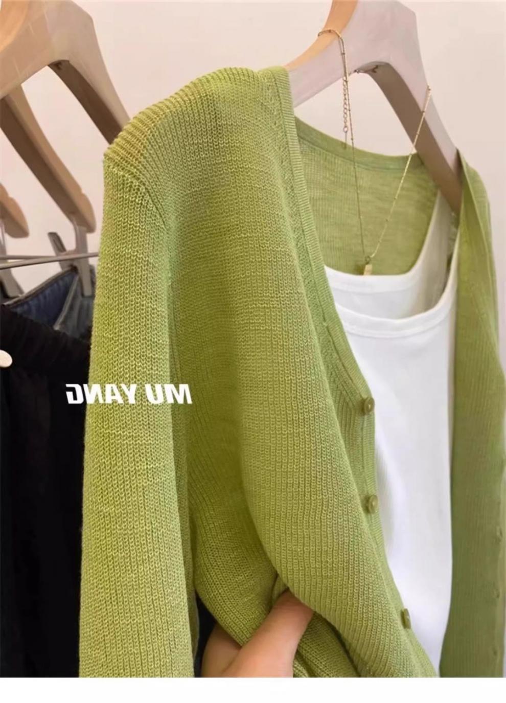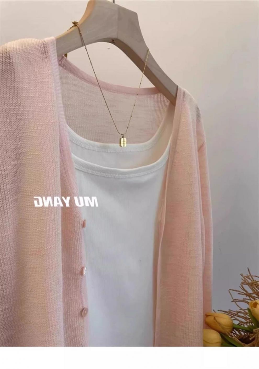 화이트 아이스 실크 자외선 차단 카디건 얇은 니트 재킷 여성 숄 여름 스커트 서스펜더 블라우스 탑