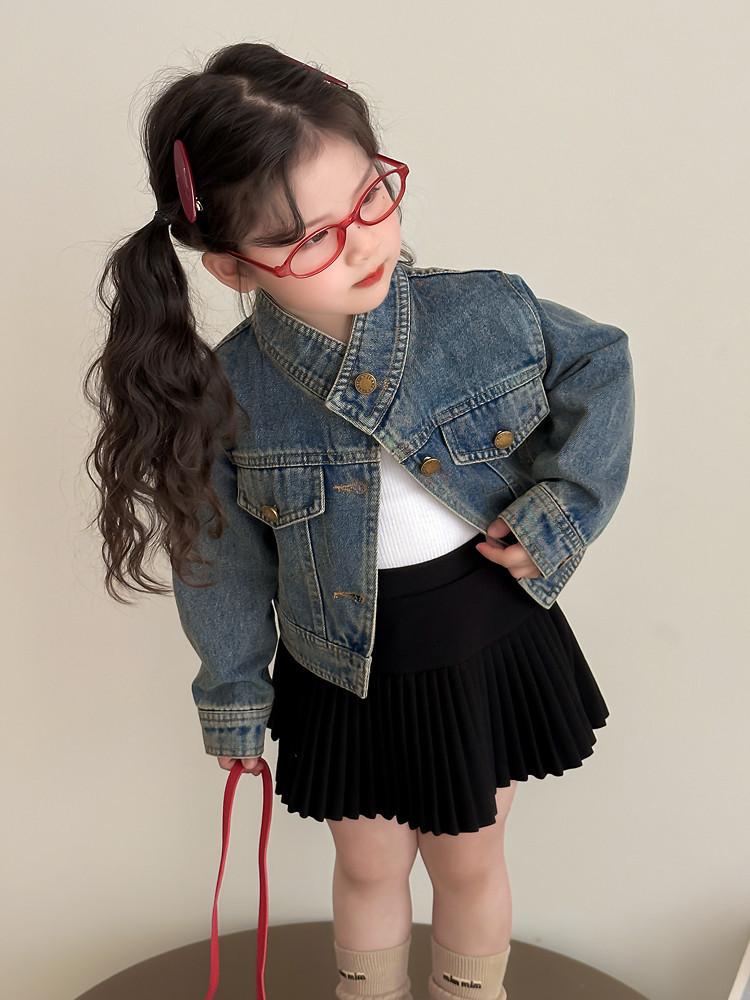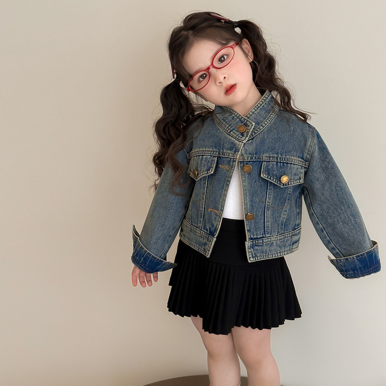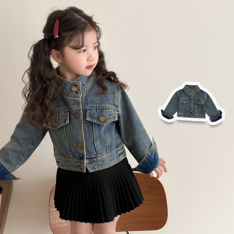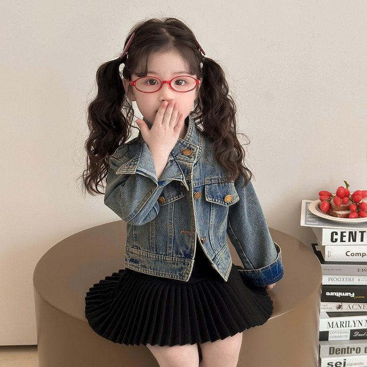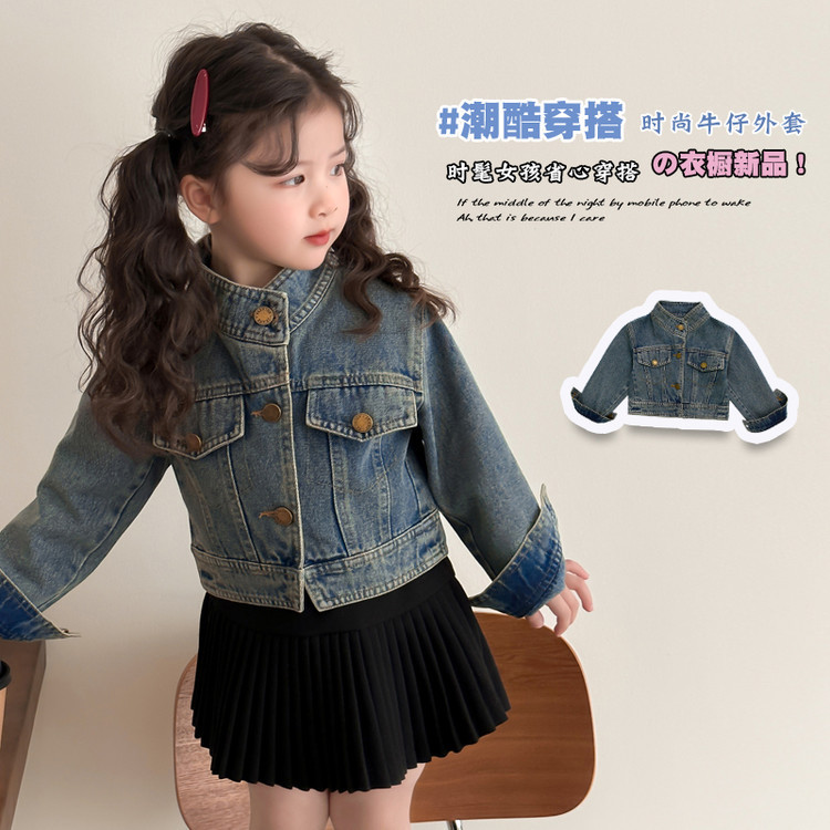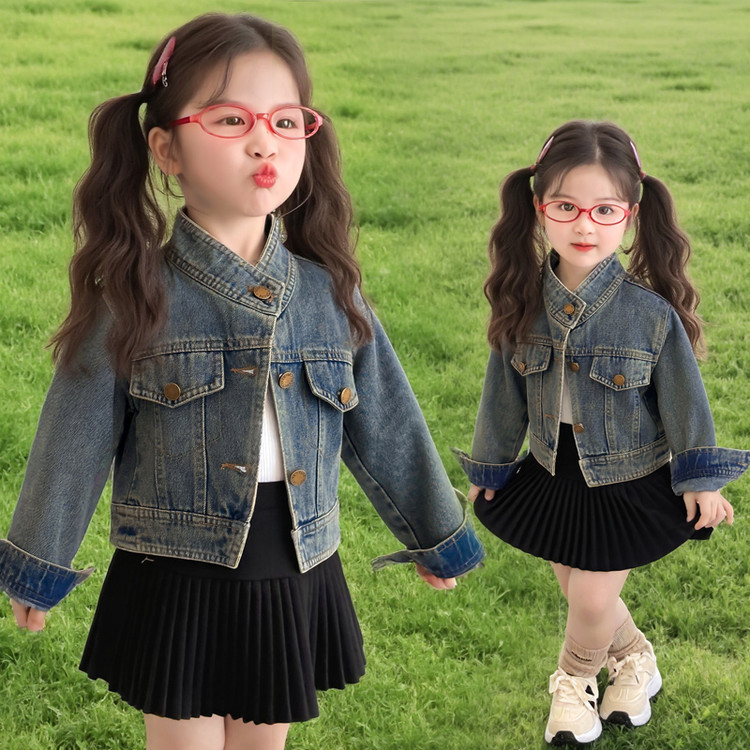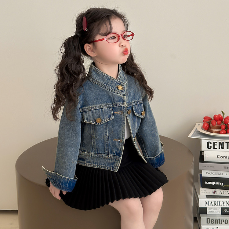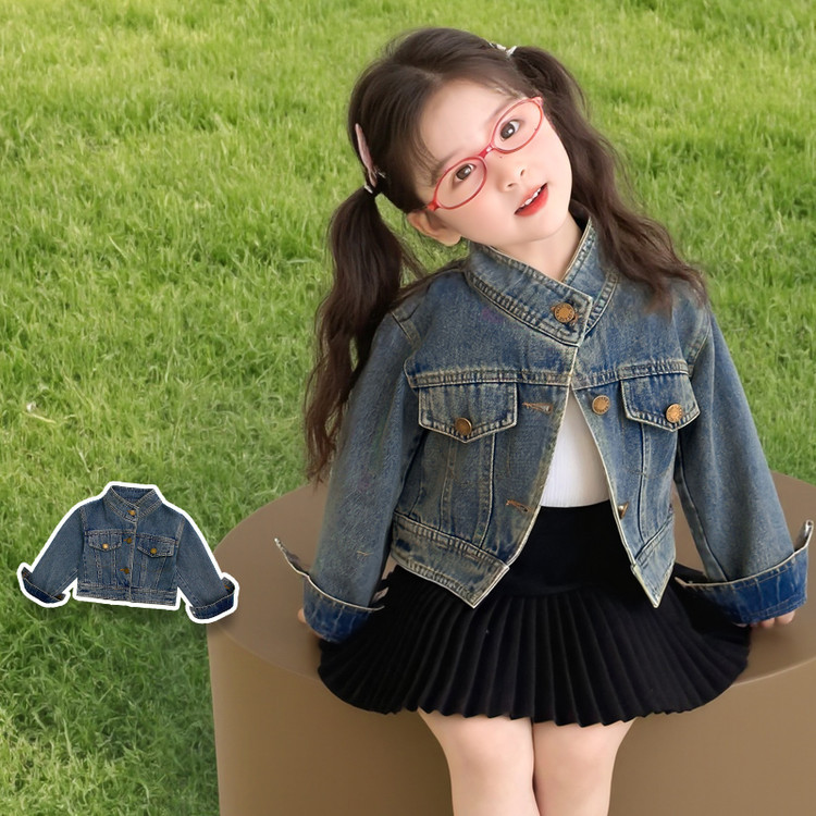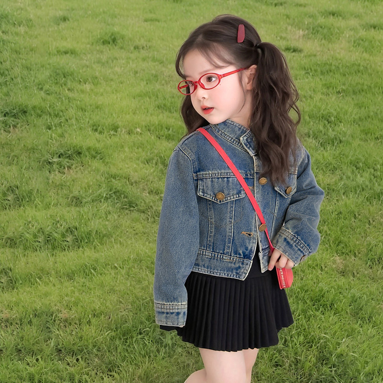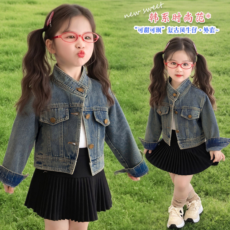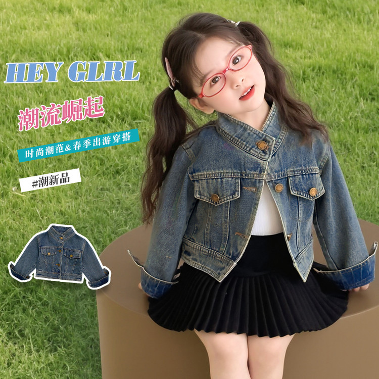 여아 패셔너블한 아메리칸 데님 재킷 봄 아동용 짧은 인터넷 연예인 재킷 봄, 가을 베이비 탑 한국 패션 트렌드스토어 가기