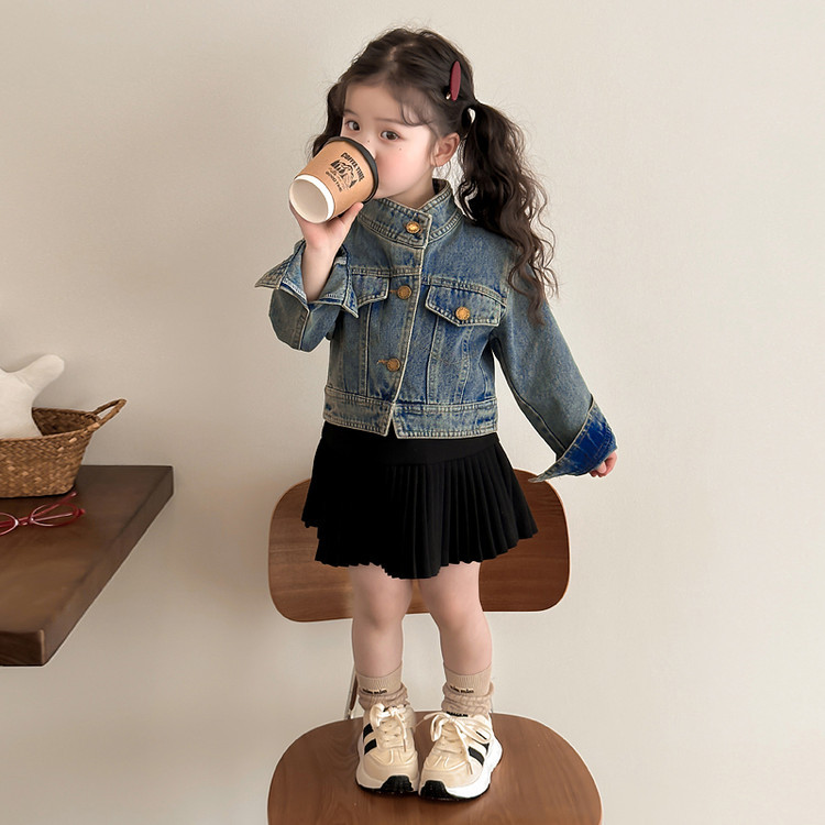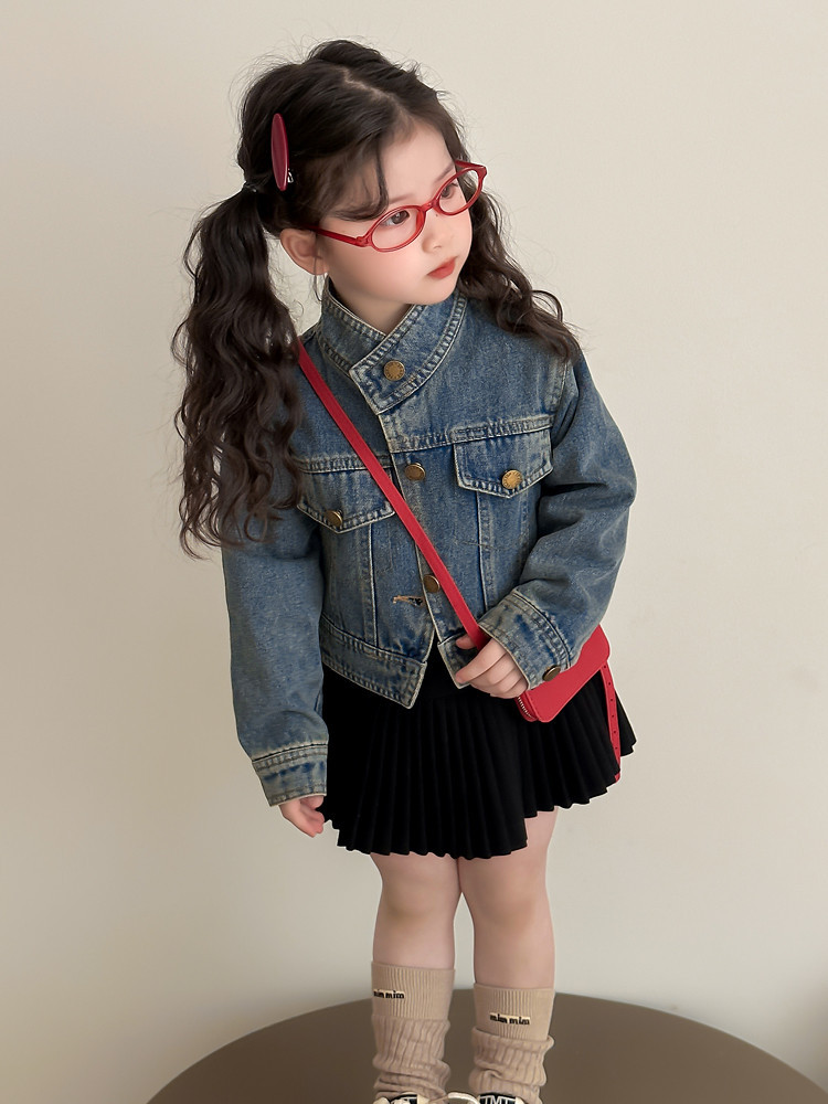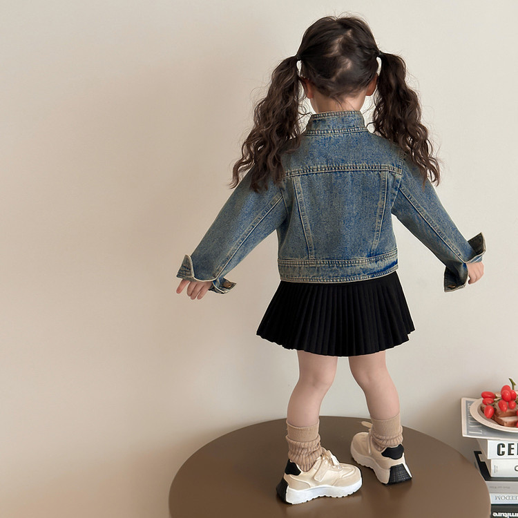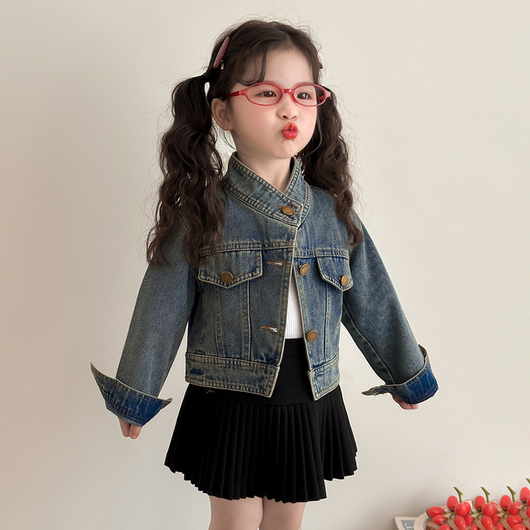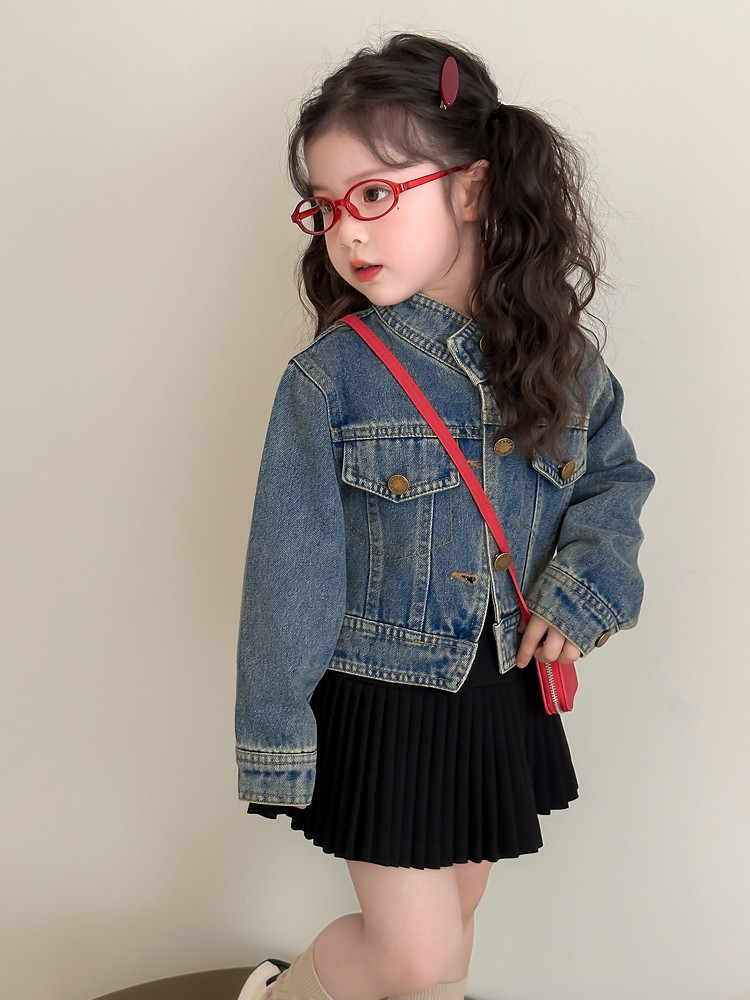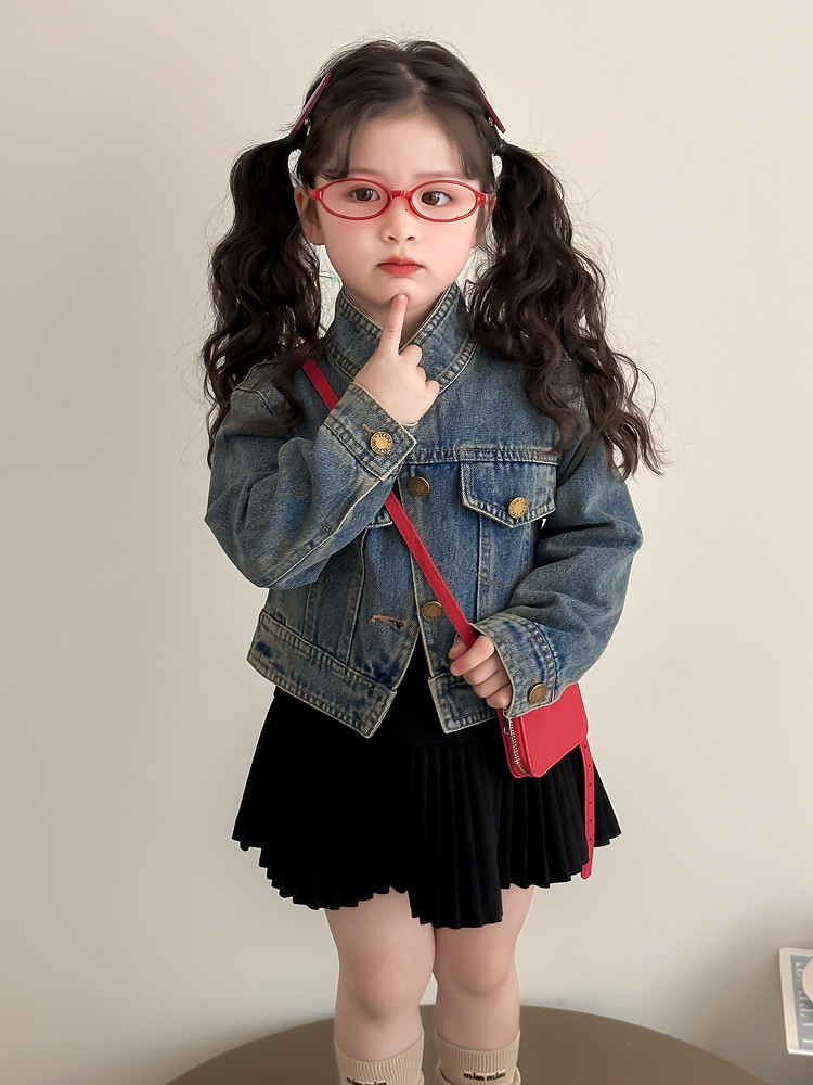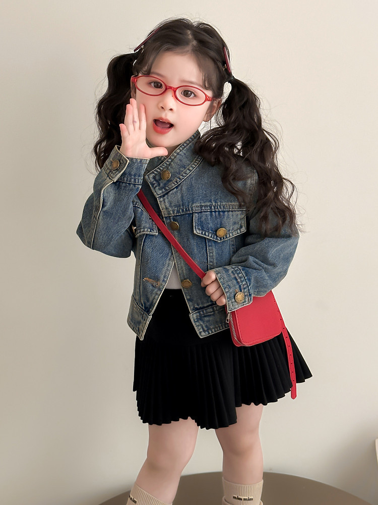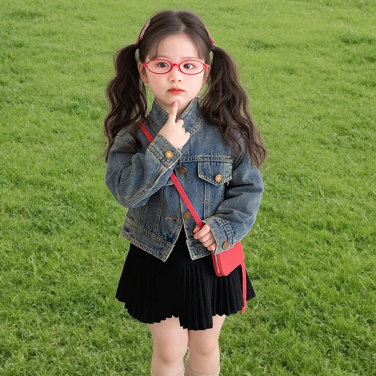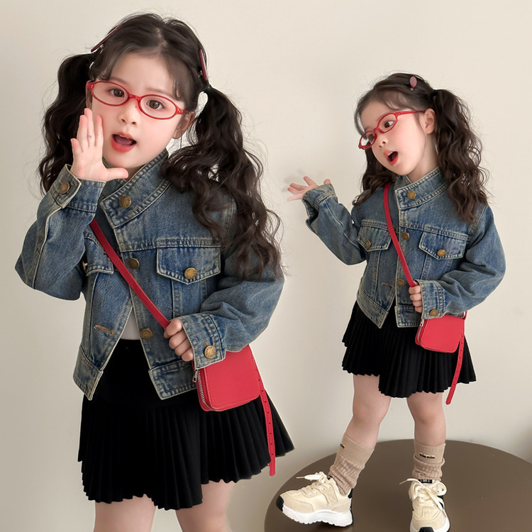 여아 패셔너블한 아메리칸 데님 재킷 봄 아동용 짧은 인터넷 연예인 재킷 봄, 가을 베이비 탑 한국 패션 트렌드스토어 가기