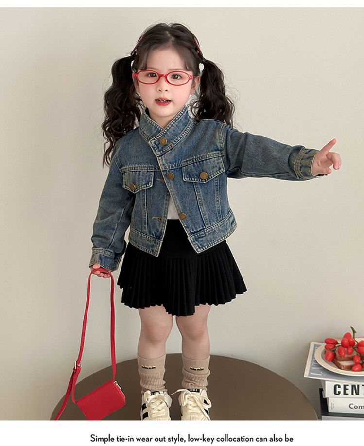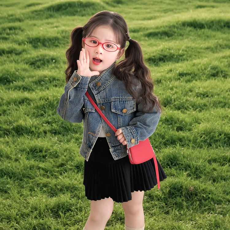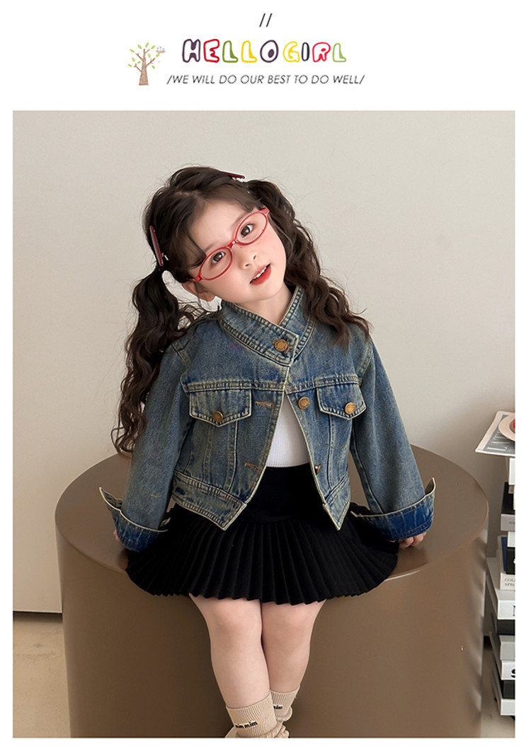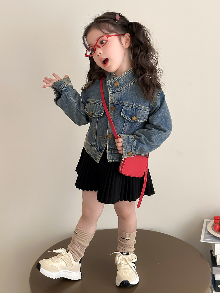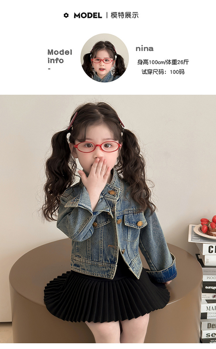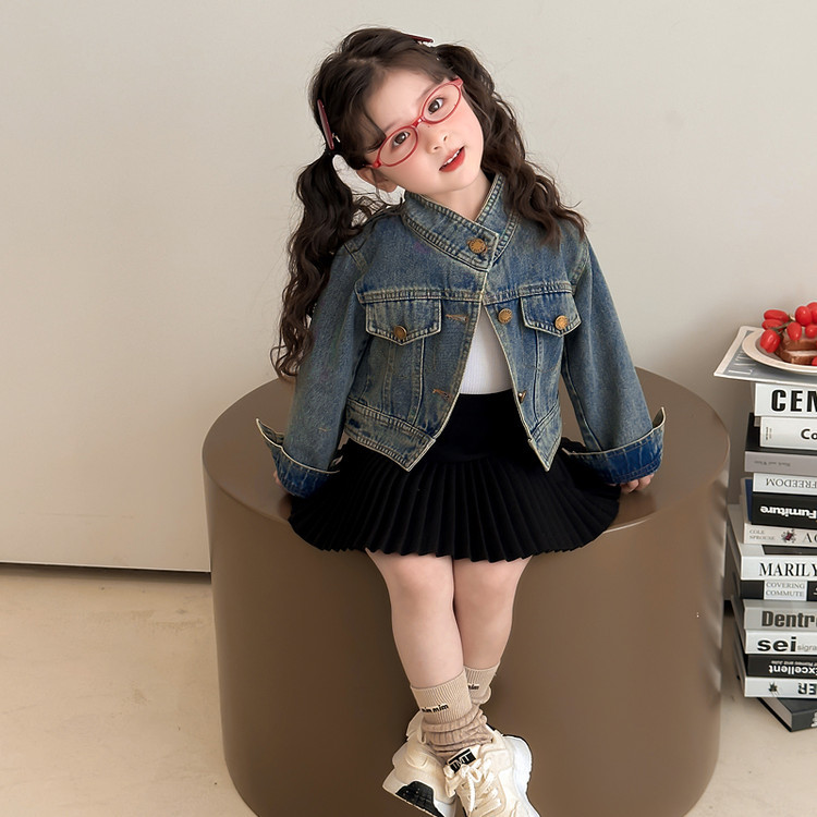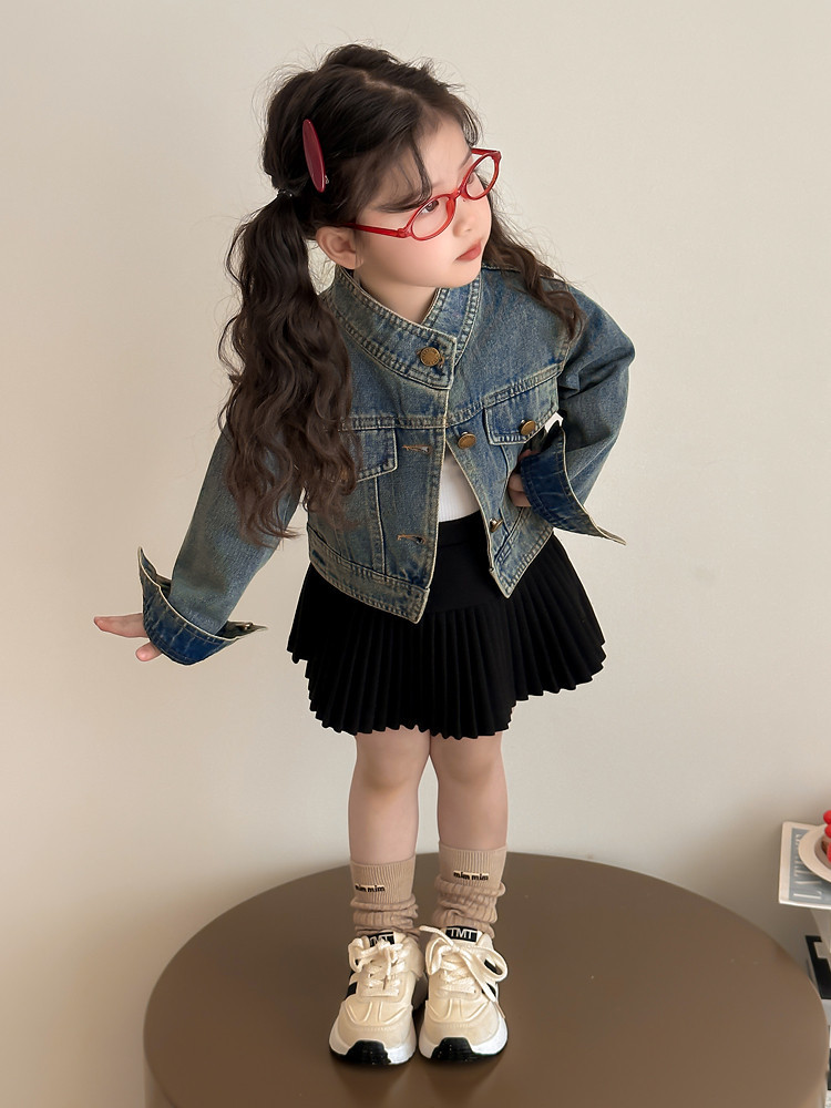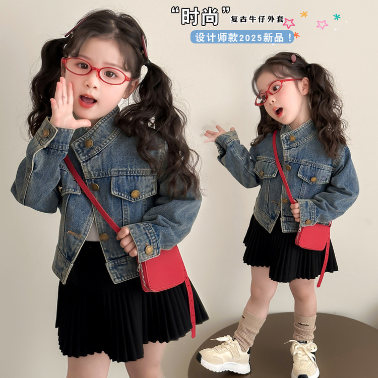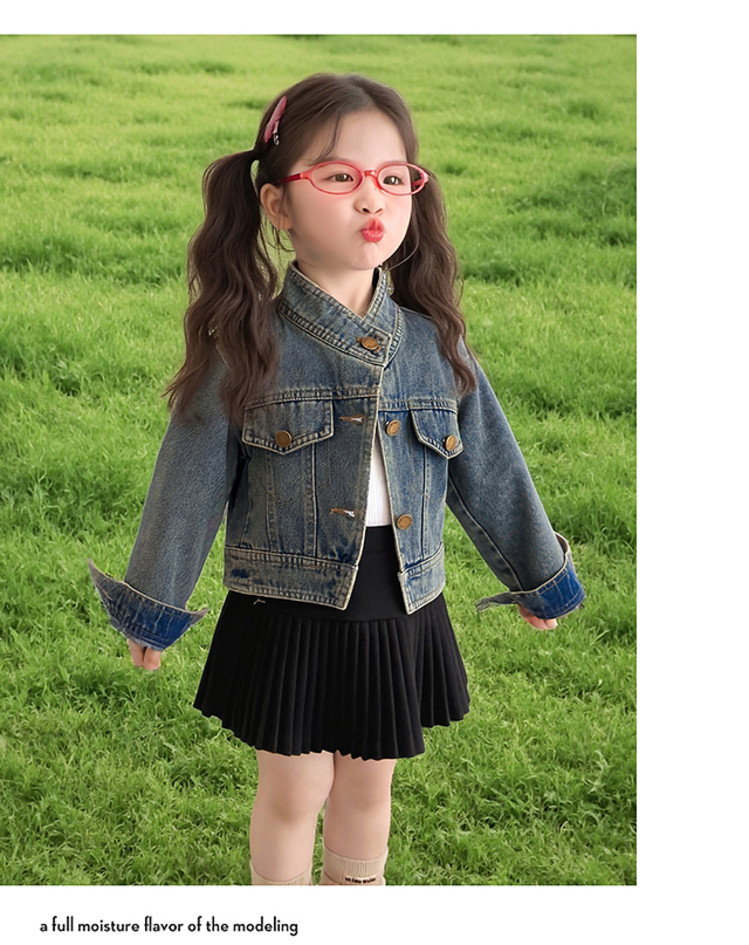 여아 패셔너블한 아메리칸 데님 재킷 봄 아동용 짧은 인터넷 연예인 재킷 봄, 가을 베이비 탑 한국 패션 트렌드스토어 가기