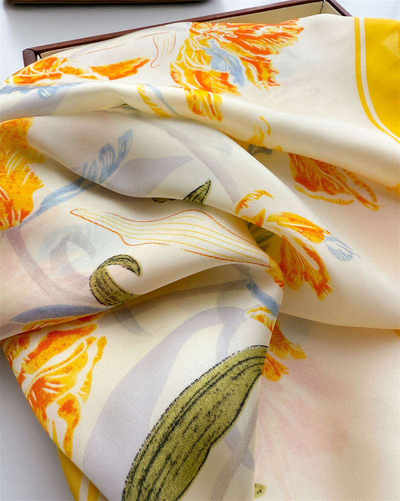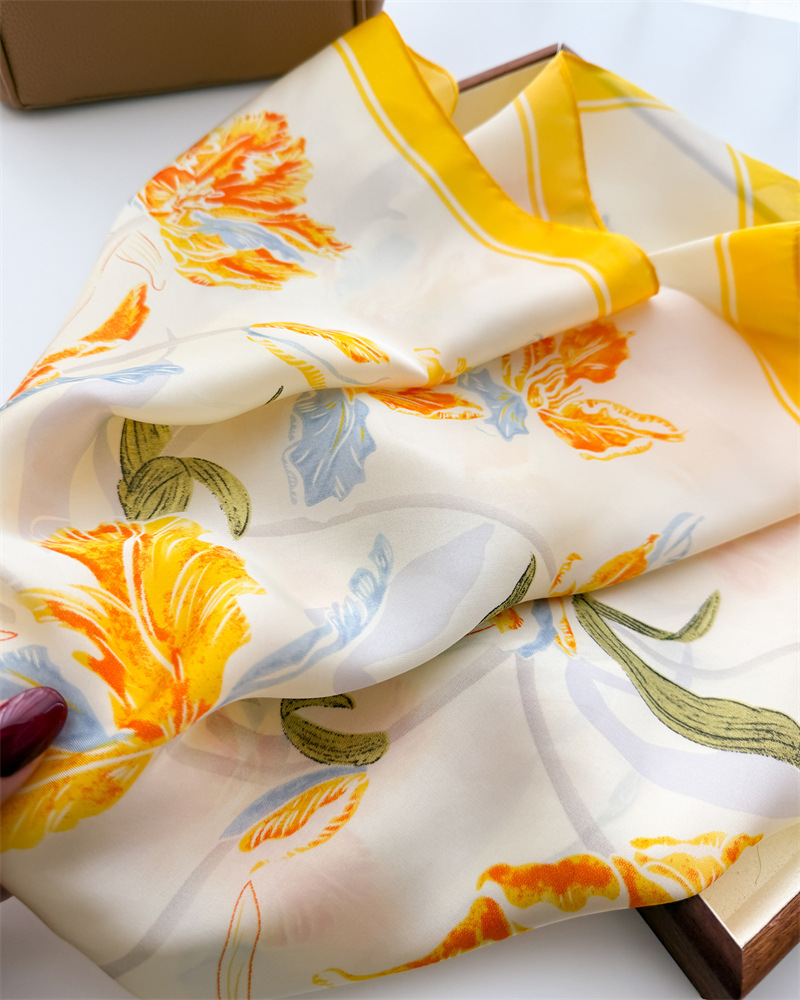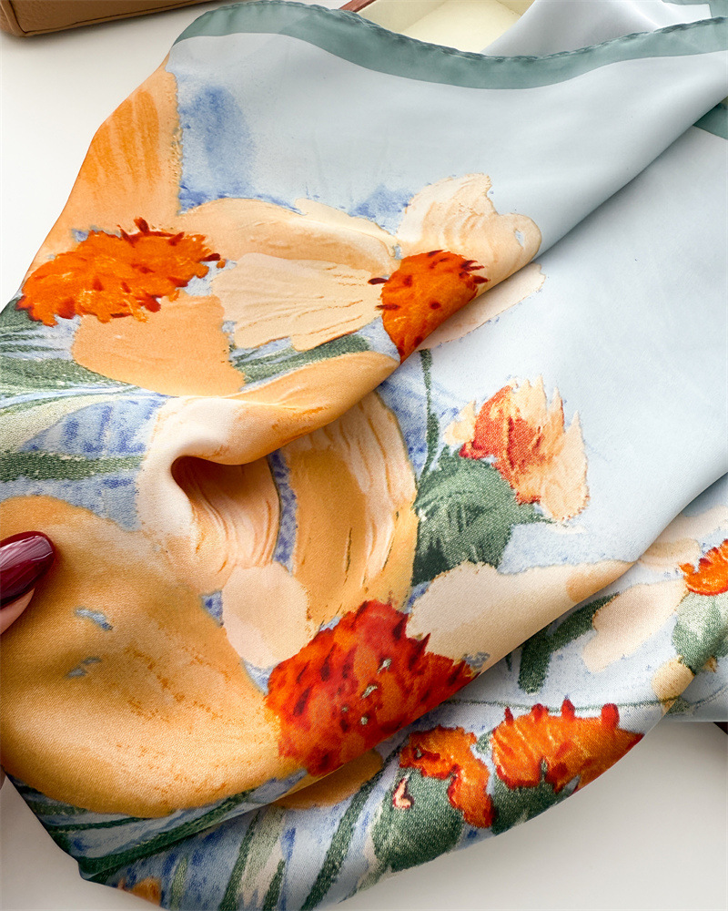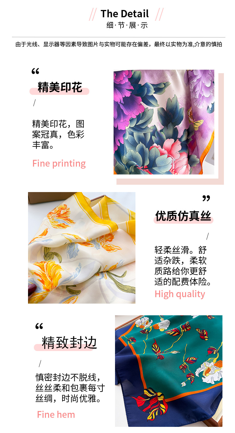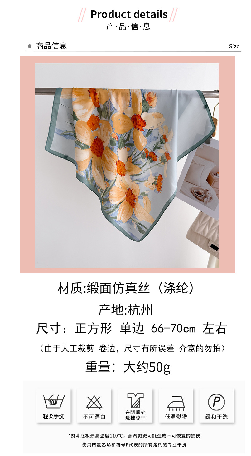 Cui Yun 꽃 그림자 인쇄 실크 스카프 스퀘어 스카프 고급 감각 목도리 전문 올 매치 넥 작은 스퀘어 스카프 머리 스카프 여성용 스카프스토어 가기