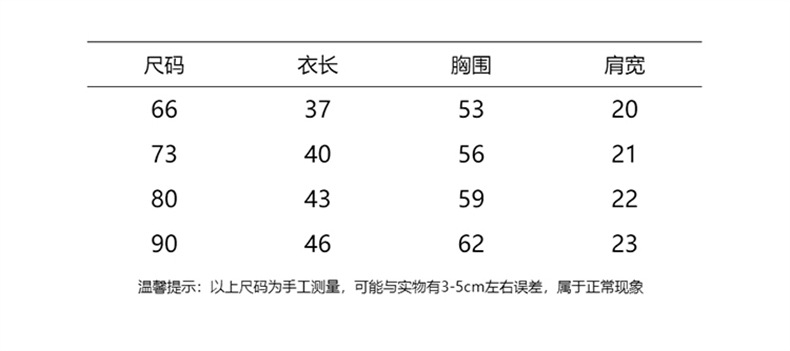 66码(适合身高55-62cm,体重7-13斤,0-4个月宝宝)
