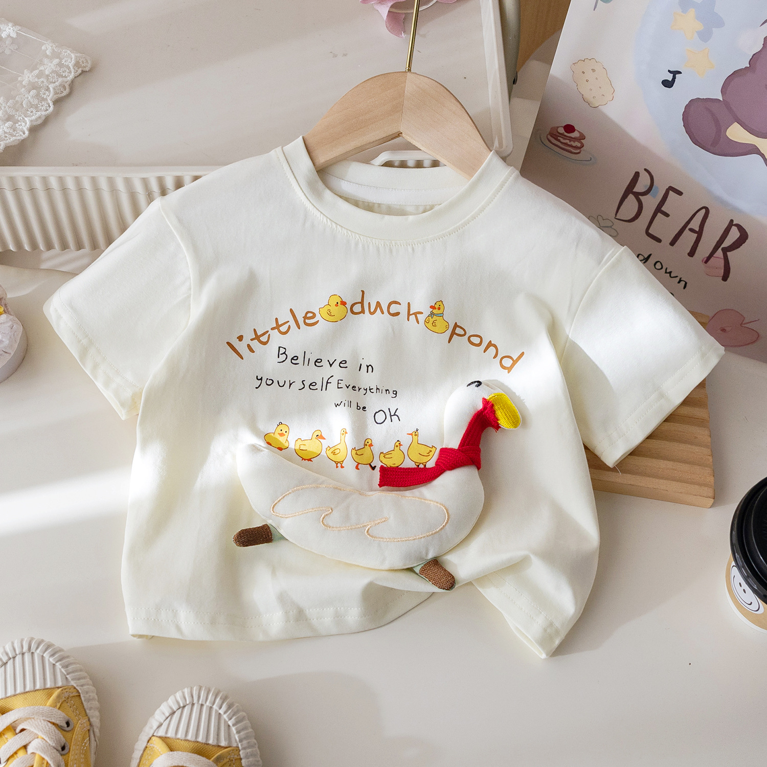 여자 반소매 티셔츠 2025 여름 새 어린이 만화 귀여운 입체 장식 올 매치 반소매 여성용 보물 탑스토어 가기