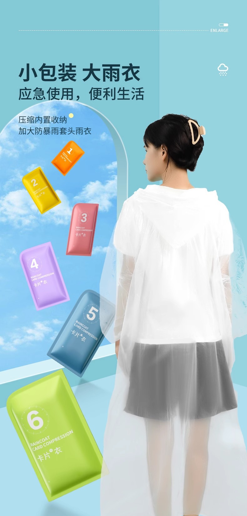 일회용 카드형 우비 롱 스타일 전신 투명 두꺼운 방수 여름용 성인 휴대용 우비 어린이 방수복