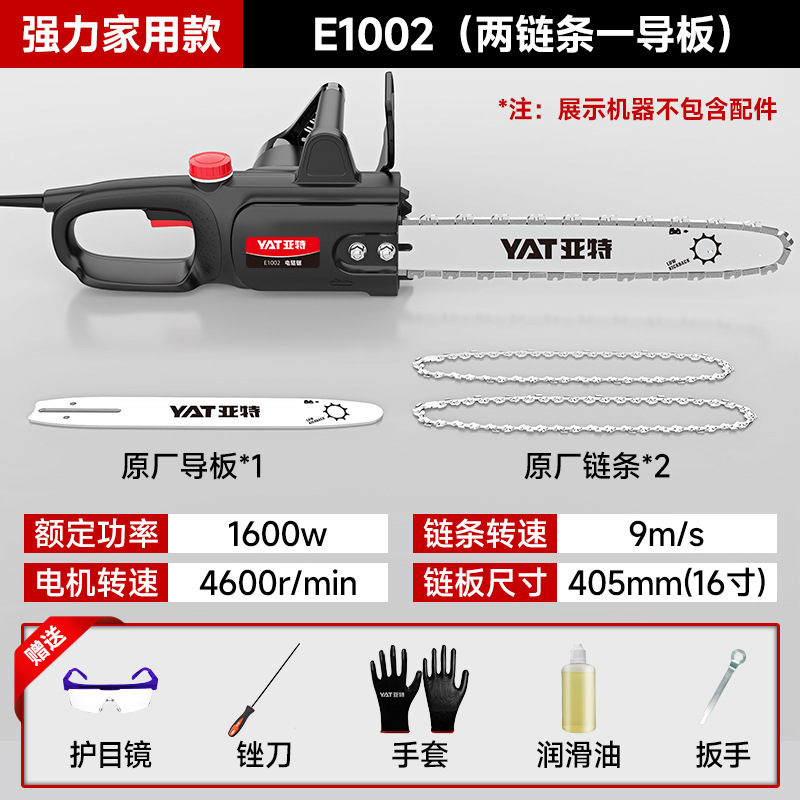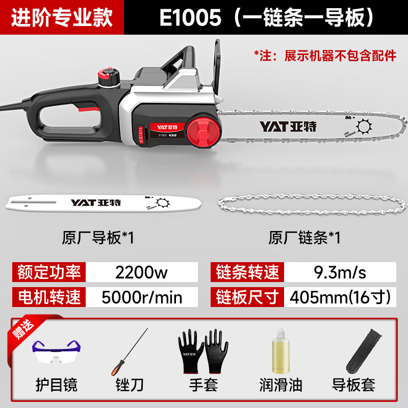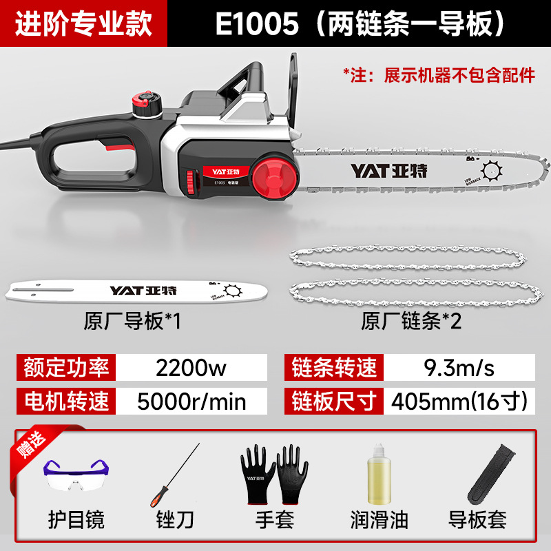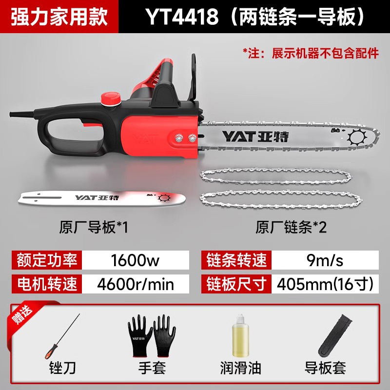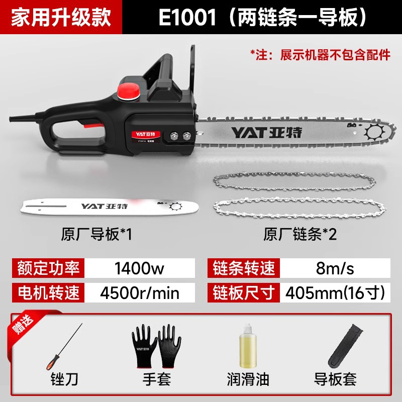 YAT 전기 체인 톱 가정용 나무 톱 220V 플러그인 전기 톱 소형 휴대용 벌목 톱 전기 체인 8극