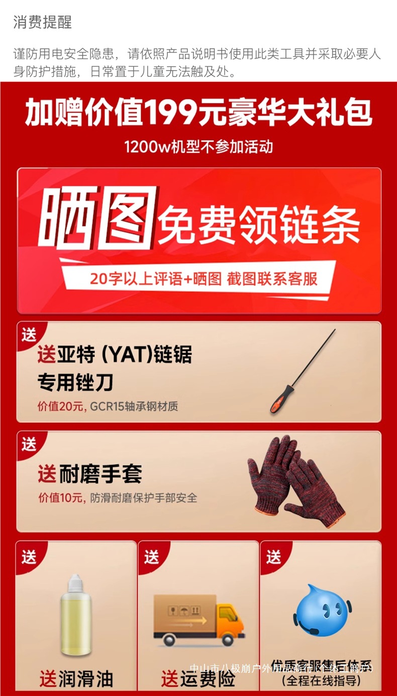 YAT 전기 체인 톱 가정용 나무 톱 220V 플러그인 전기 톱 소형 휴대용 벌목 톱 전기 체인 8극스토어 가기