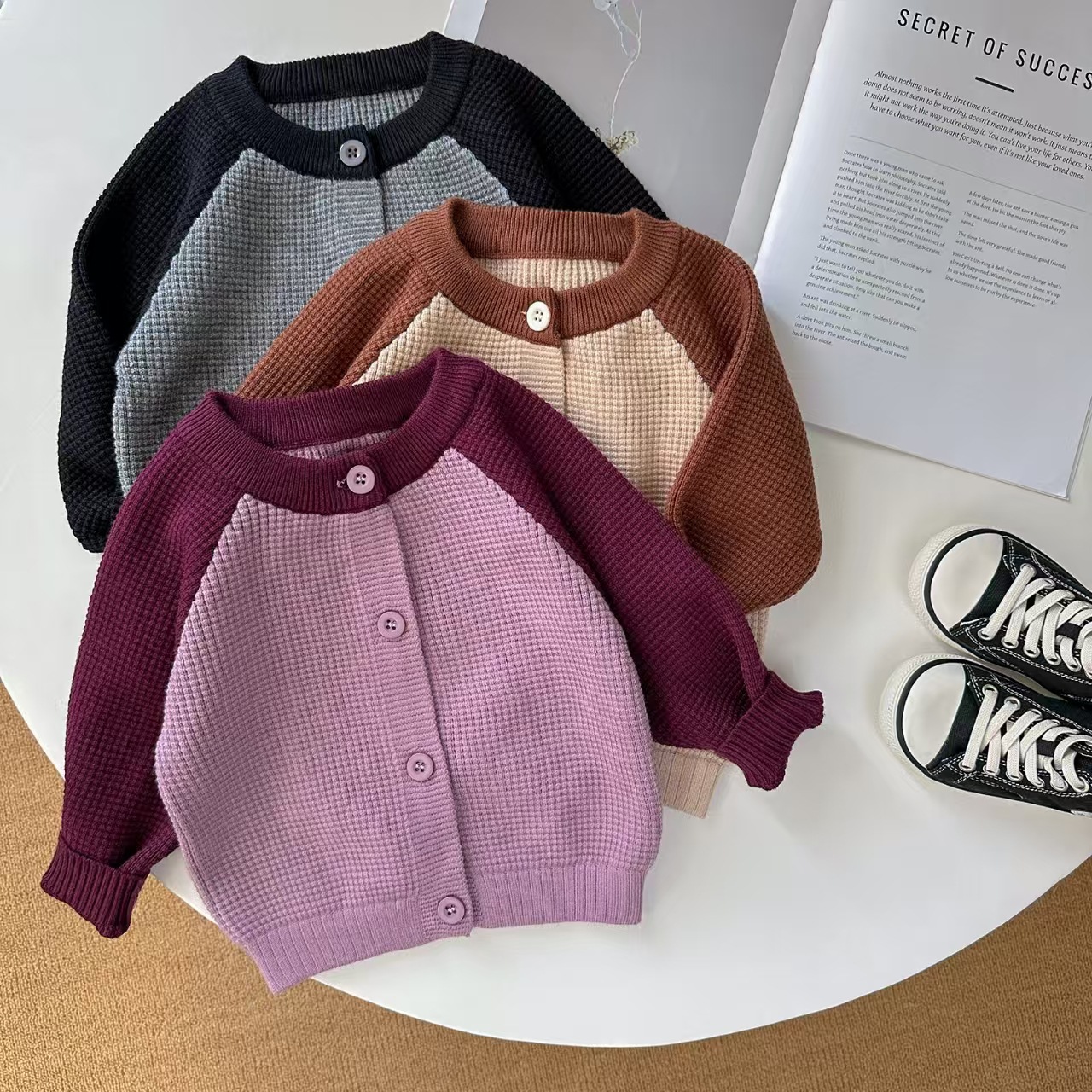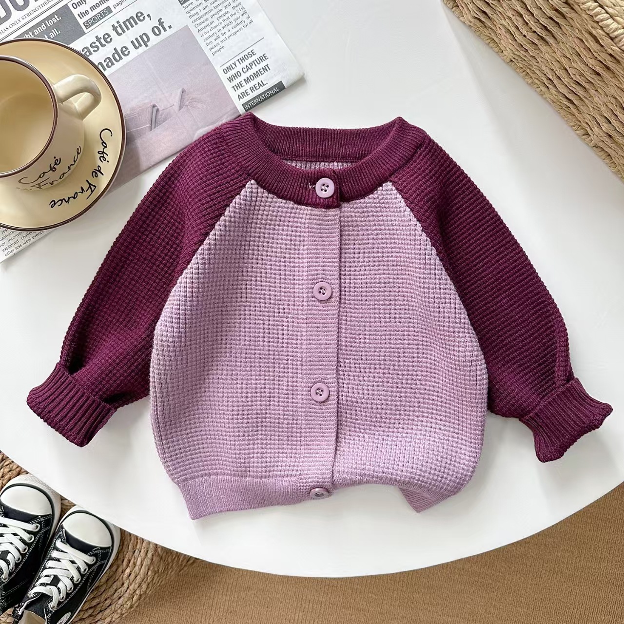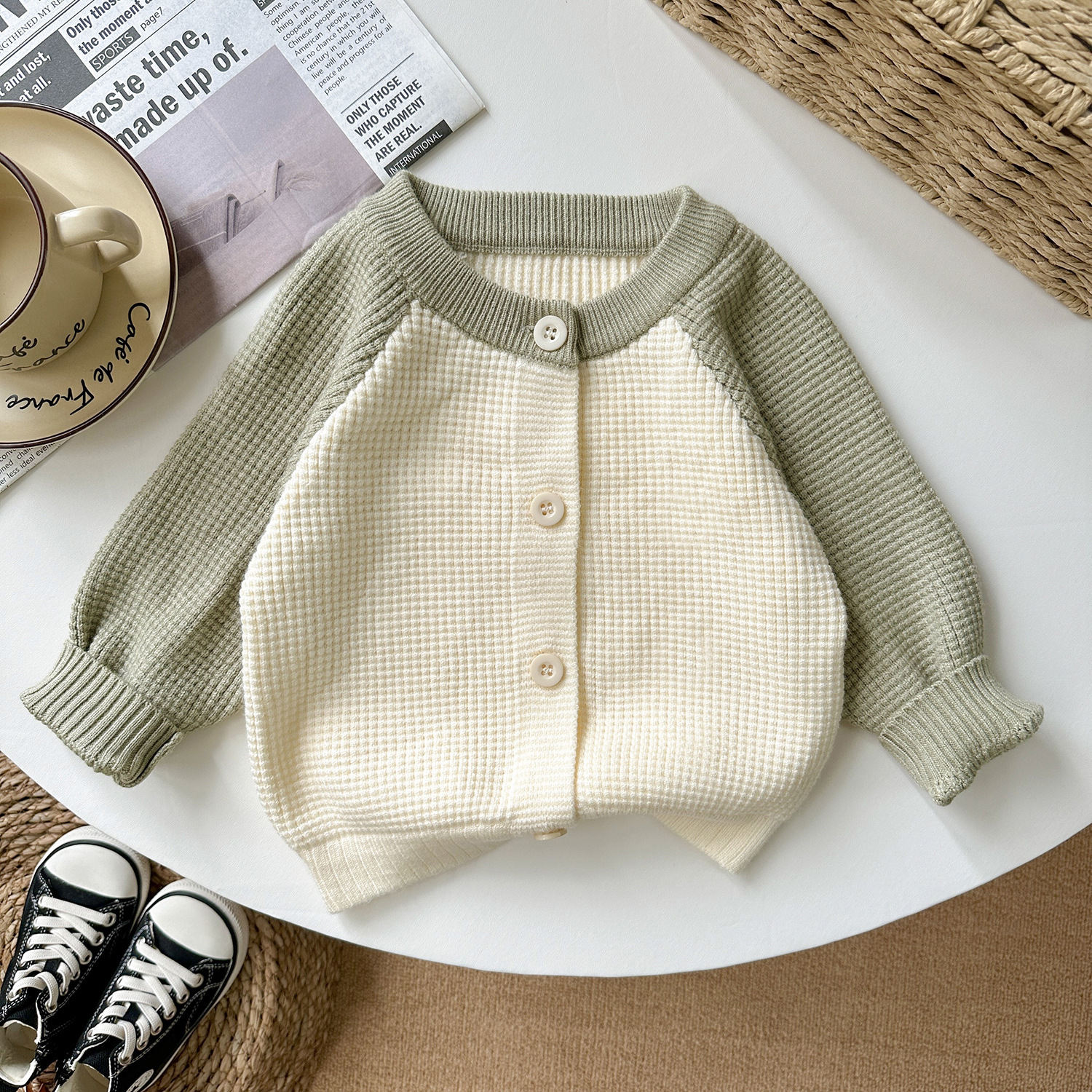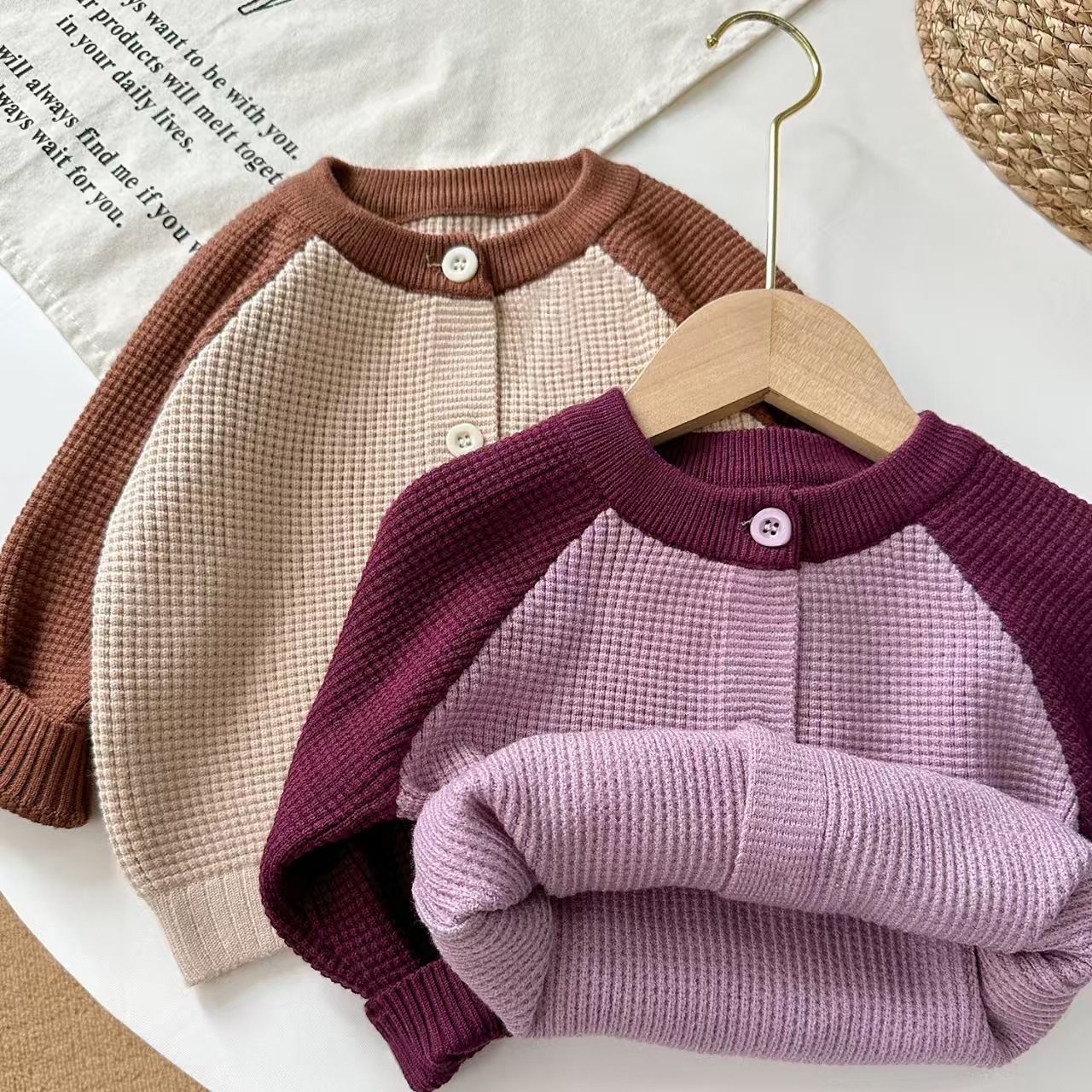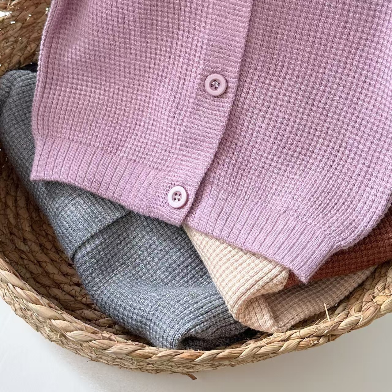라이브 공급 2025 새로운 어린이 스웨터 봄 아기 둥근 목 트위스트 코트 카디건 스웨터 소년 소녀