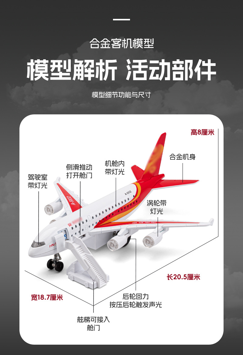 자동차-민간 여객기 모델 합금 항공기 Acousto-Optic Power Toy Boy 시뮬레이션 모델 기념 컬렉션 장식품