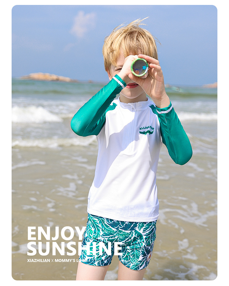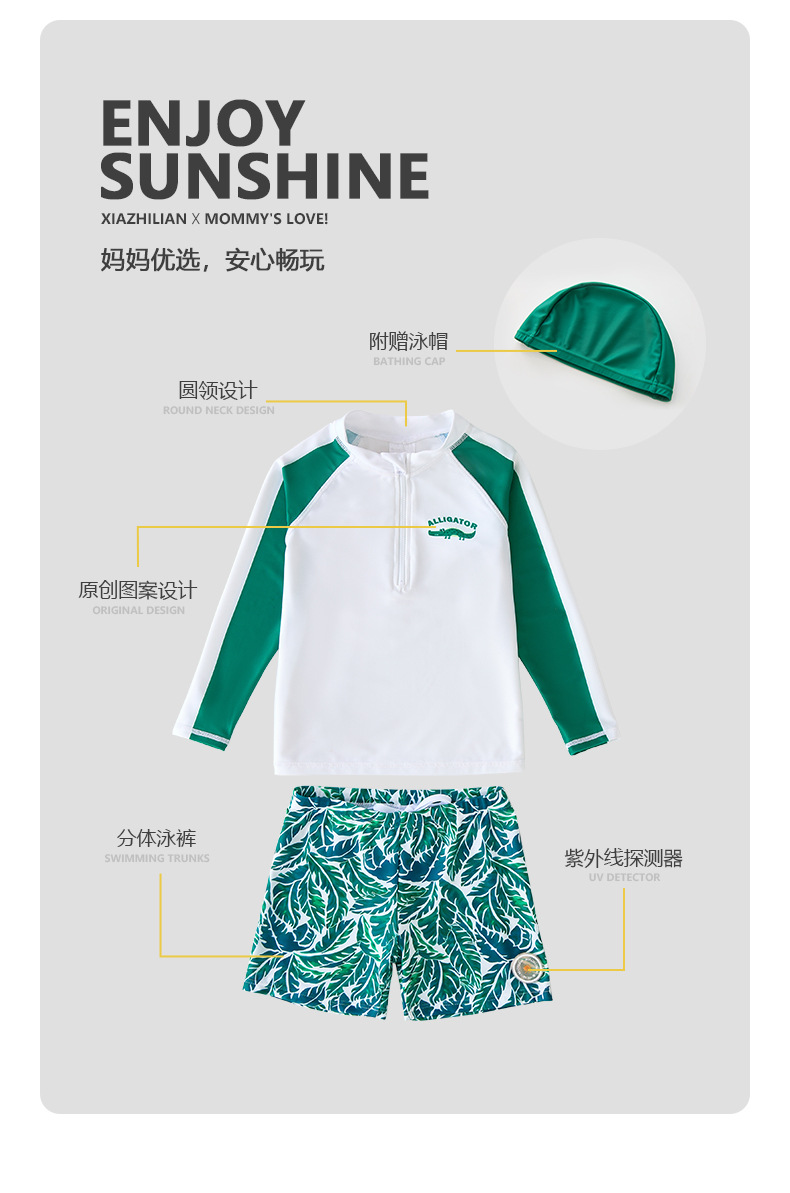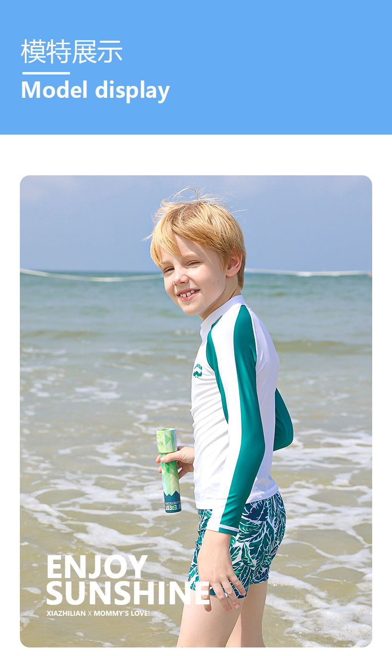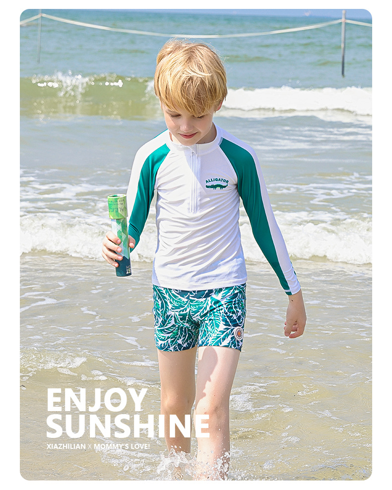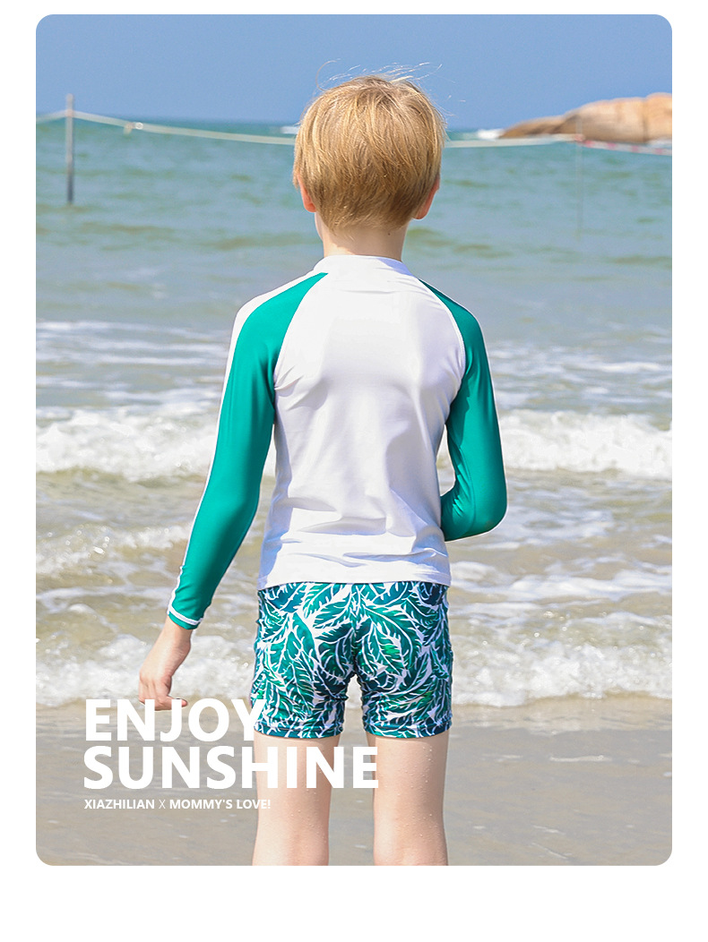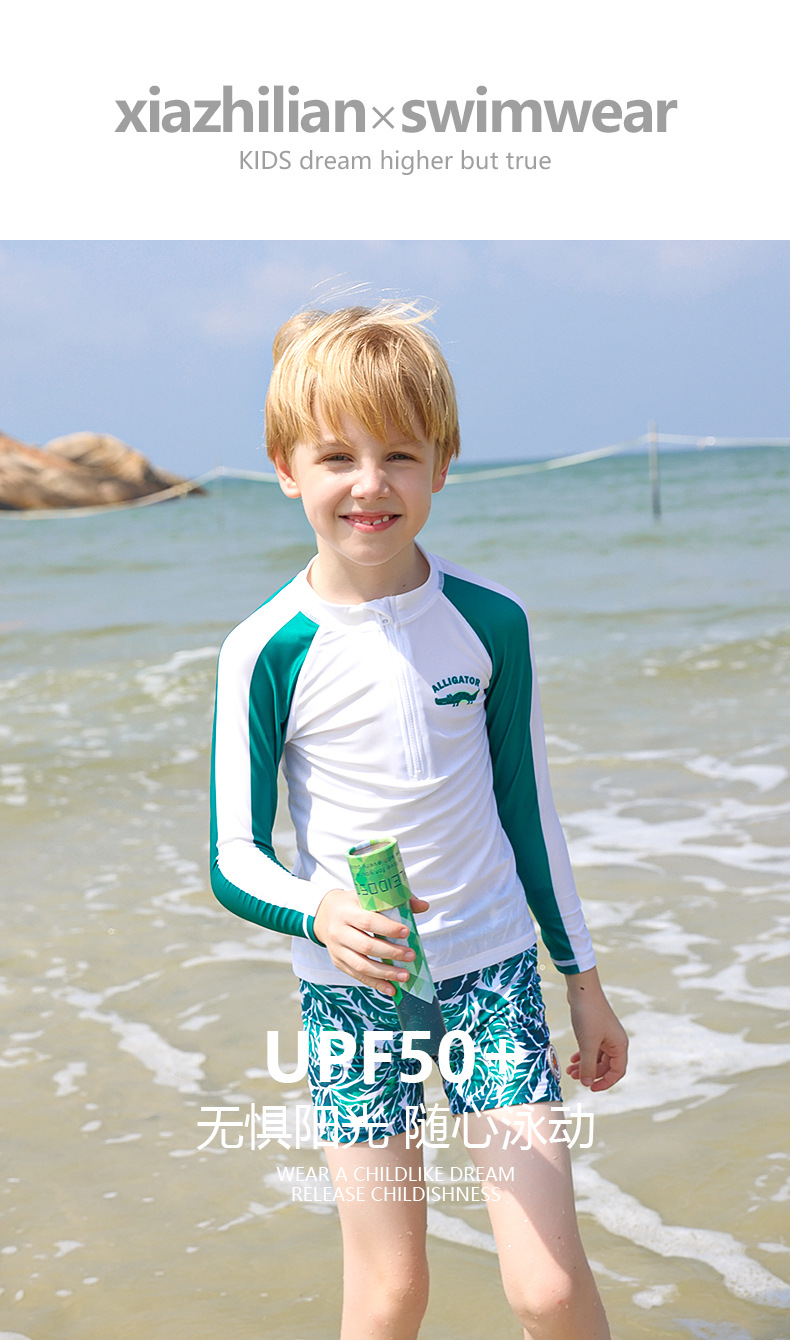 韩国儿童泳衣男童宝宝分体长袖防晒中小童速干海边度假游泳套装潮