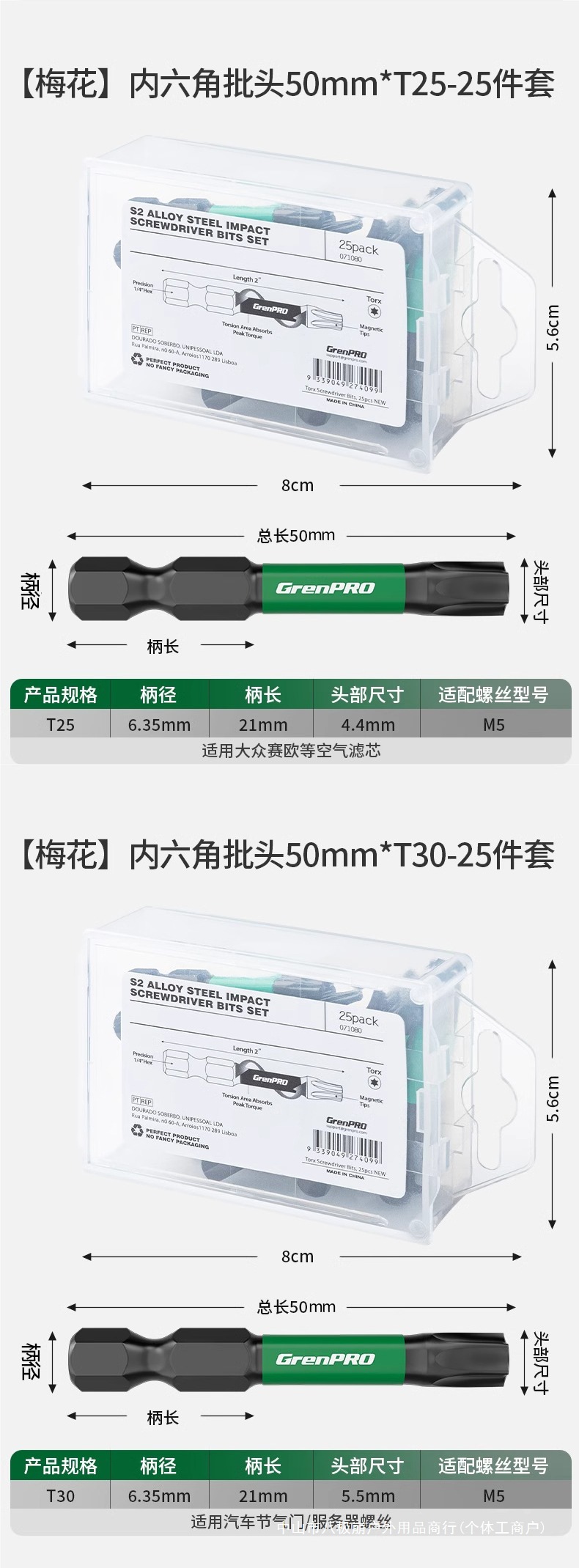 그린 포레스트 육각 비트 세트 매화 강력 자석 초경질 전기 드라이버 렌치 전기 드릴 t20 드라이버 8극