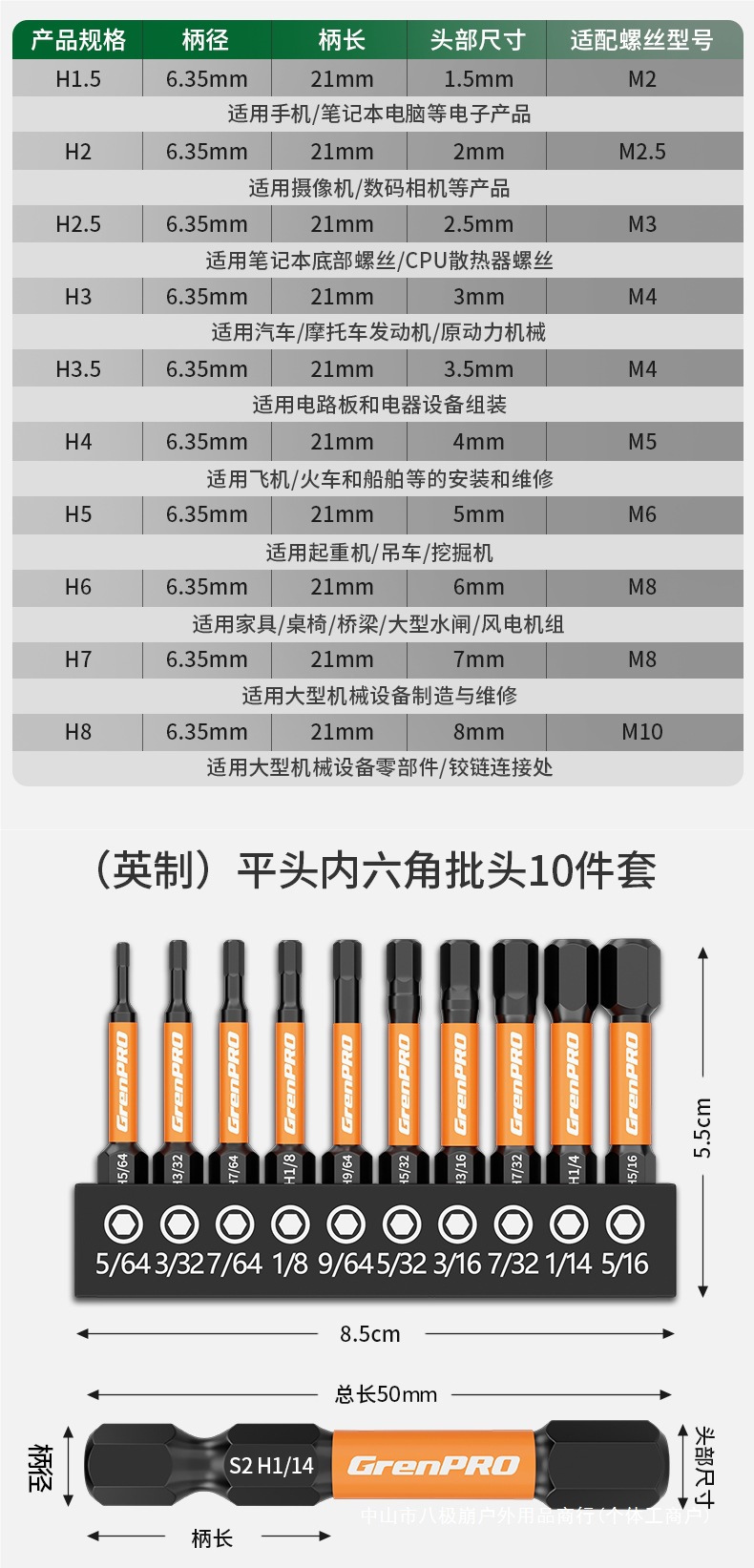 • 50mm 미터법 및 인치 육각 비트 세트, 20개