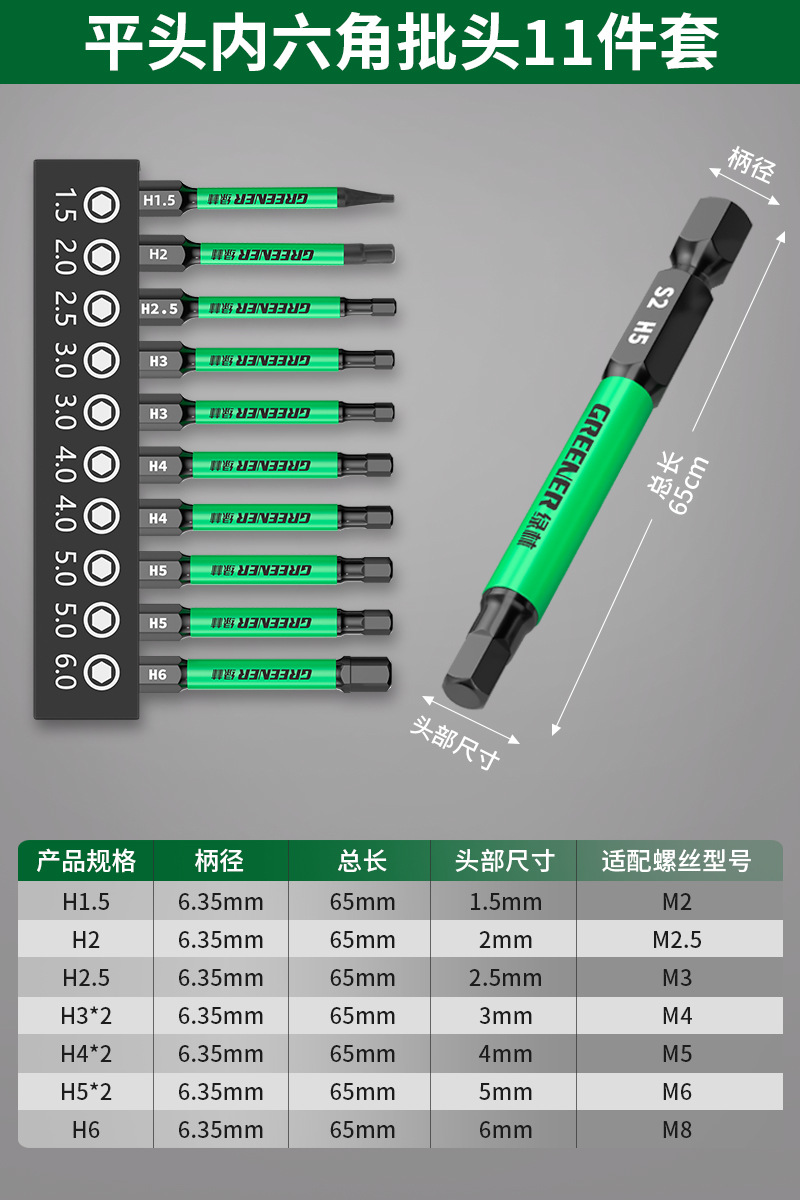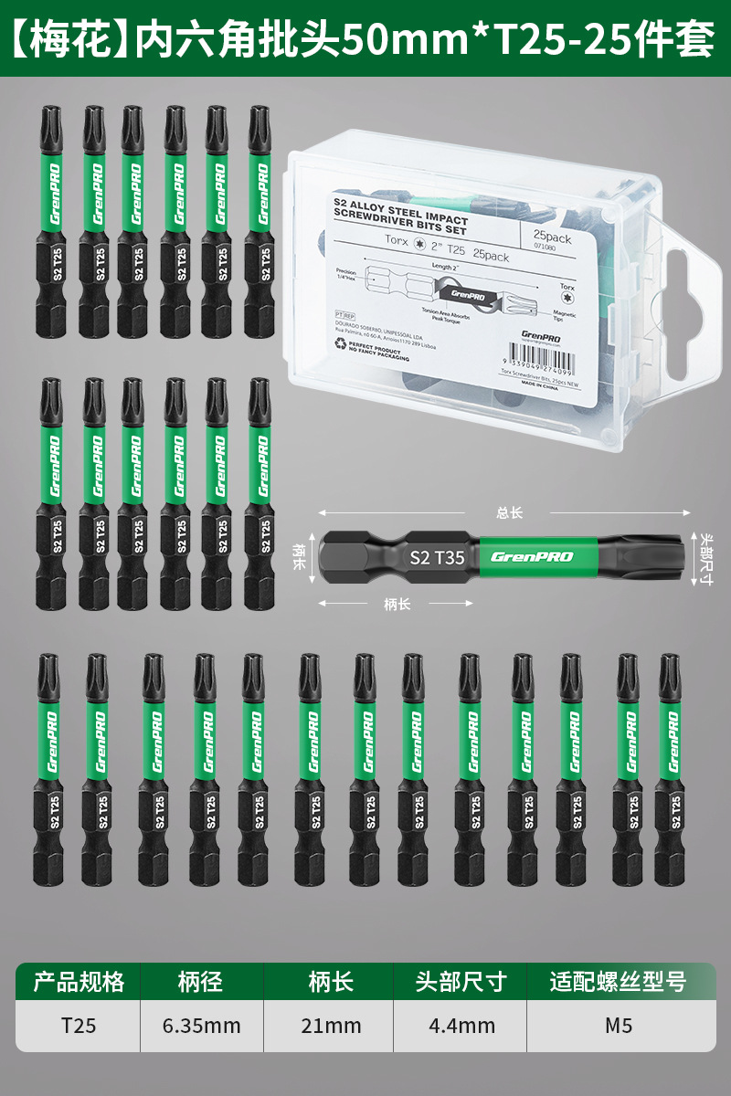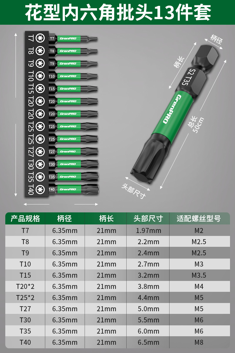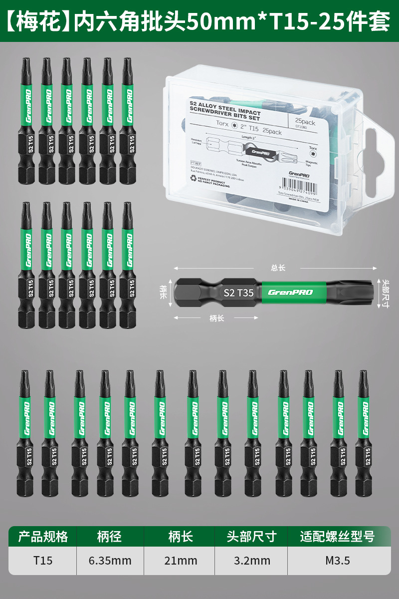 그린 포레스트 육각 비트 세트 매화 강력 자석 초경질 전기 드라이버 렌치 전기 드릴 t20 드라이버 8극스토어 가기