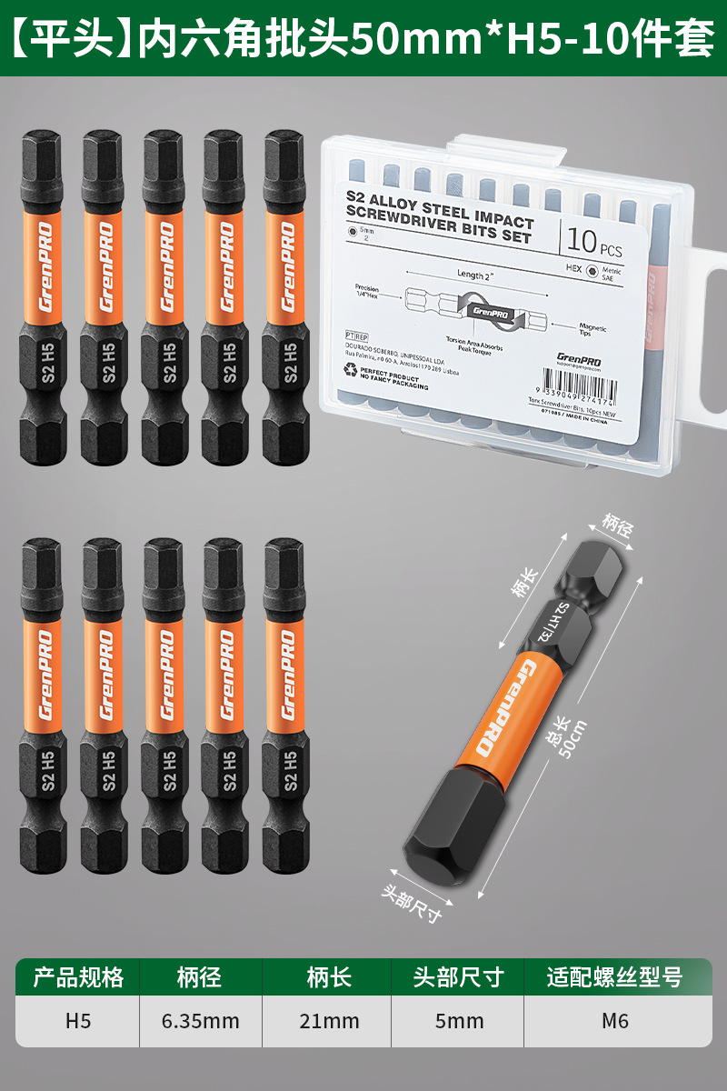 • 50mm [임팩트 내부 육각형] H5-10개 세트