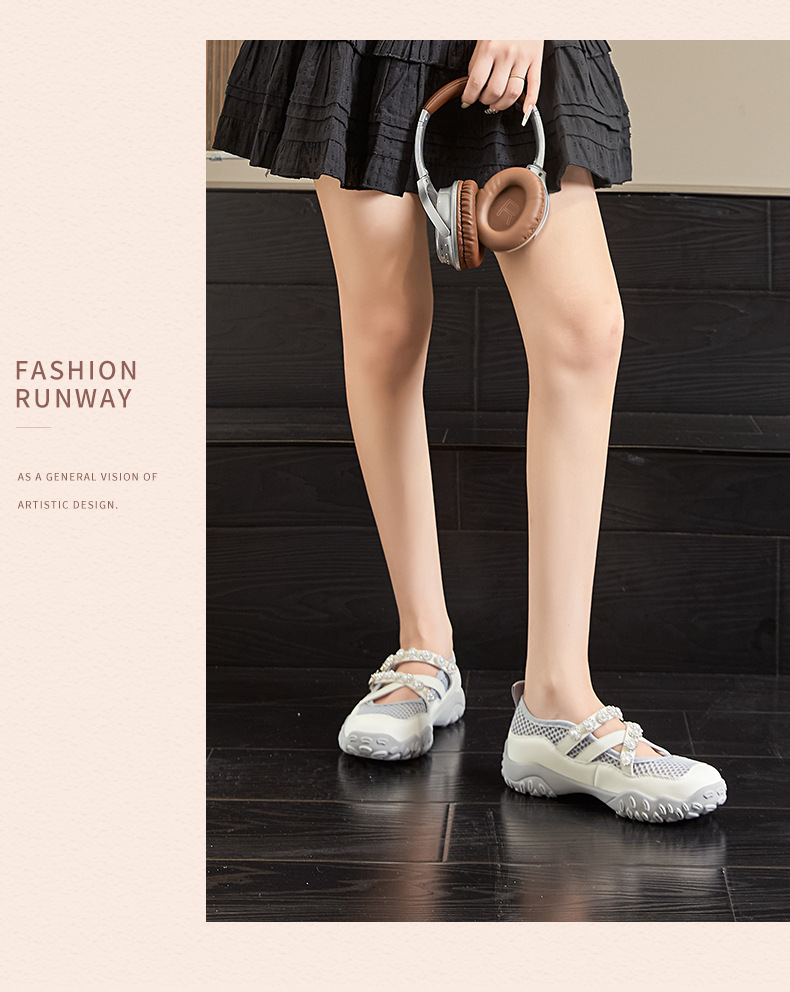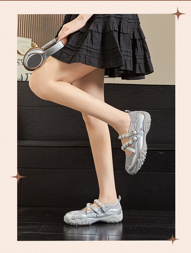 펄 메리 제인 신발 2025 여름 두꺼운 단독 높이 증가 여성 신발 캐주얼 올 매치 통기성 싱글 레이어 신발 통근 패션 여성 신발스토어 가기