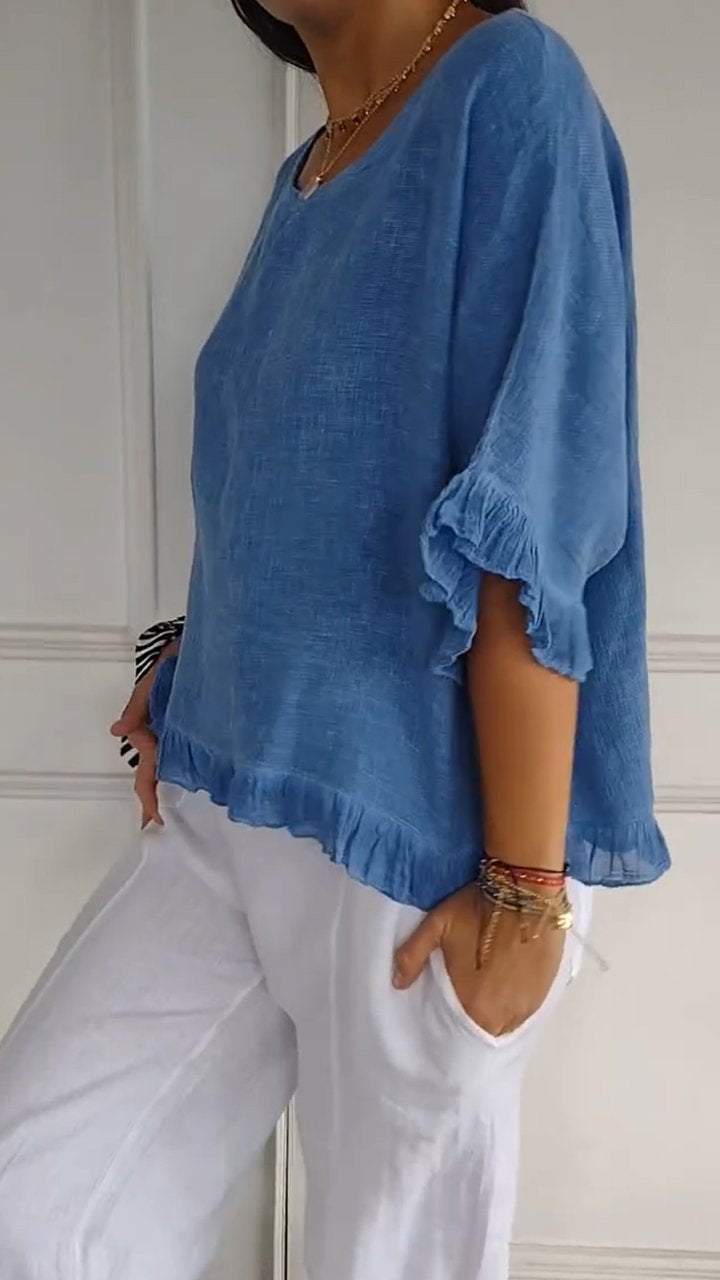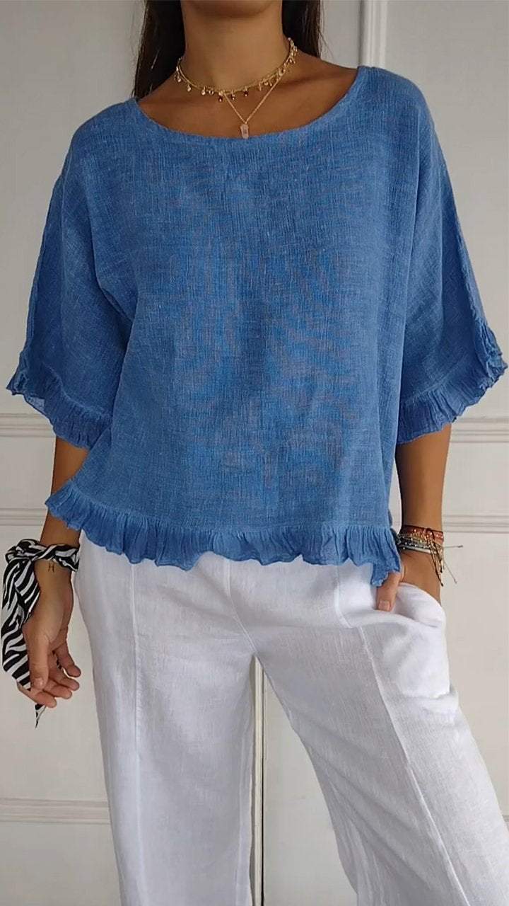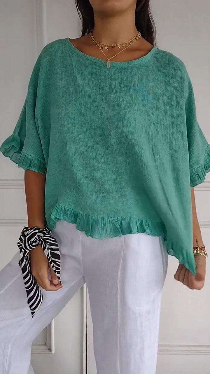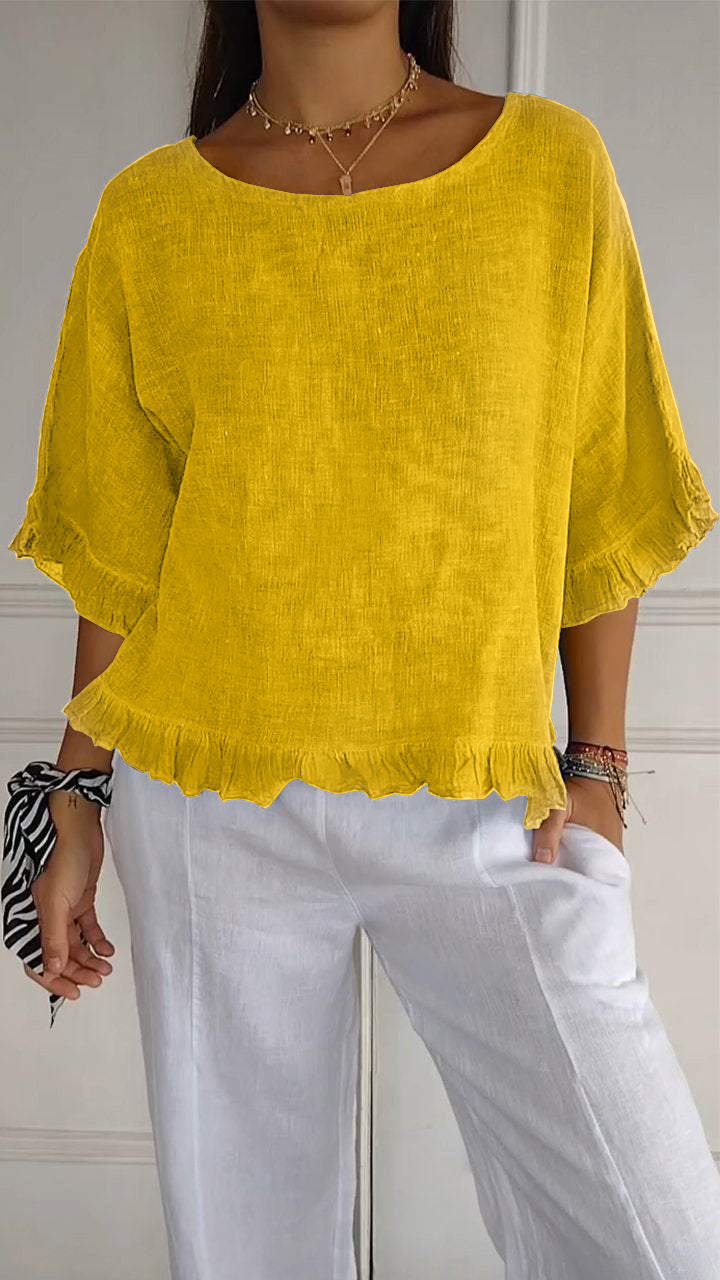 새로운 2024 대외 무역 독립 역 국경 여름 여성 반팔 라운드 넥 코튼 솔리드 컬러 느슨한 유럽과 미국 셔츠 여성