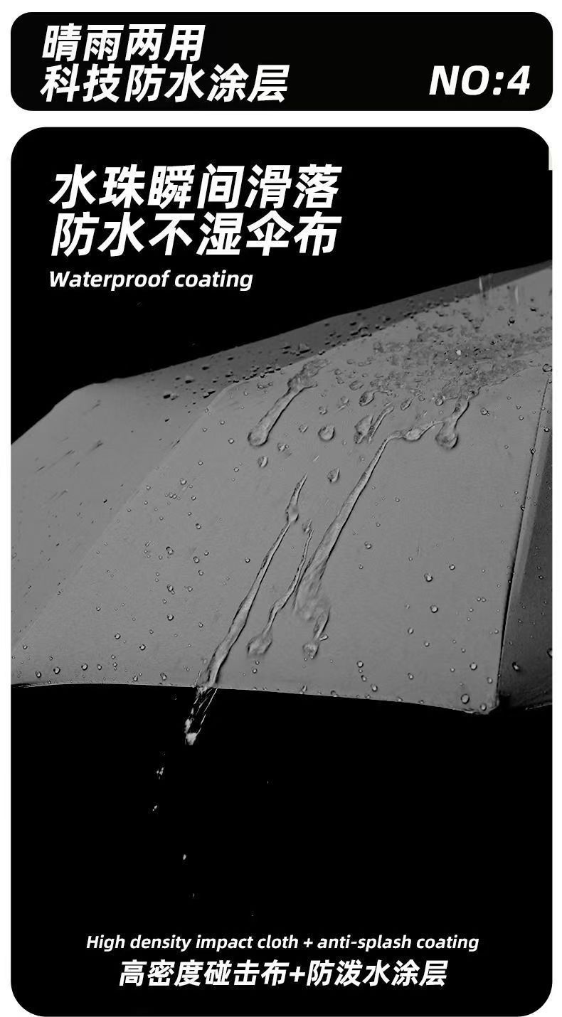 완전 자동 태양 차단 우산, 접이식 이중 강화 두꺼운 방풍 블랙 글로시 자외선 차단 우산, 강화된 방풍 기능