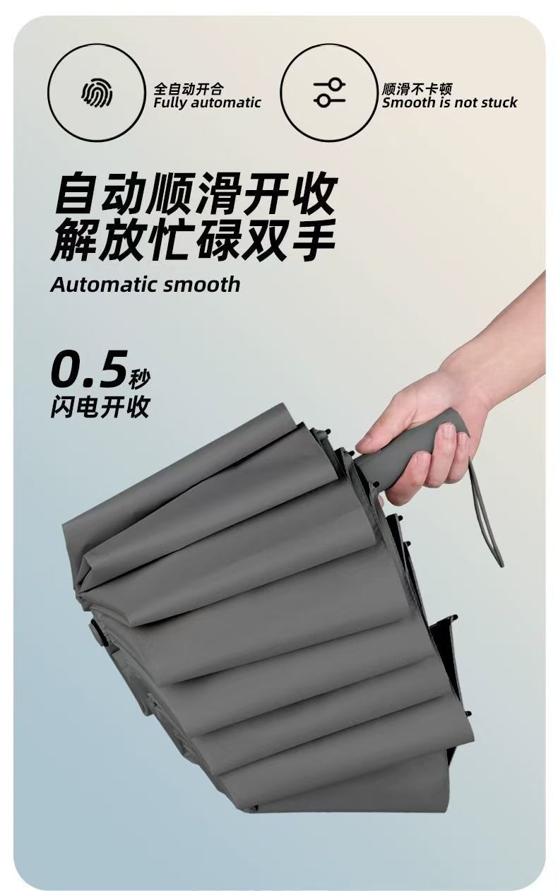 완전 자동 태양 차단 우산, 접이식 이중 강화 두꺼운 방풍 블랙 글로시 자외선 차단 우산, 강화된 방풍 기능스토어 가기