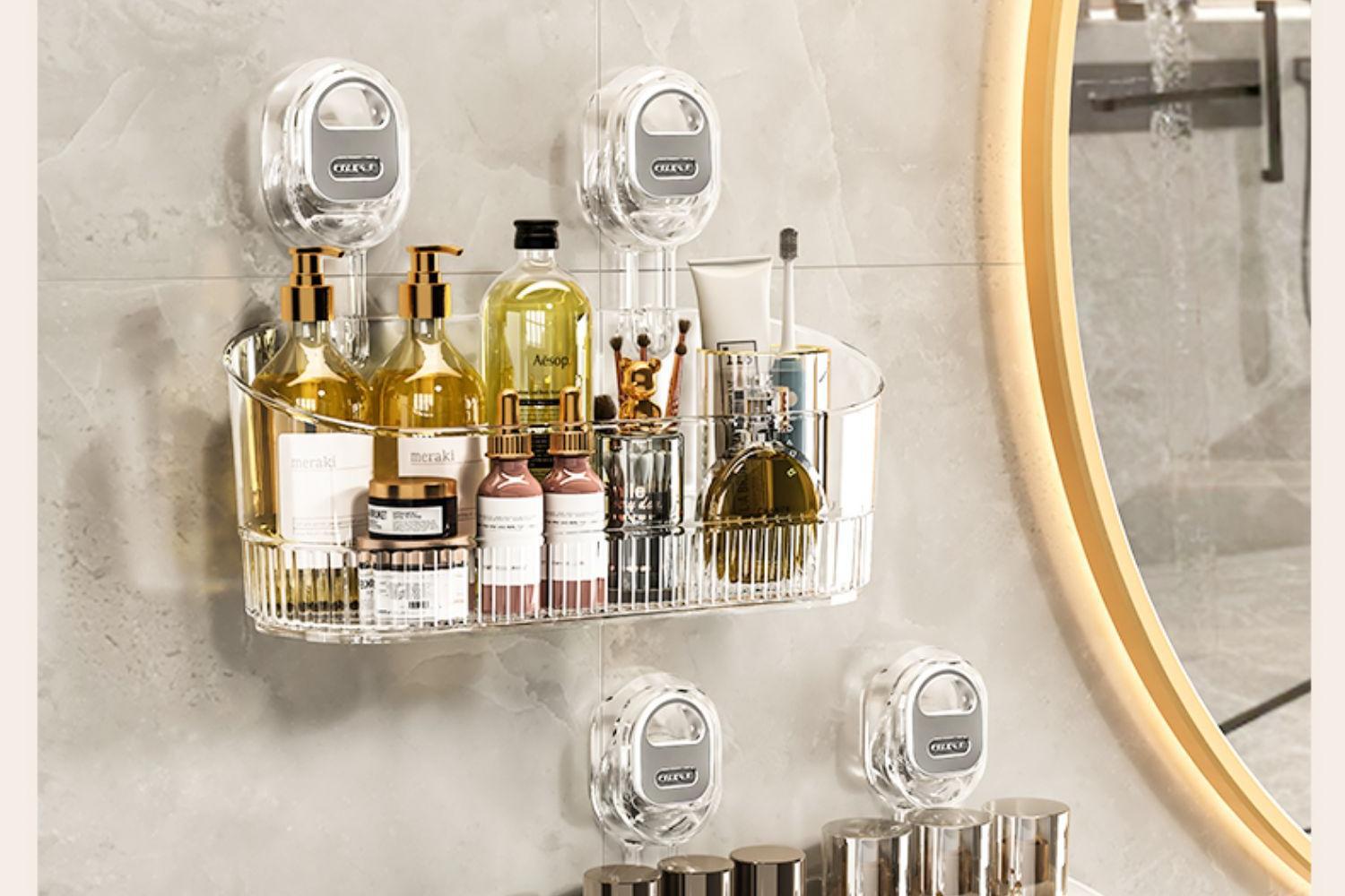 가벼운 럭셔리 흡입 컵 보관 랙 펀치없는 벽걸이 화장실 욕실 화장실 세탁기 주방 보관 상자