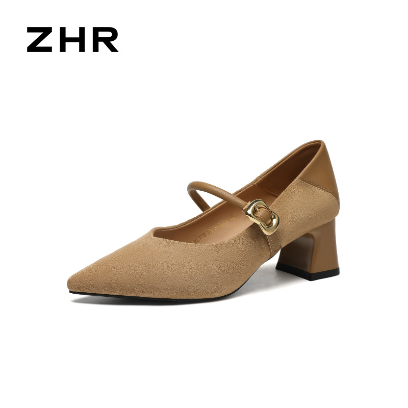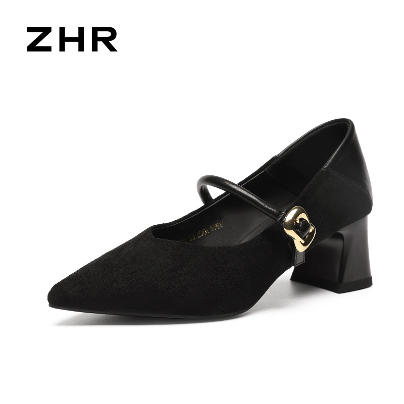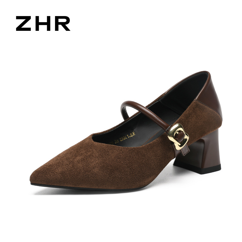 ZHR 복고풍 뾰족한 발가락 얕은 입 싱글 레이어 신발 여성의 2025 새로운 도착 스타일리스트 메리 제인 여성 신발 올매치 통근 두꺼운 힐 신발스토어 가기