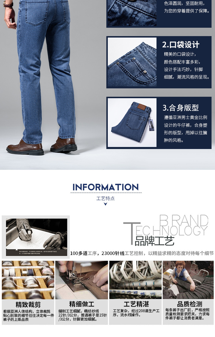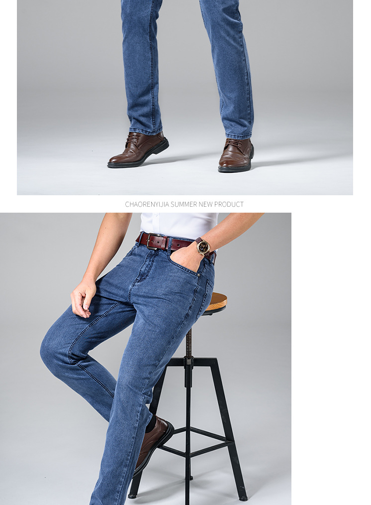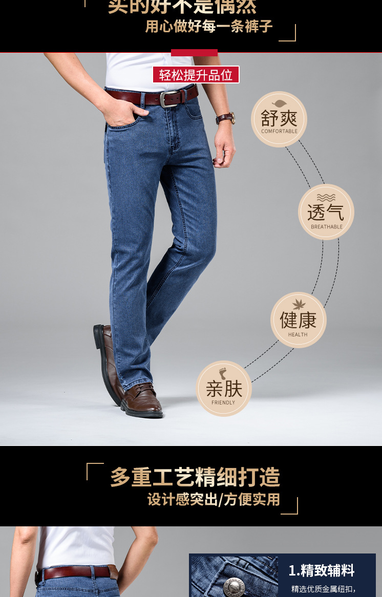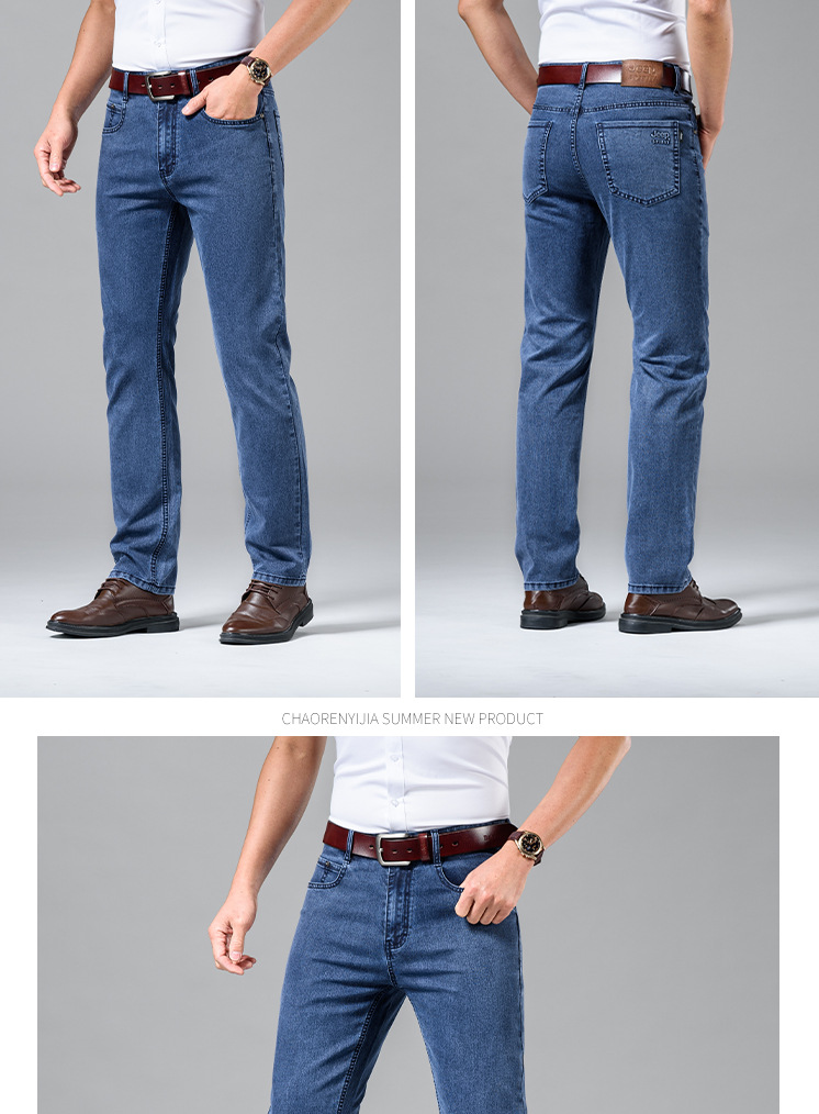 봄과 여름 브랜드 남성용 청바지 비즈니스 캐주얼 루즈 스트레이트 탄성 중역 내마모성 얇은 J8027스토어 가기