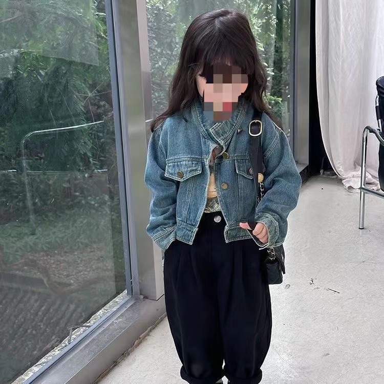 아동용 봄, 가을 신작 데님 재킷 소녀 한국식 캐주얼 다목적 짧은 2025 신작 데님 짧은 재킷