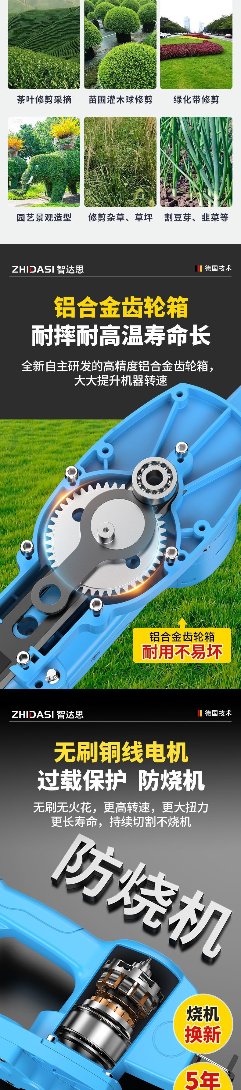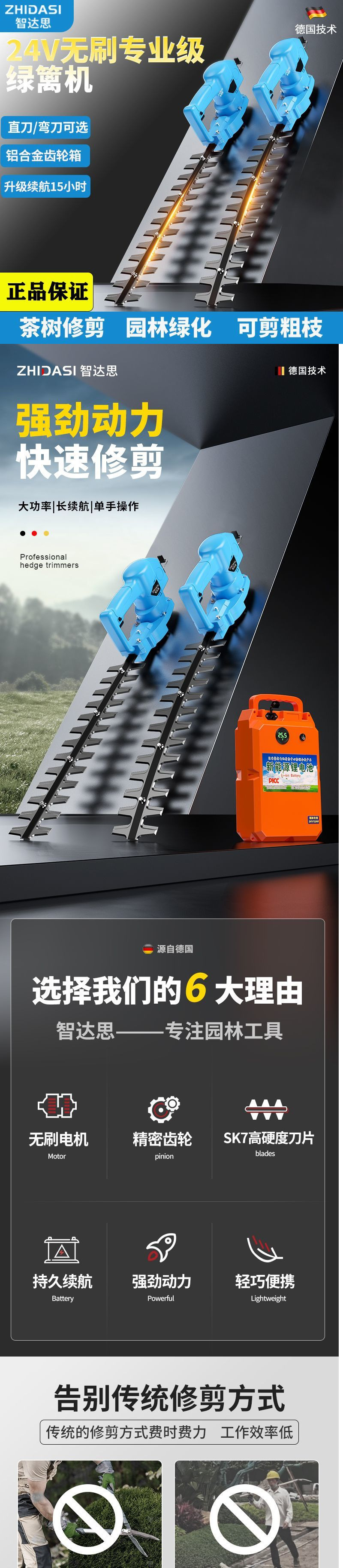 독일 전기 헤지 트리머 충전식 티 트리 가든 가지 치기 기계 배낭 홀리 골드와 실버