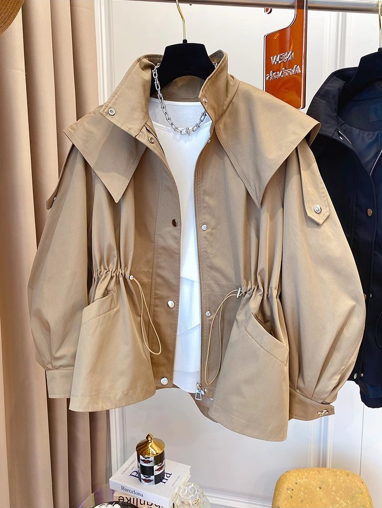 여성 2025 년 봄과 가을 새로운 서랍 타이트 허리 작업 코트 재킷 탑스토어 가기