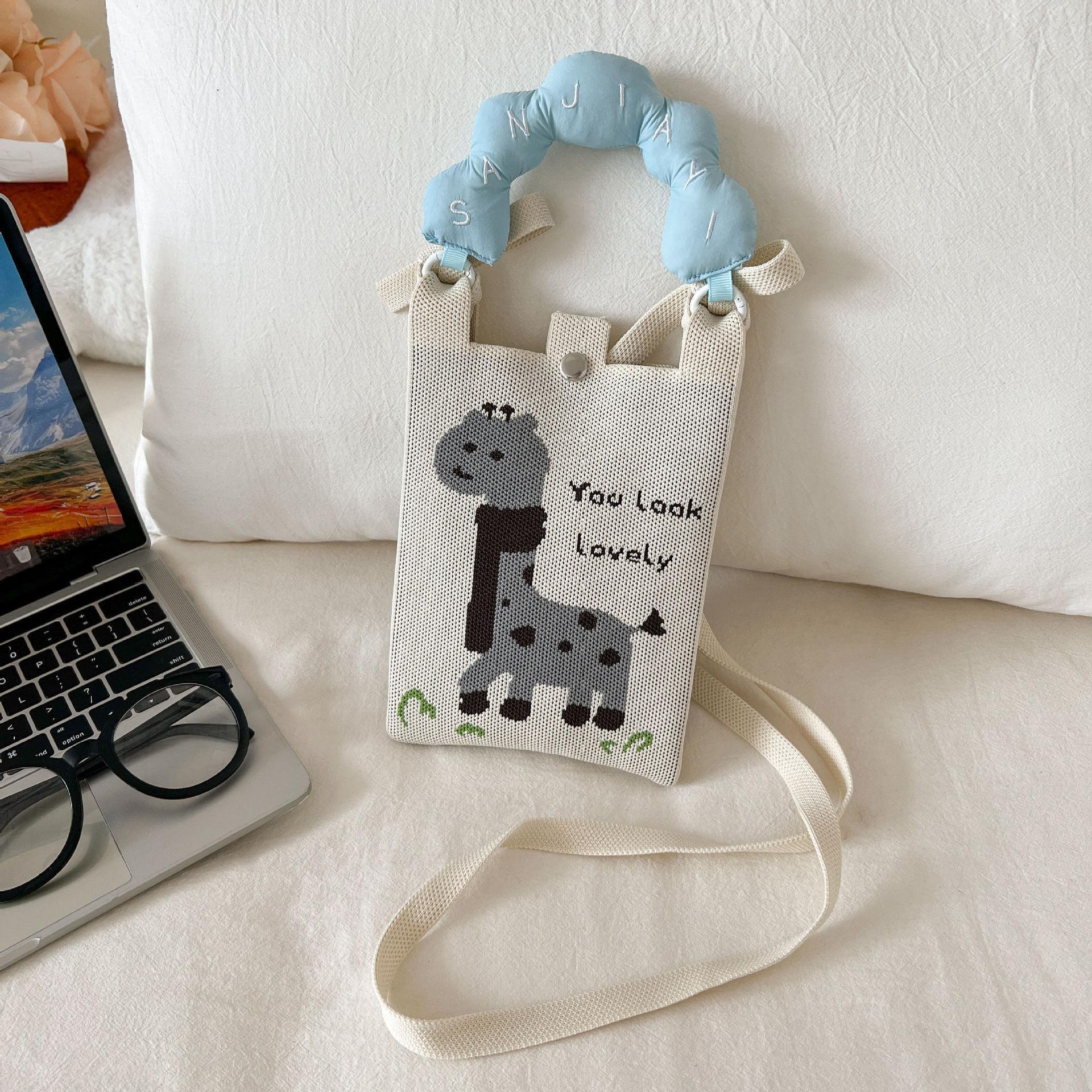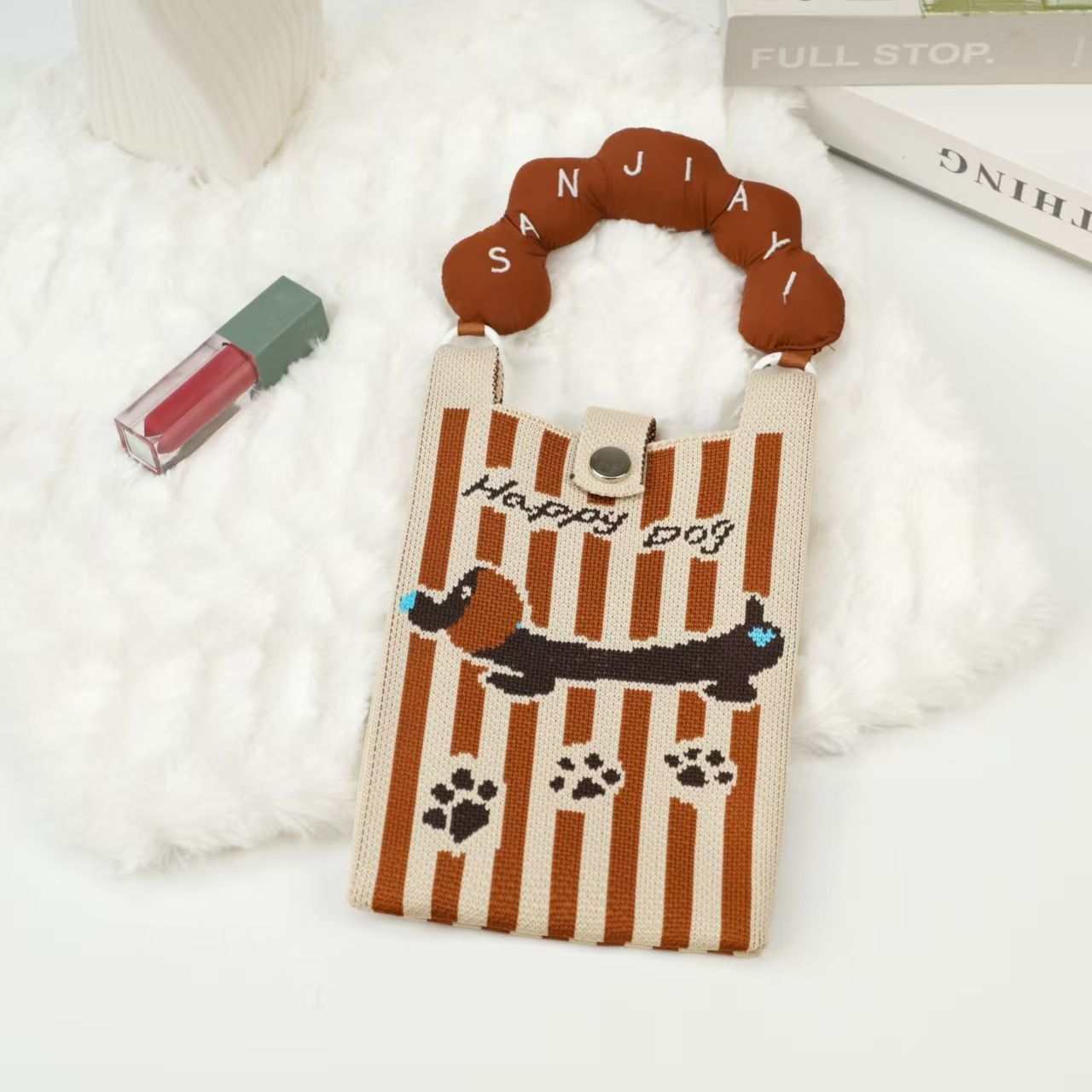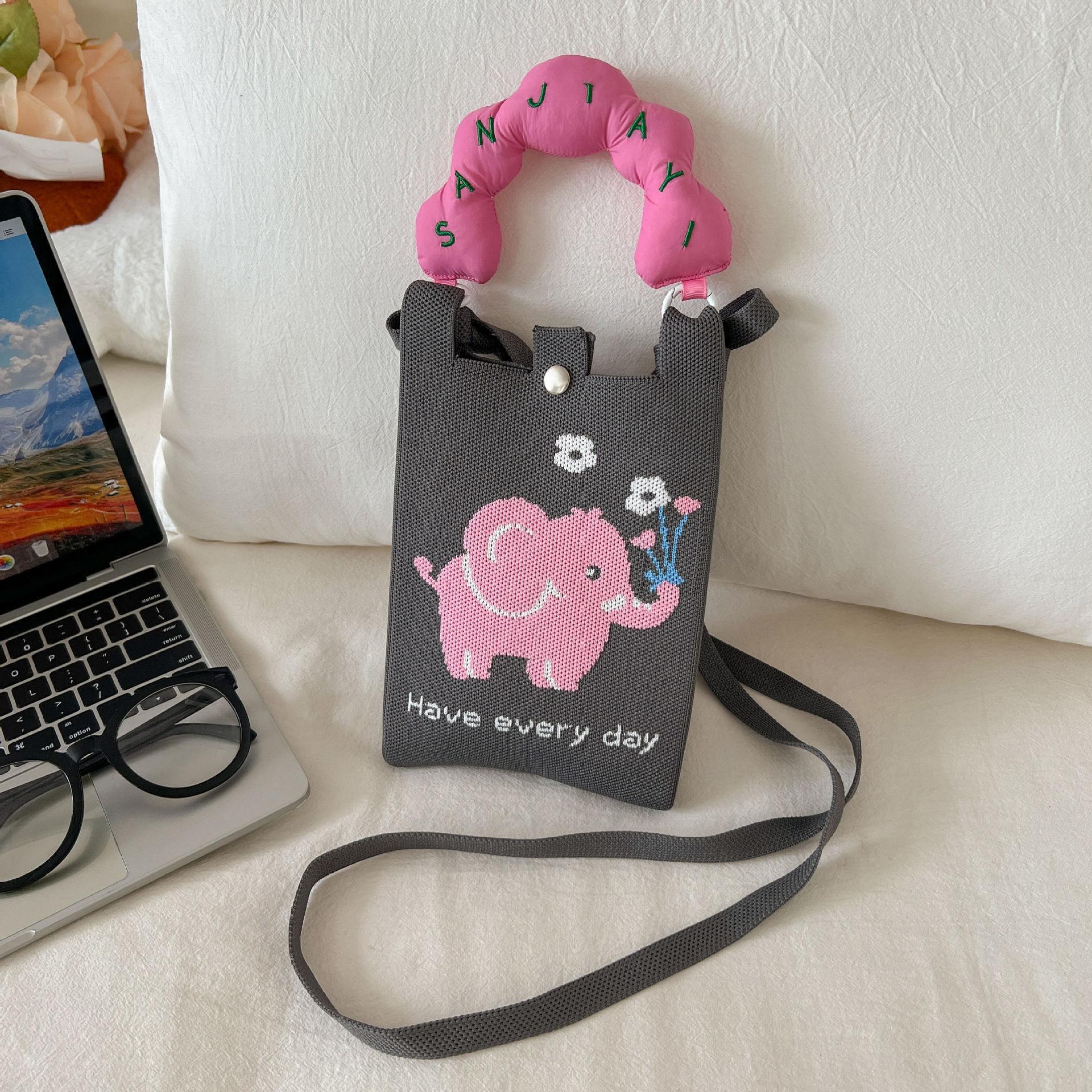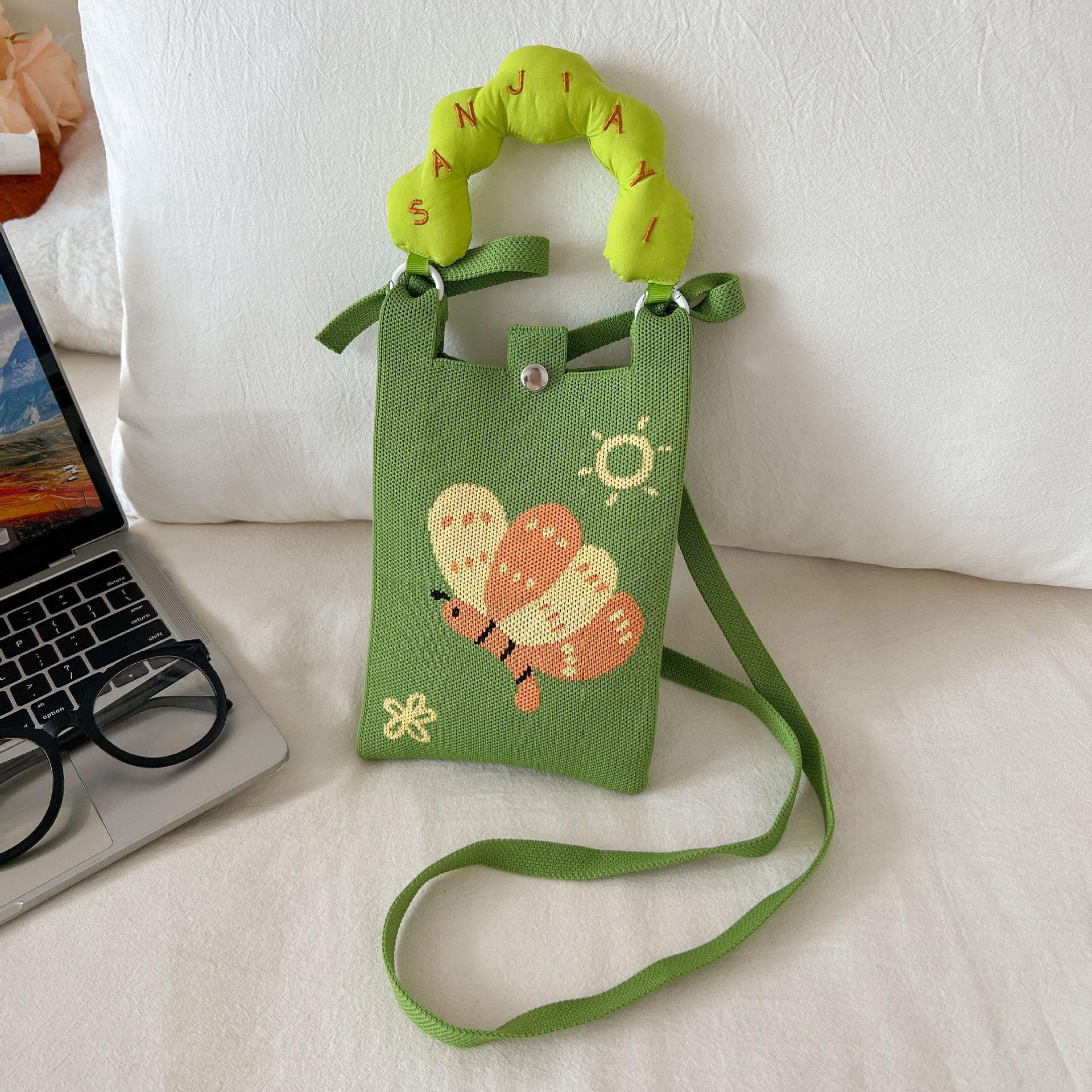 캔디 컬러 핸들 휴대폰 가방의 한국어 버전, 귀여운 니트 미니 다용도 크로스바디 핸드백, 휴대용 핸드백