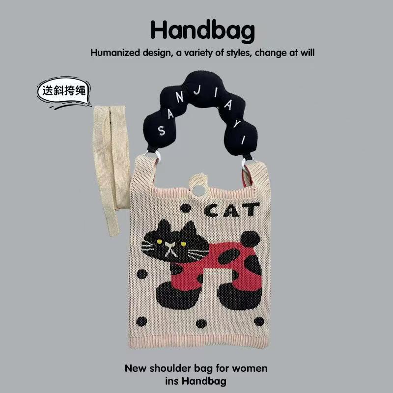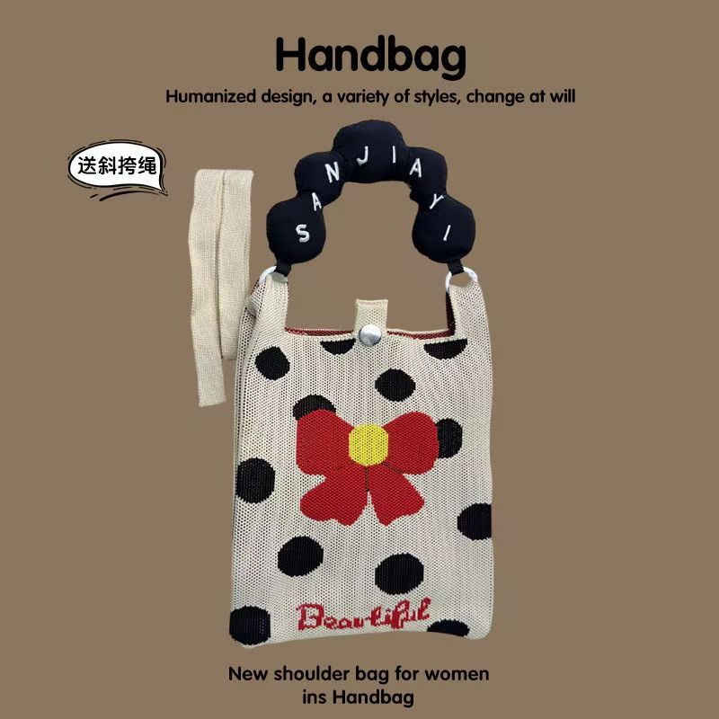 캔디 컬러 핸들 휴대폰 가방의 한국어 버전, 귀여운 니트 미니 다용도 크로스바디 핸드백, 휴대용 핸드백스토어 가기