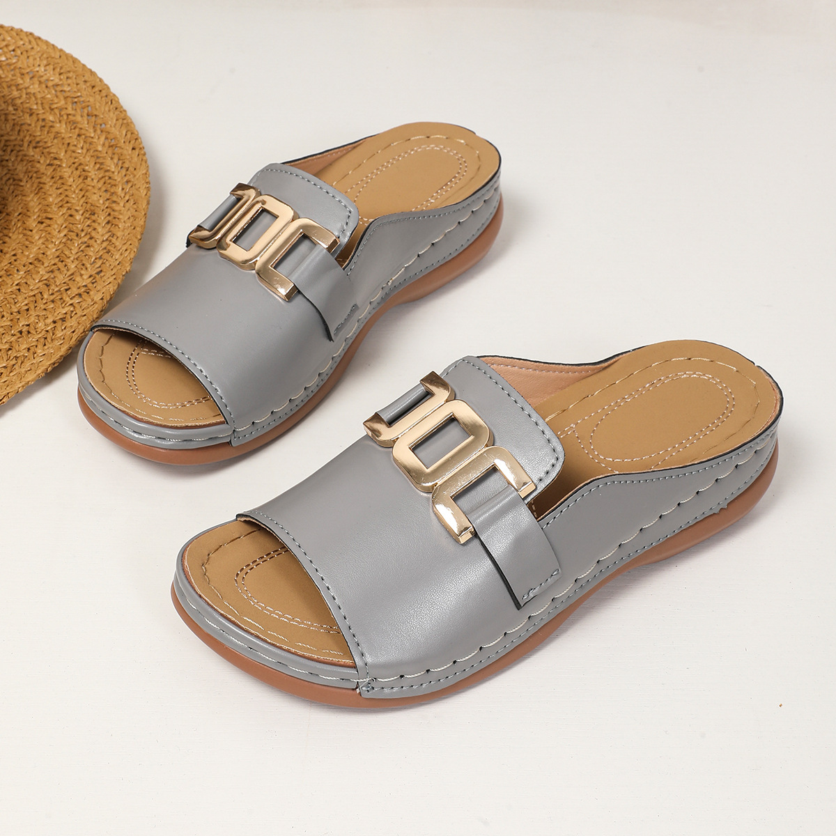 대외 무역 웨지 슬리퍼 여성의 2025 새로운 국경 플러스 사이즈 캐주얼 패션 간단한 금속 버클 생선 입 샌들