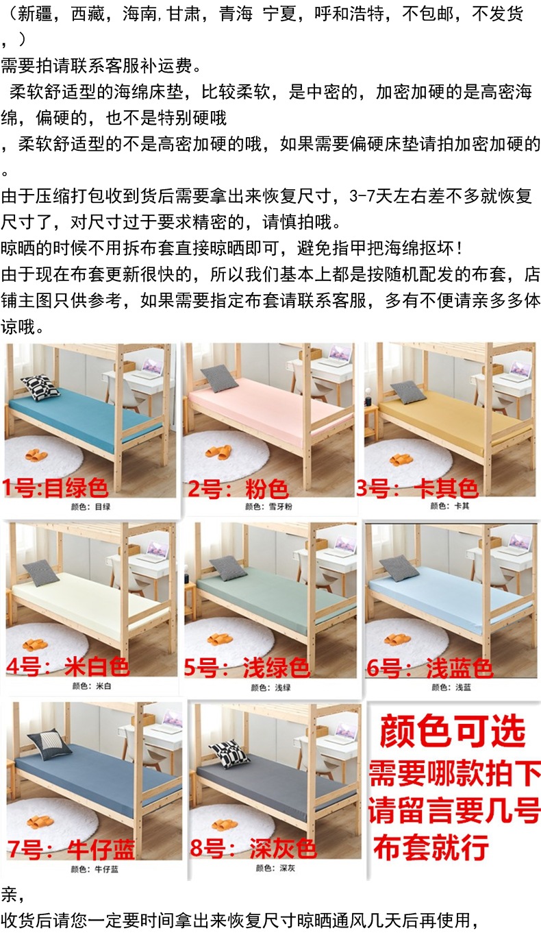 두꺼운 매트리스 1.5m 침대 1.8m 침대 학생 기숙사 싱글 더블 스폰지 매트 다다미 바닥 호텔