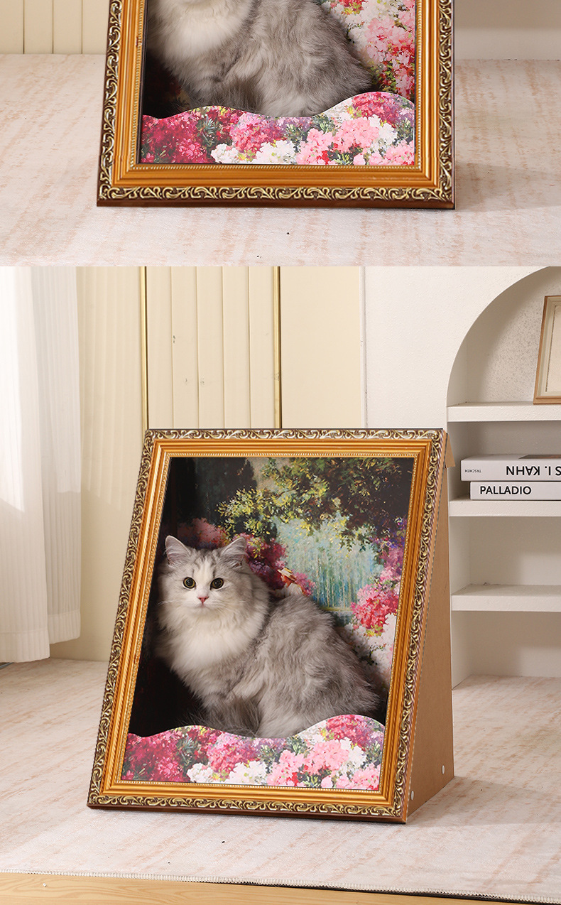 5.多风格主题:我们目前已开发至三款相框,中古棕、奶油白、复古金,搭配精美油画,实现猫窝与家居风格融为一体;