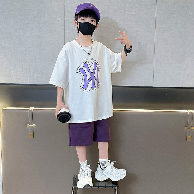 남학생 캐주얼 느슨한 세트 2025 년 여름 새 어린이 한국식 서양식 반팔 얇은 투피스 세트스토어 가기