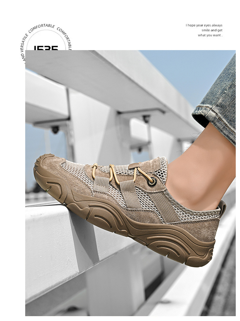 국경 간 여름 통기성 메쉬 남성 신발 스포츠 캐주얼 신발 남성 메쉬 추적 신발 미끄럼 방지 야외 중공 메쉬 신발
