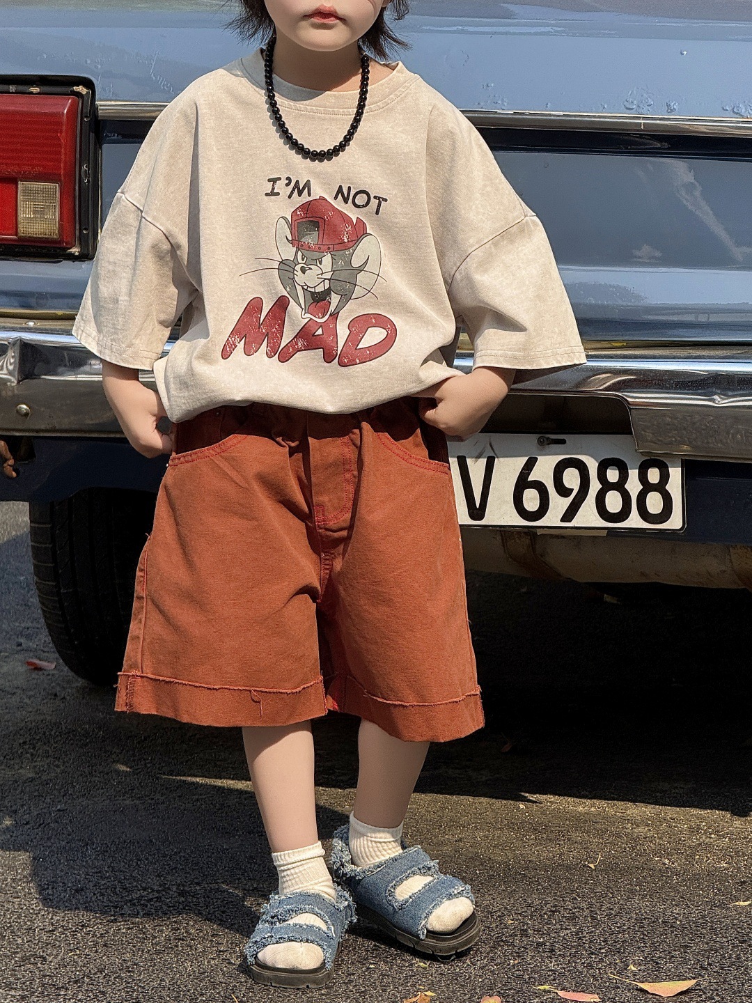 2025 년 여름 새 소년 반바지 미국 스타일 하이 스트리트 루즈 바지 중공업 수놓은 소년의 밝은 색상 트렌디스토어 가기