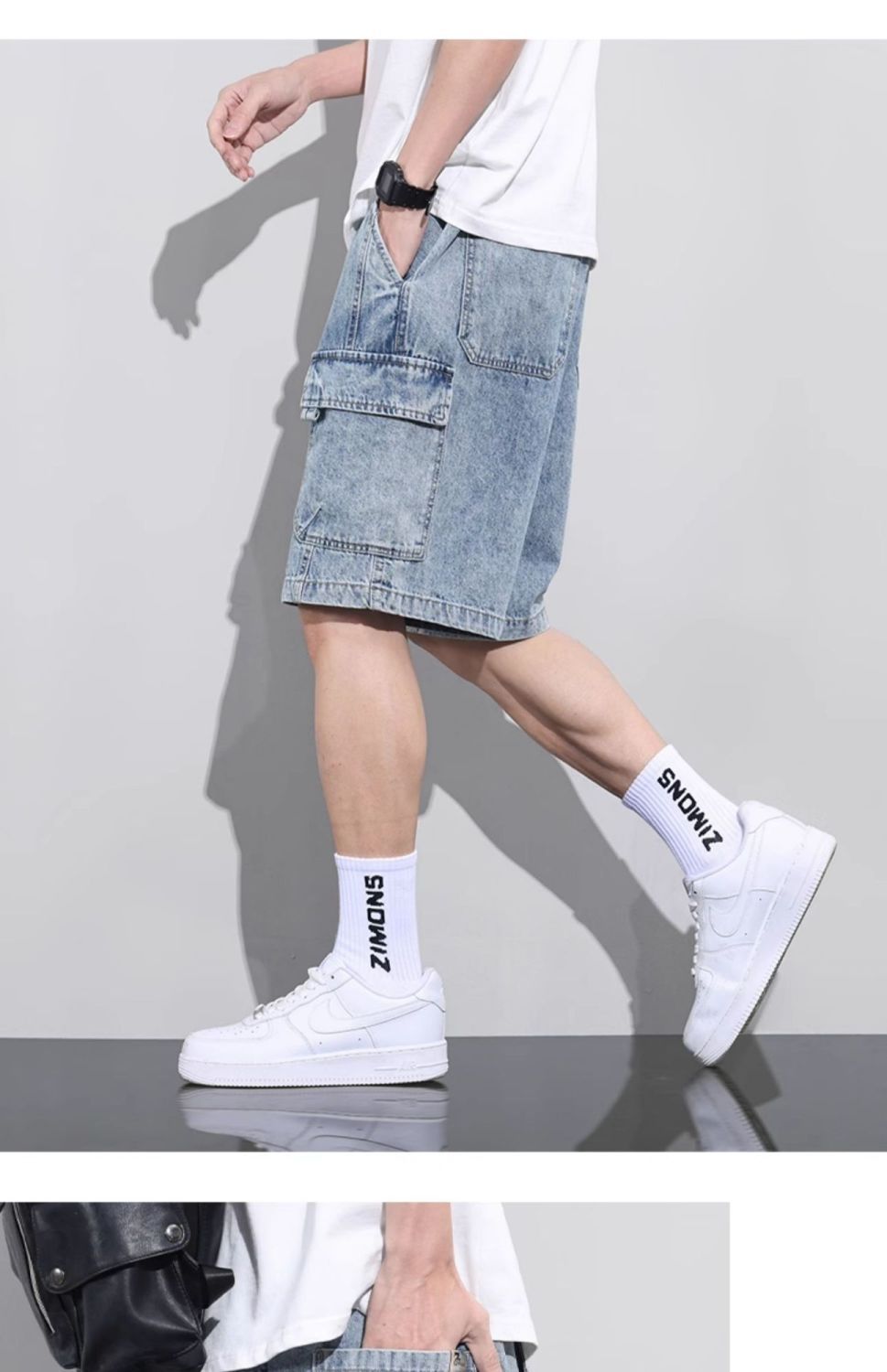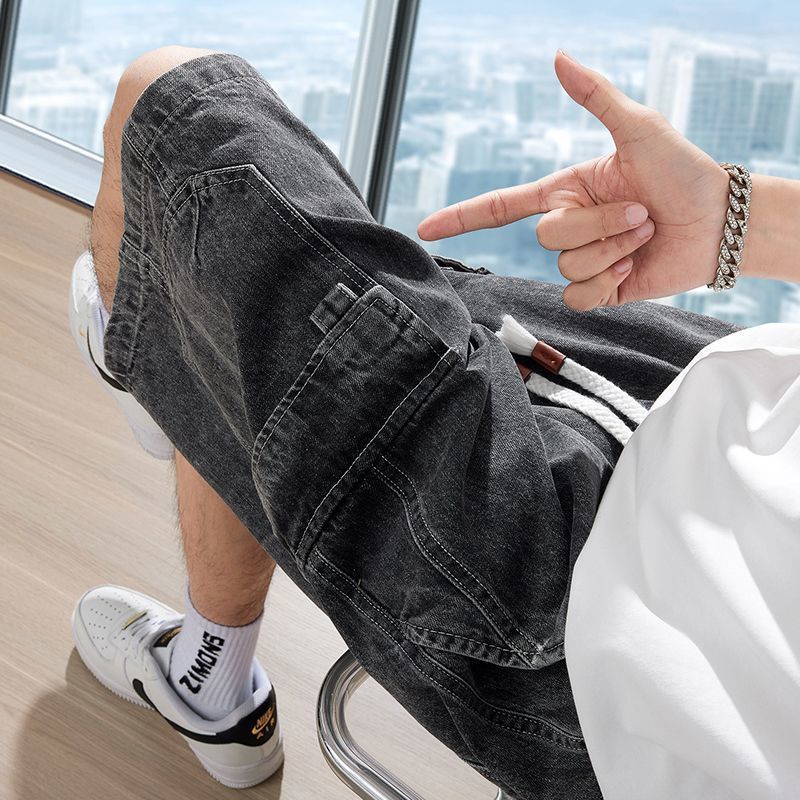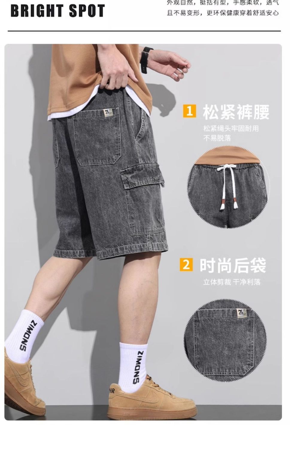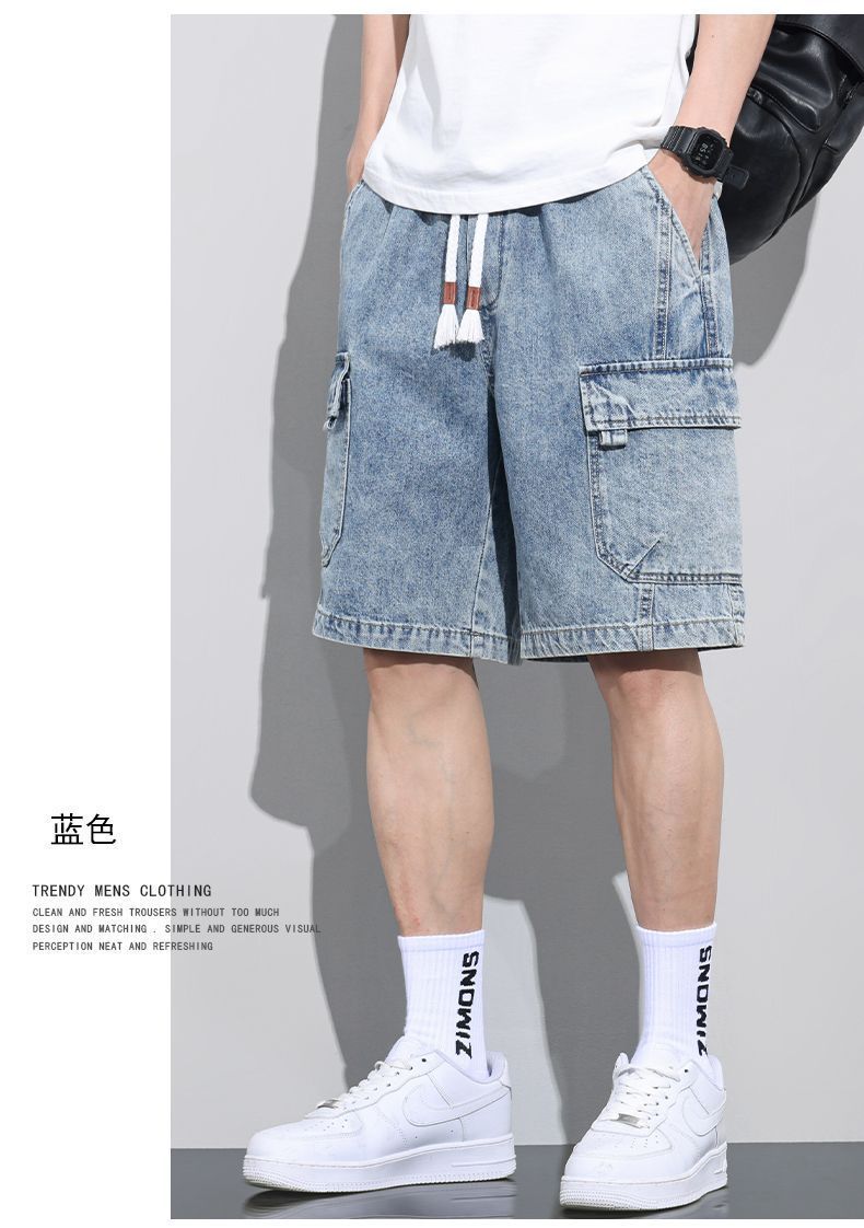 여름 얇은 작업복 데님 반바지 남성 느슨한 미국 복고풍 유행 캐주얼 바지 2025 새로운 도착 남성스토어 가기