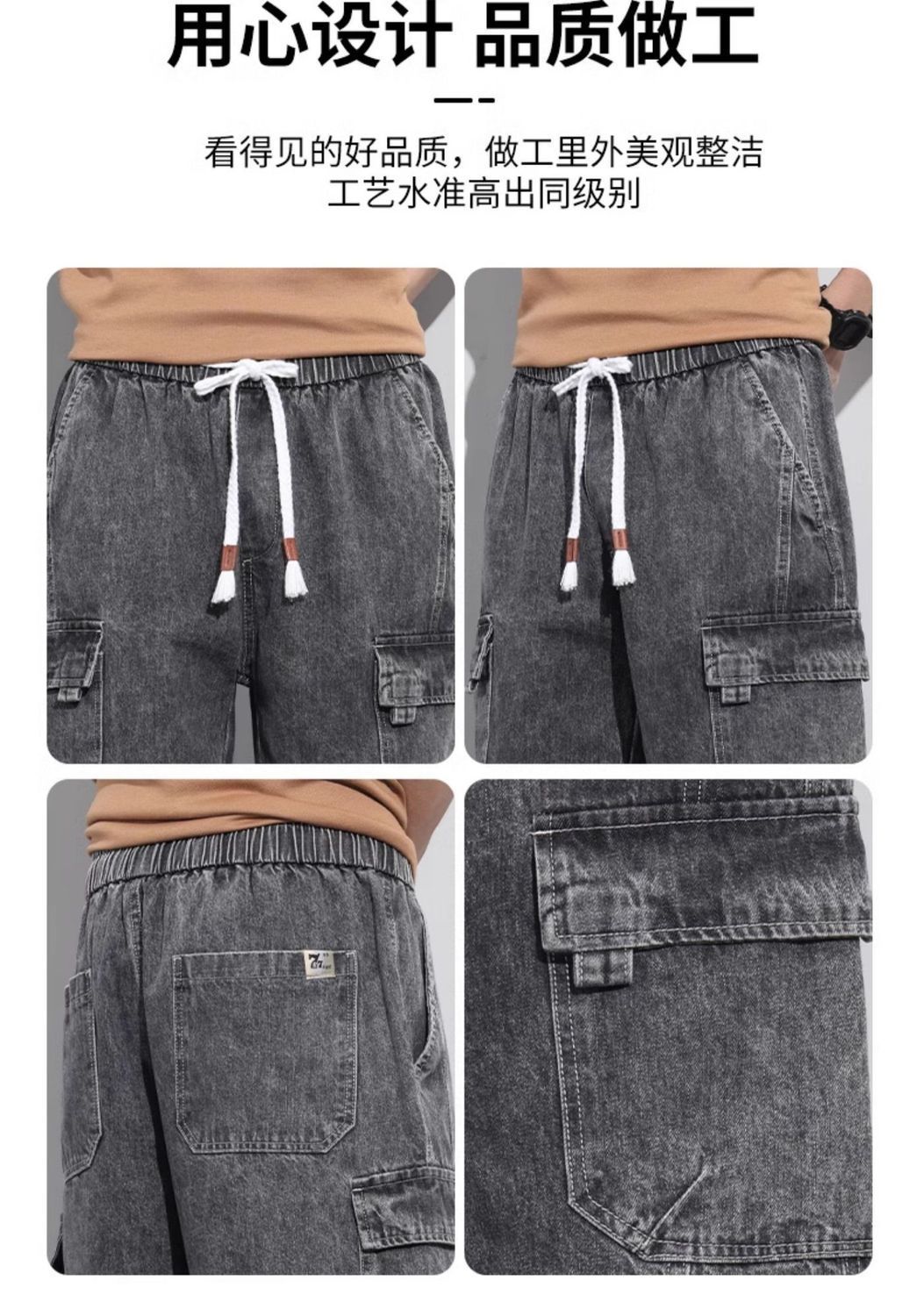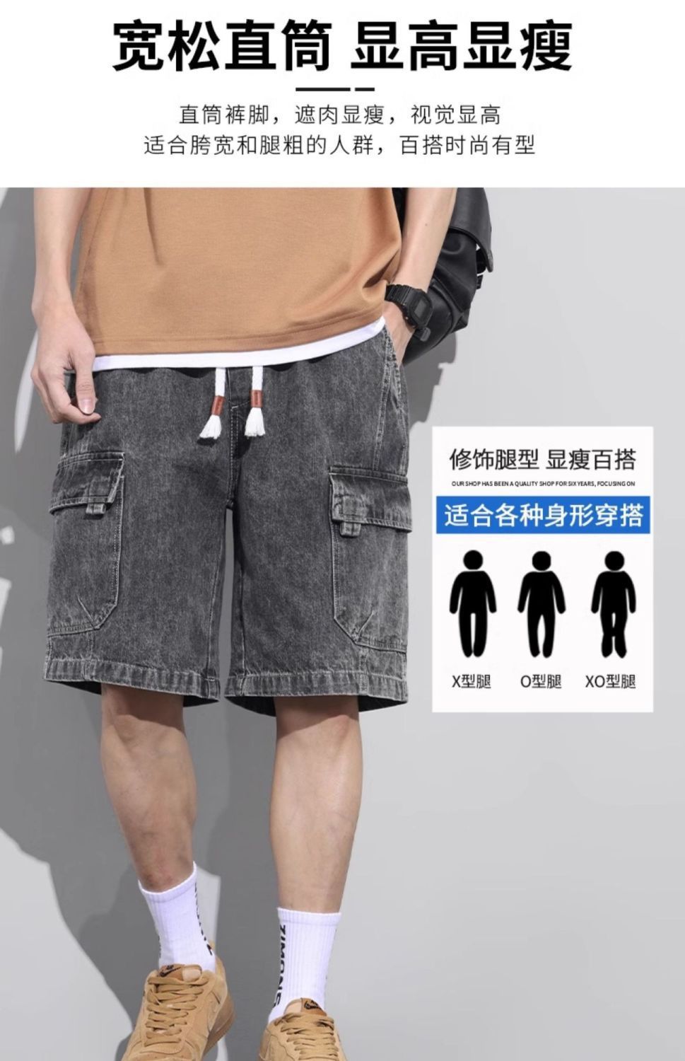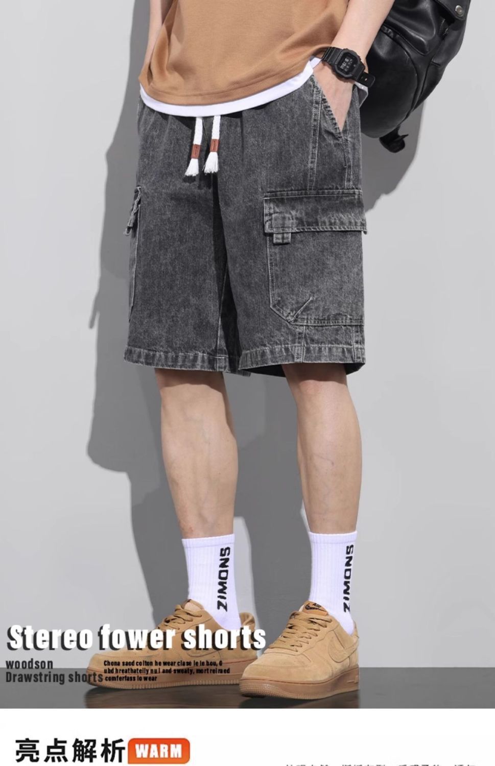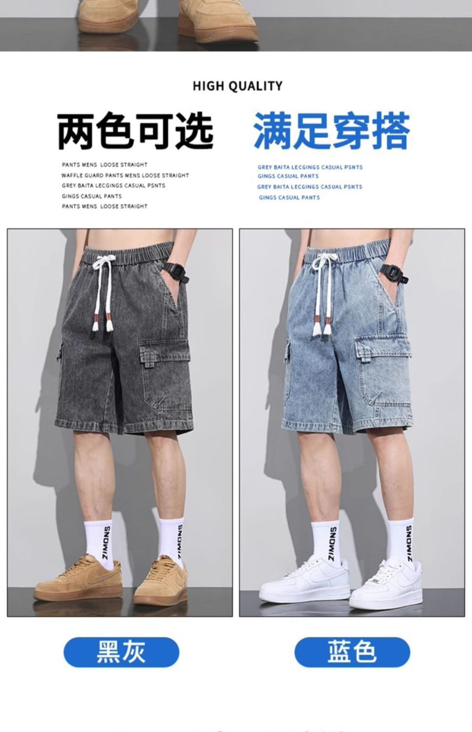 여름 얇은 작업복 데님 반바지 남성 느슨한 미국 복고풍 유행 캐주얼 바지 2025 새로운 도착 남성스토어 가기