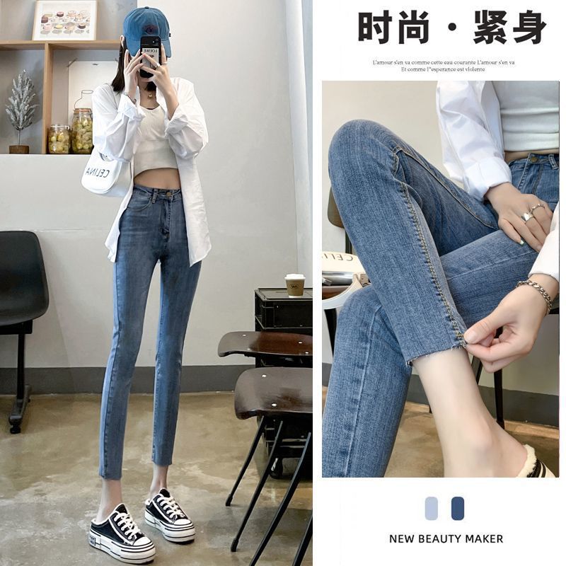 슬림핏 청바지 2024 신작 봄 여름 인기 하이웨이스트 타이트 9부 라이트 컬러 펜슬 팬츠 여성 트렌드스토어 가기